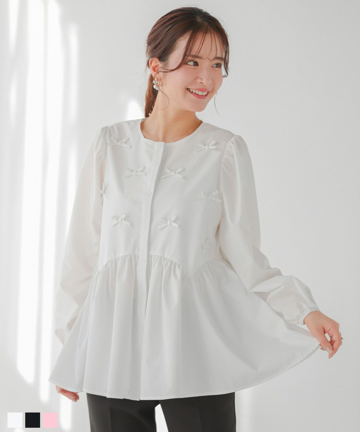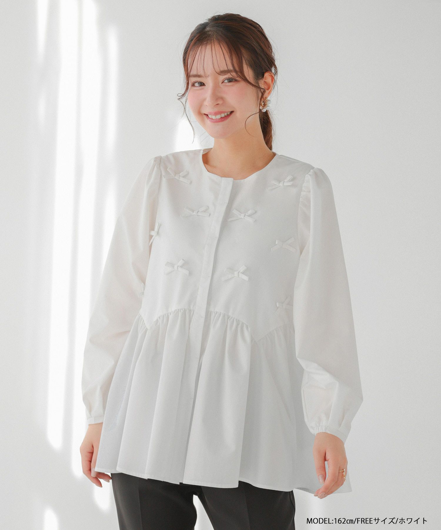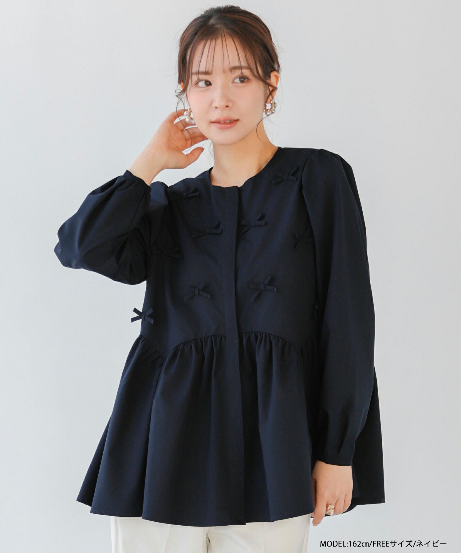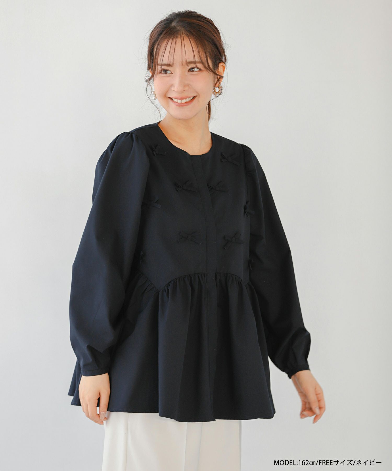 2025ss リボン ブラウス シャツ ペプラム リボンモチーフペプラムブラウス【宅配便】