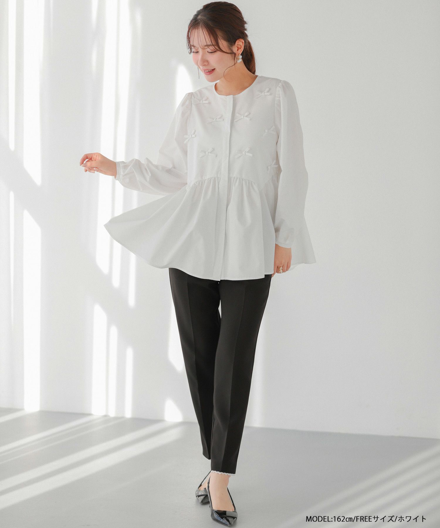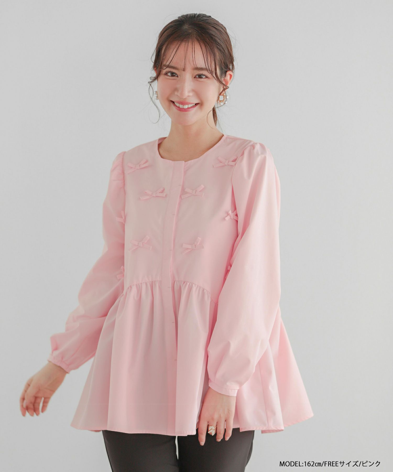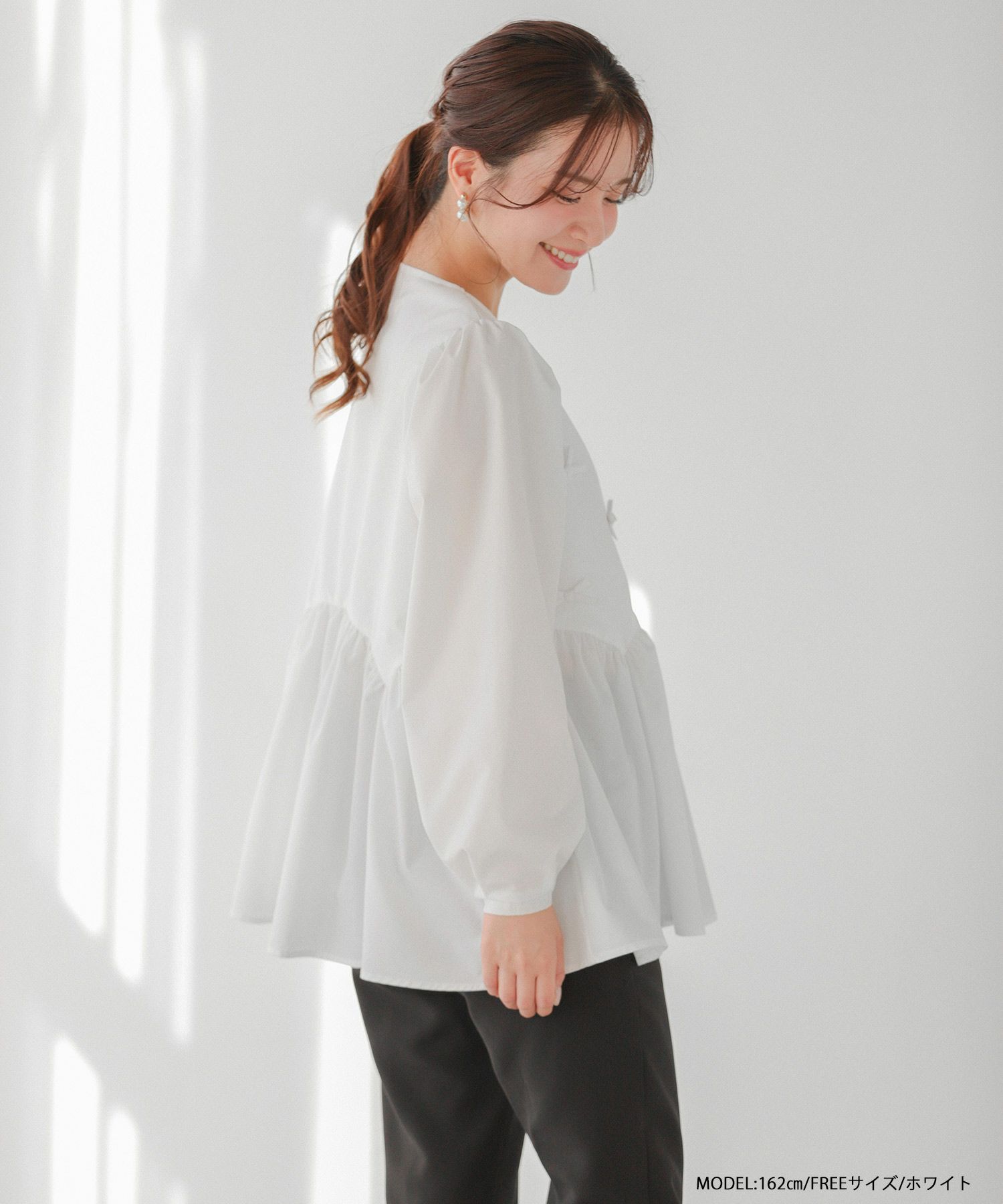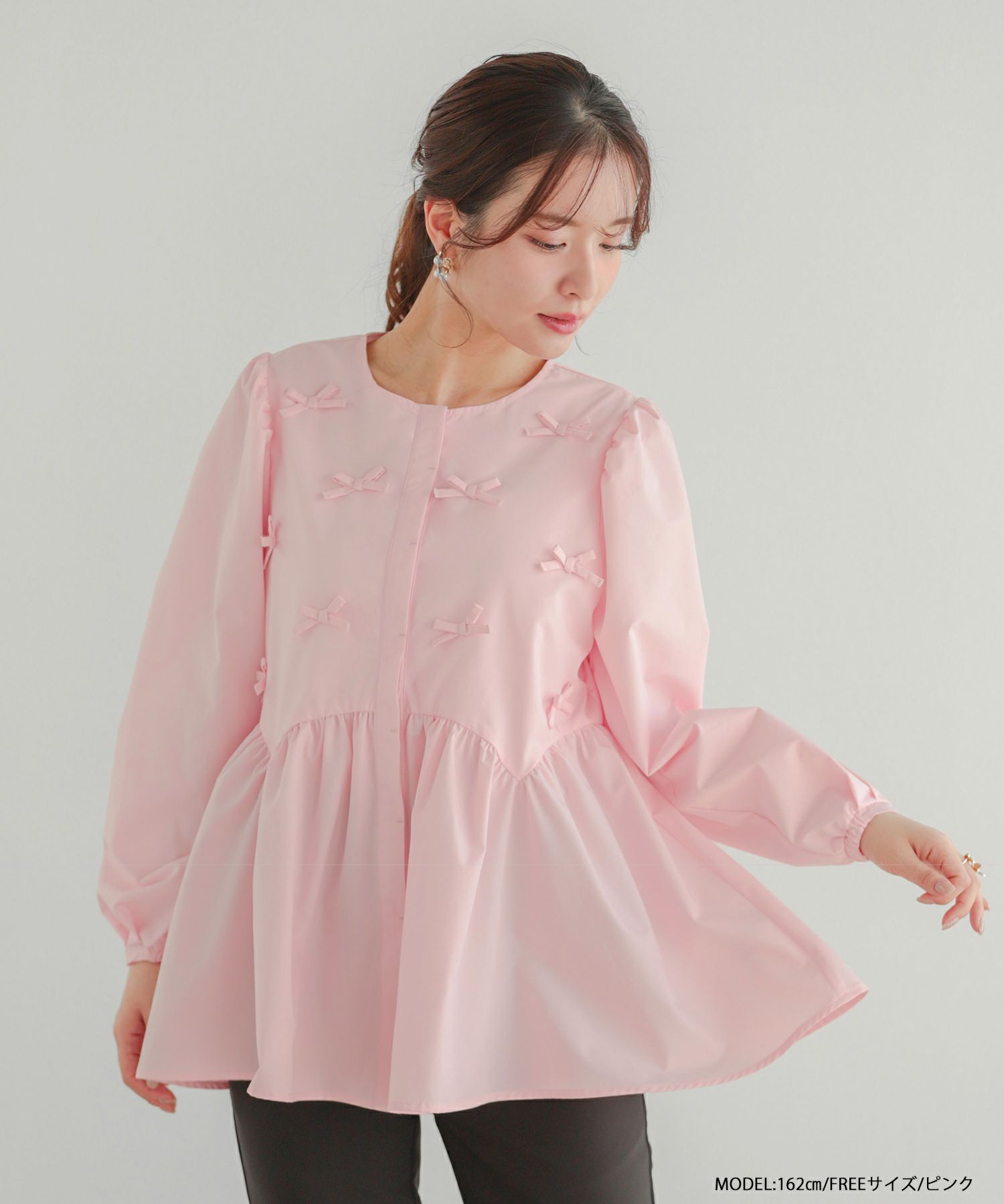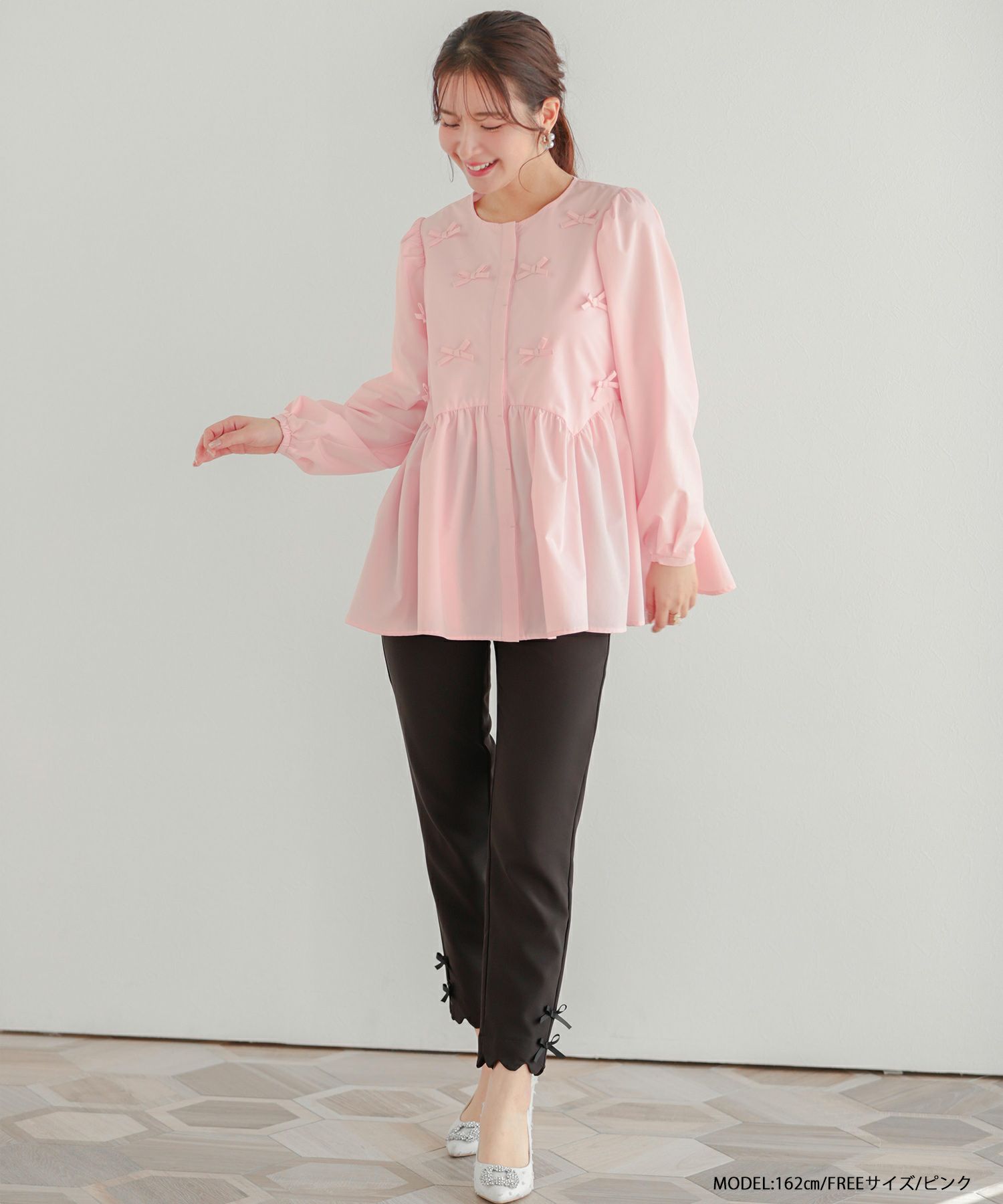 2025ss リボン ブラウス シャツ ペプラム リボンモチーフペプラムブラウス【宅配便】