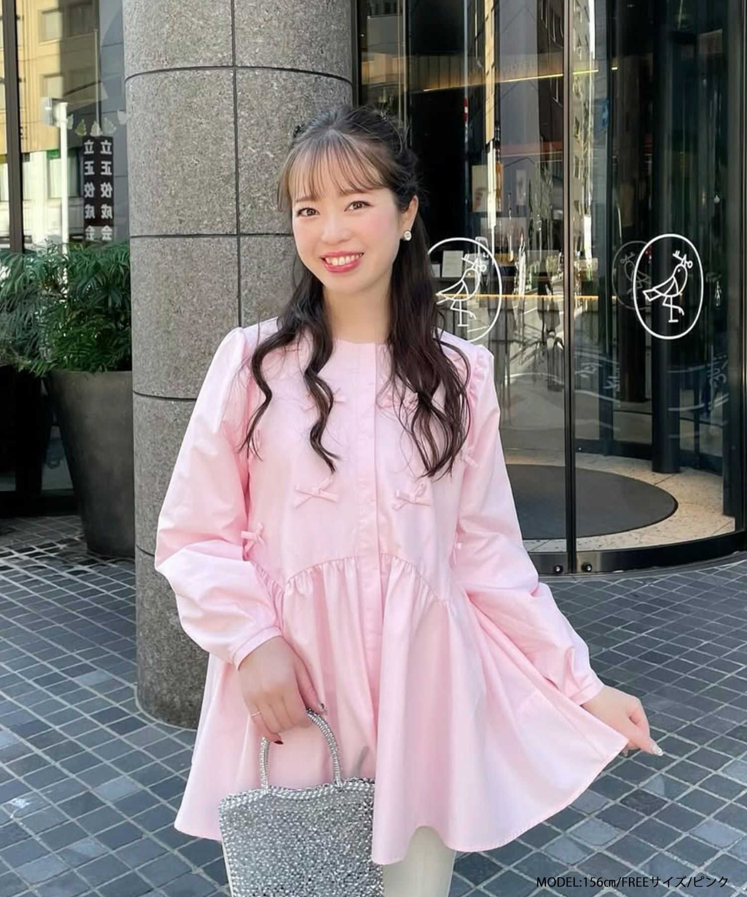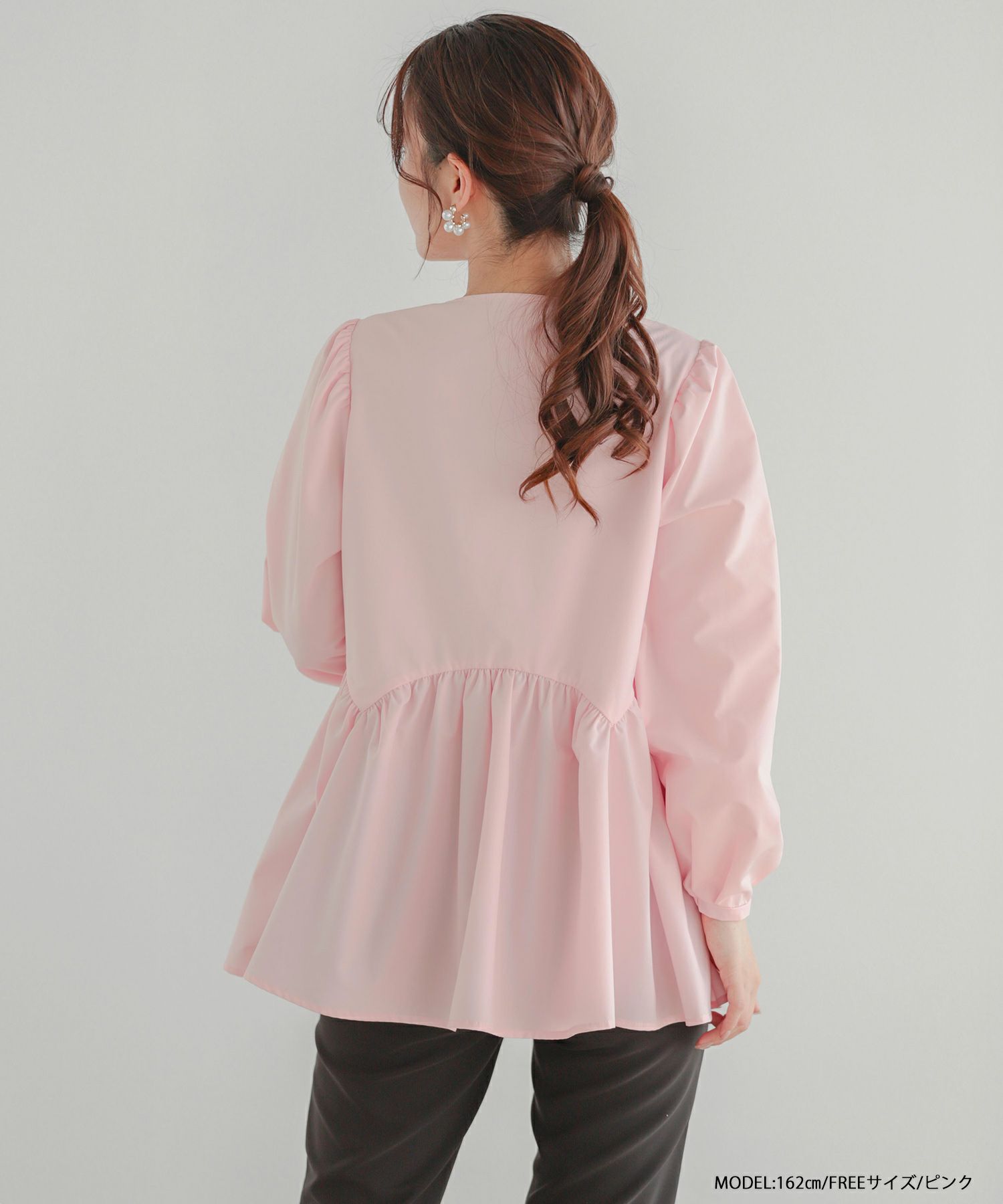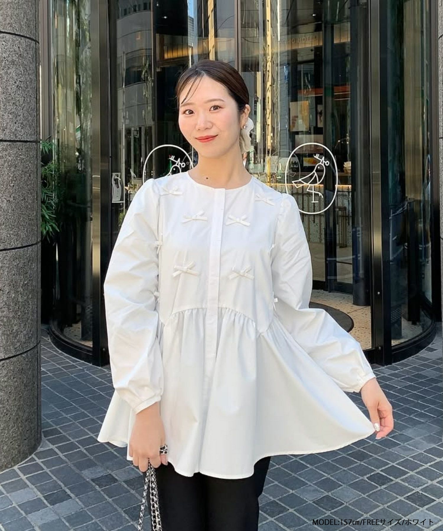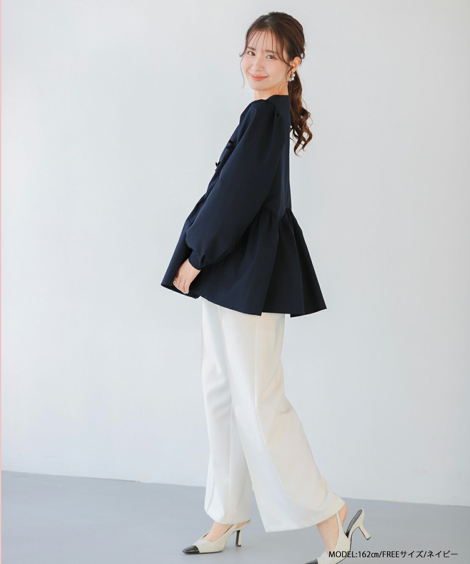 2025ss リボン ブラウス シャツ ペプラム リボンモチーフペプラムブラウス【宅配便】
