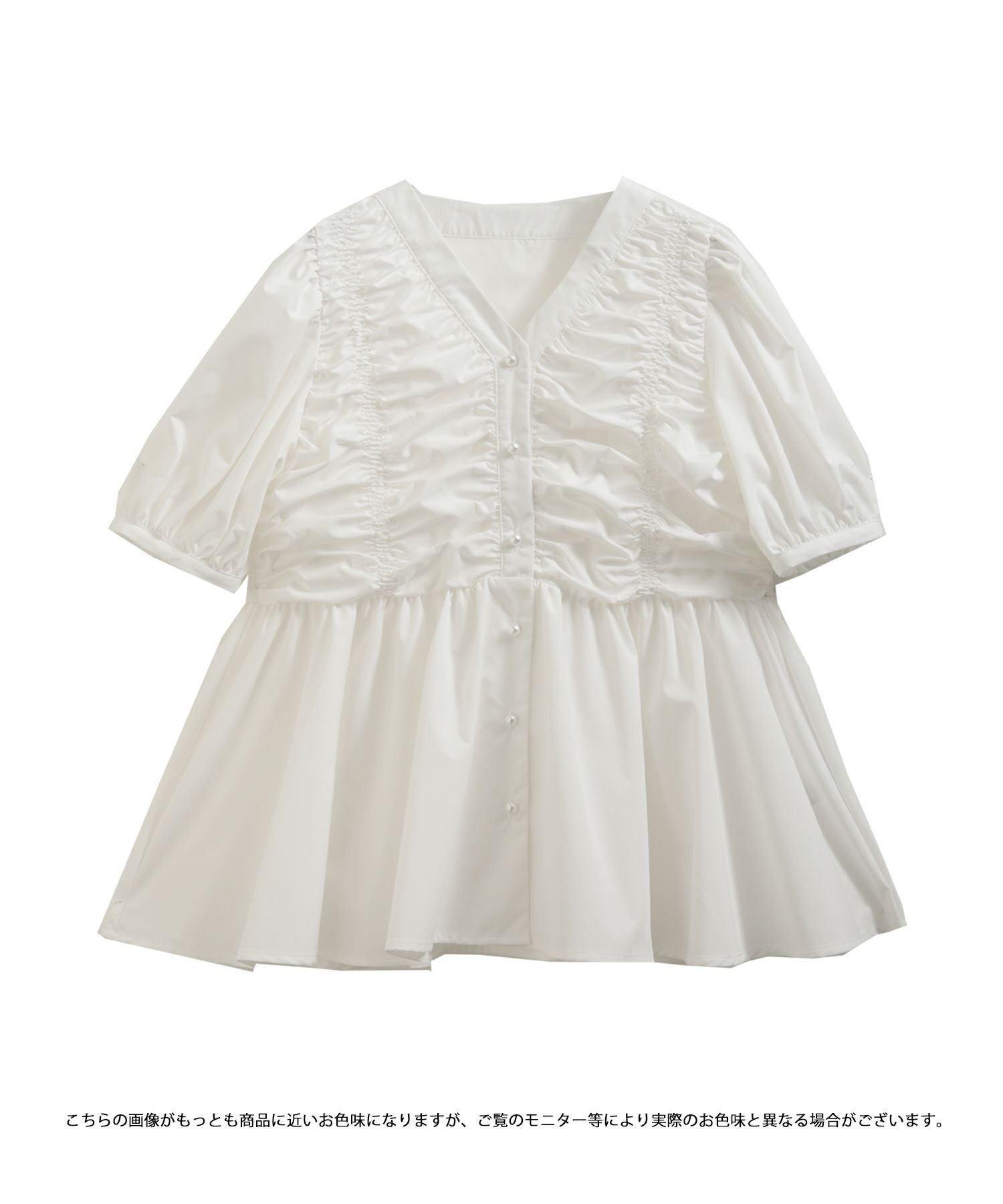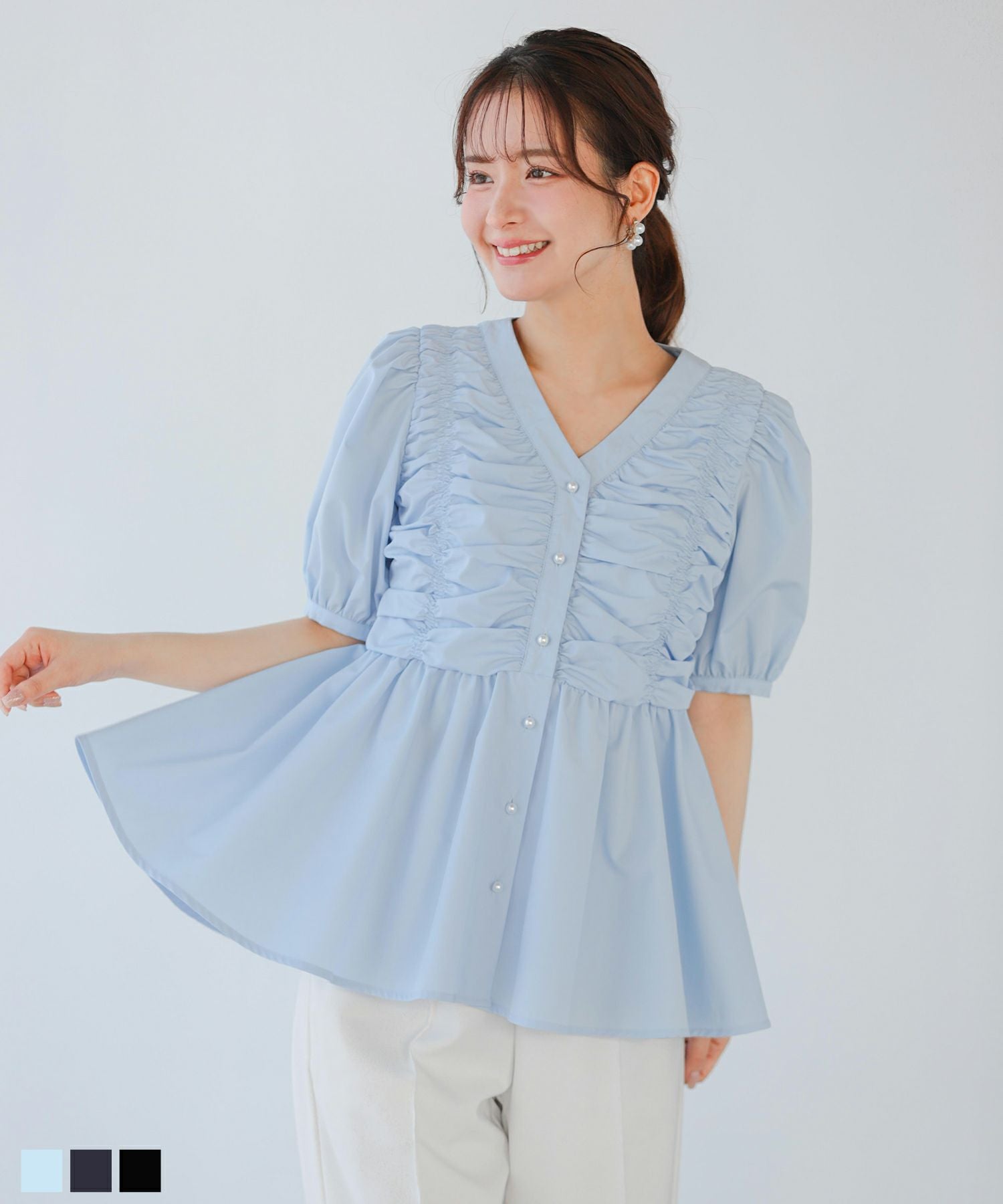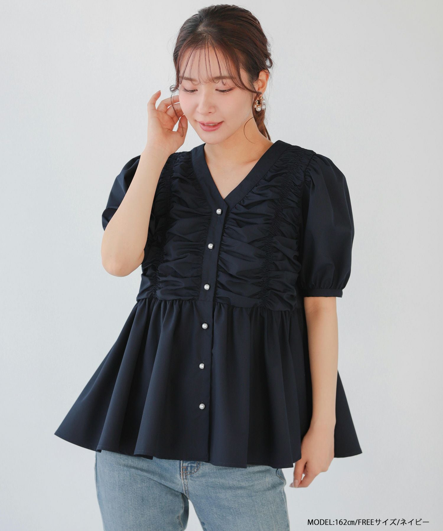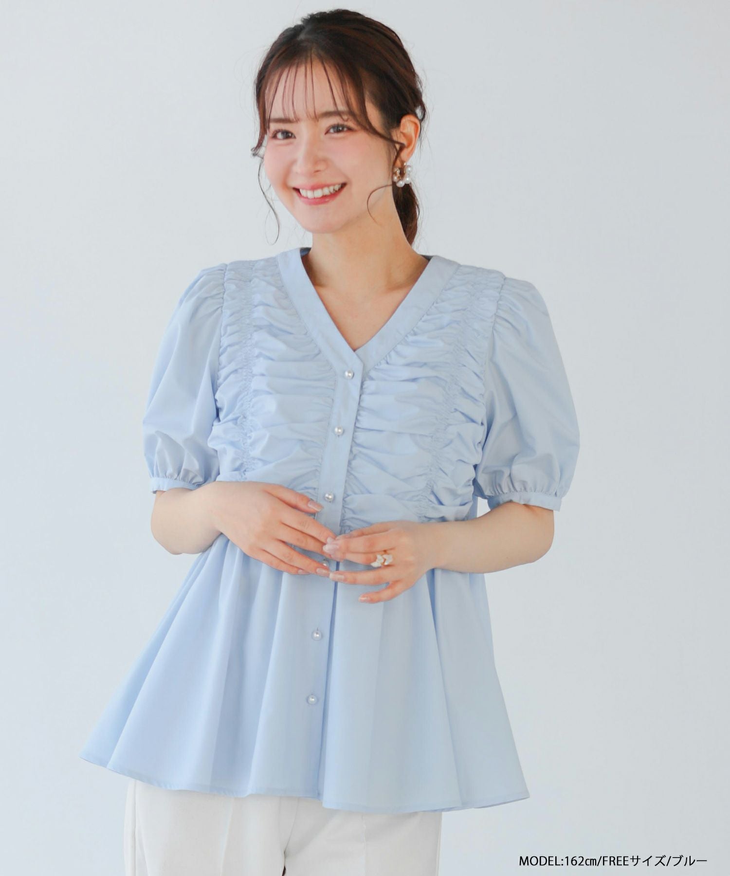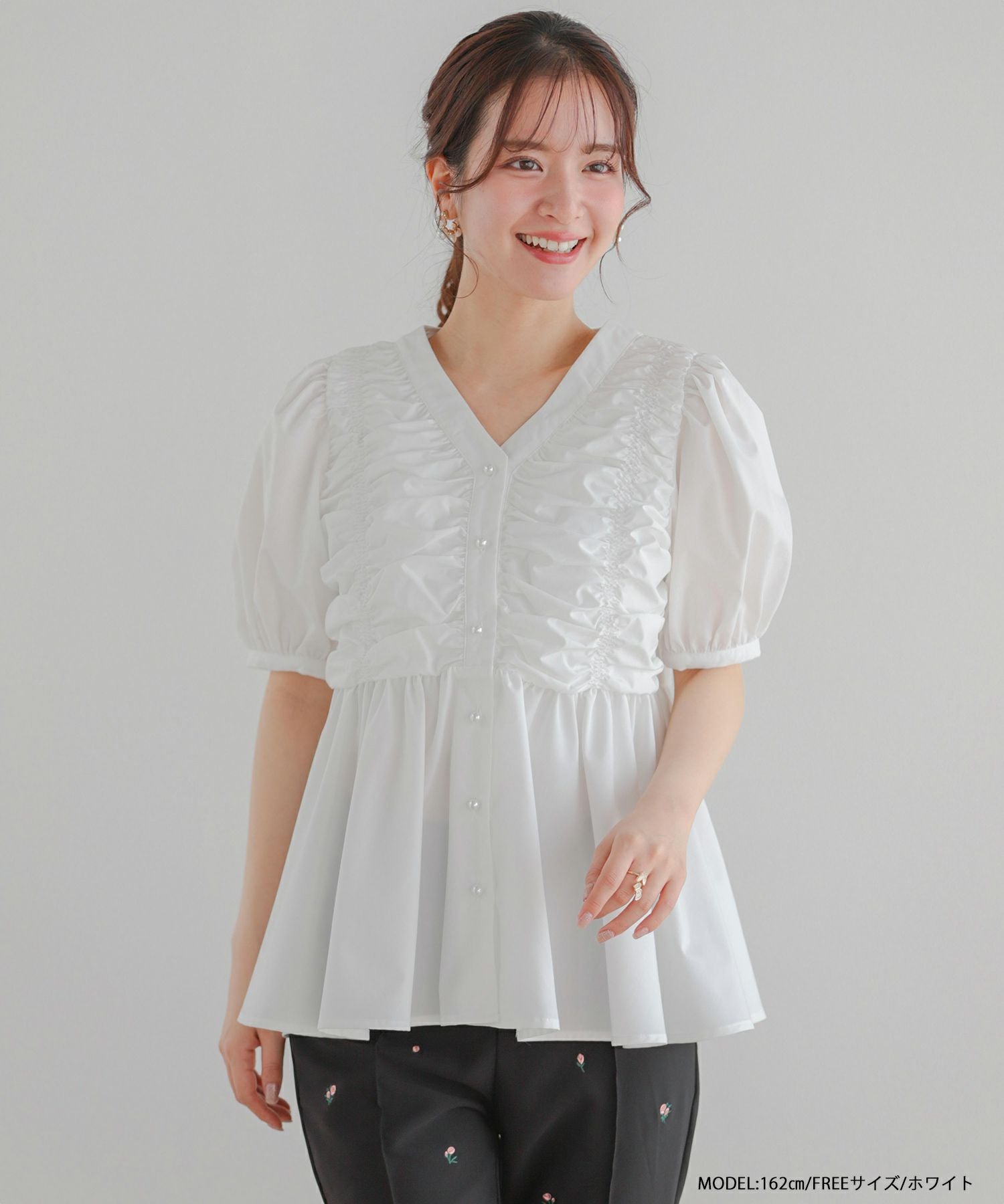 2025ss ブラウス ギャザー パール ペプラム パフスリーブ ギャザーパフスリーブペプラムブラウス【宅配便】