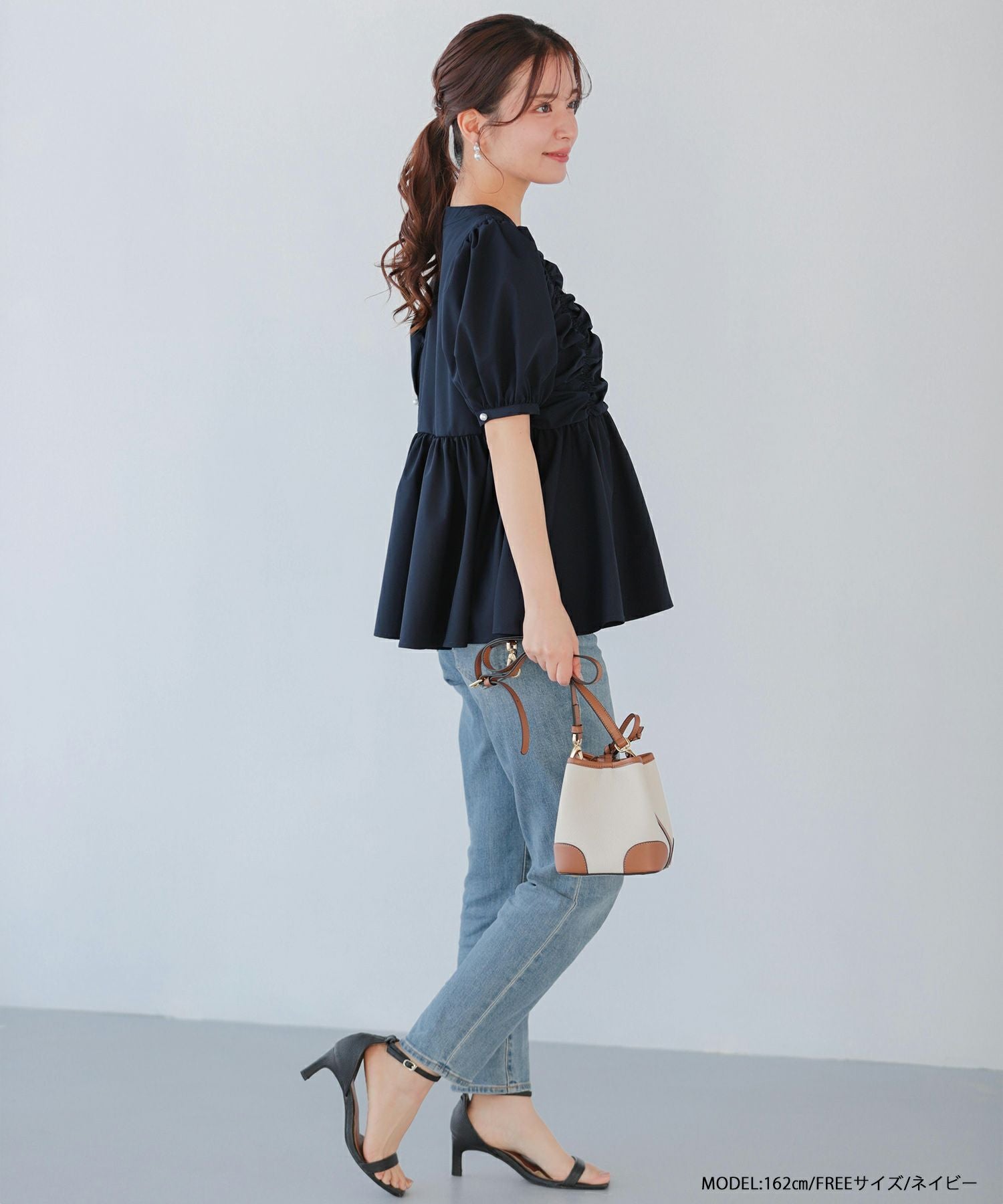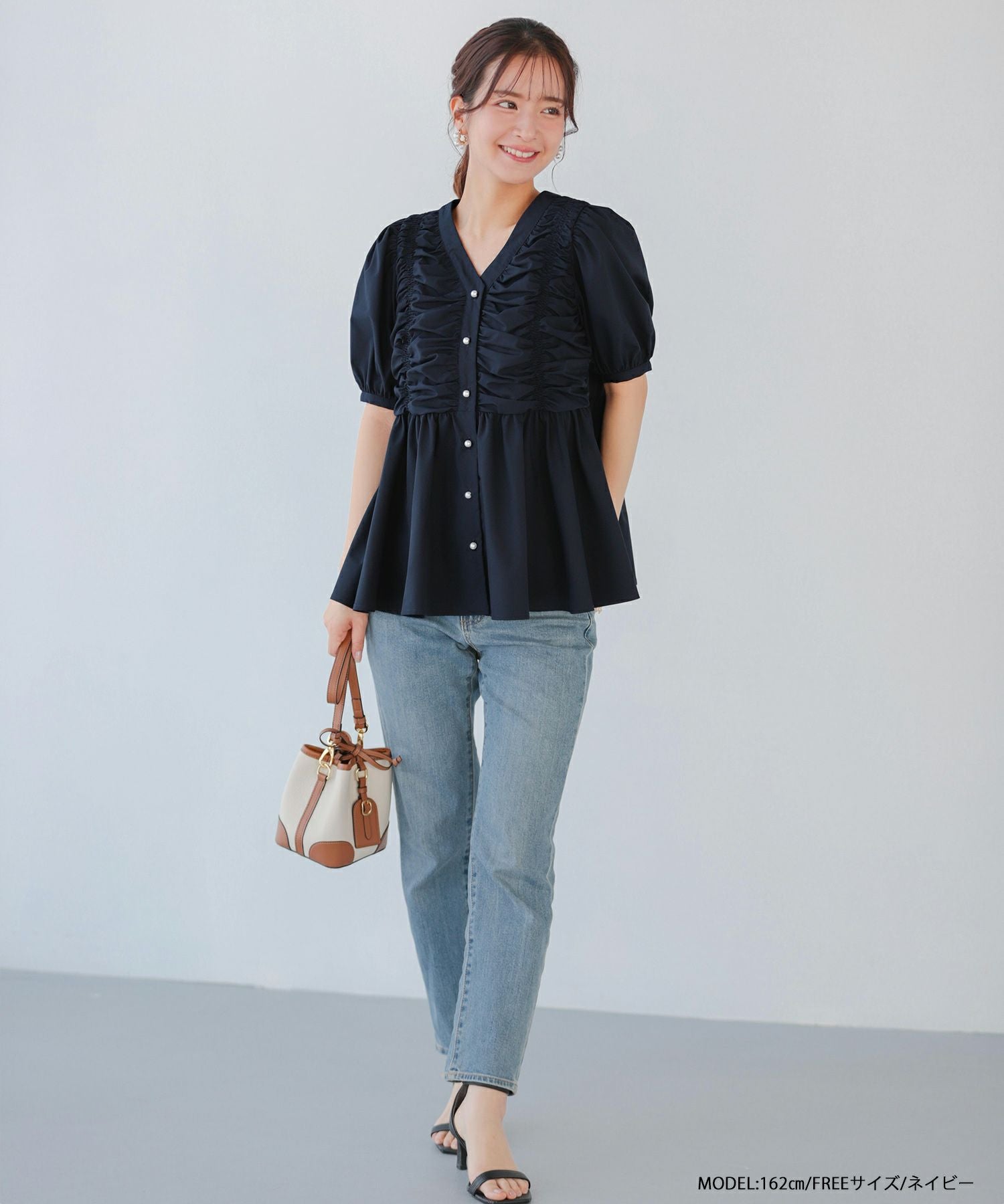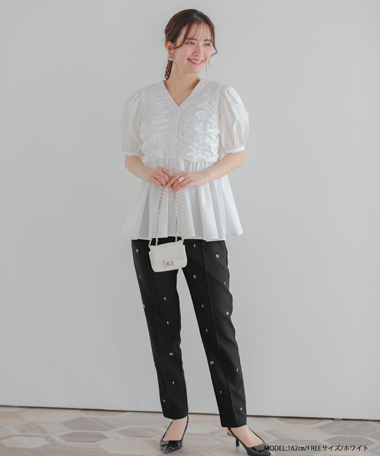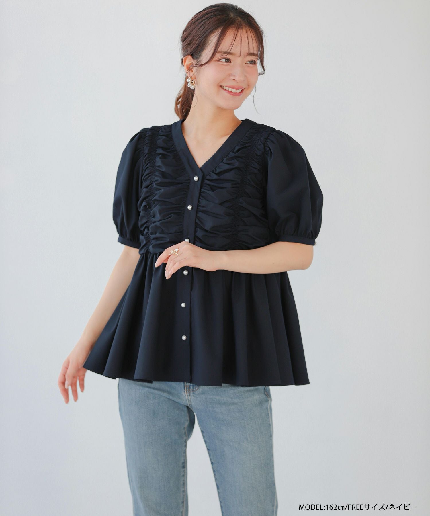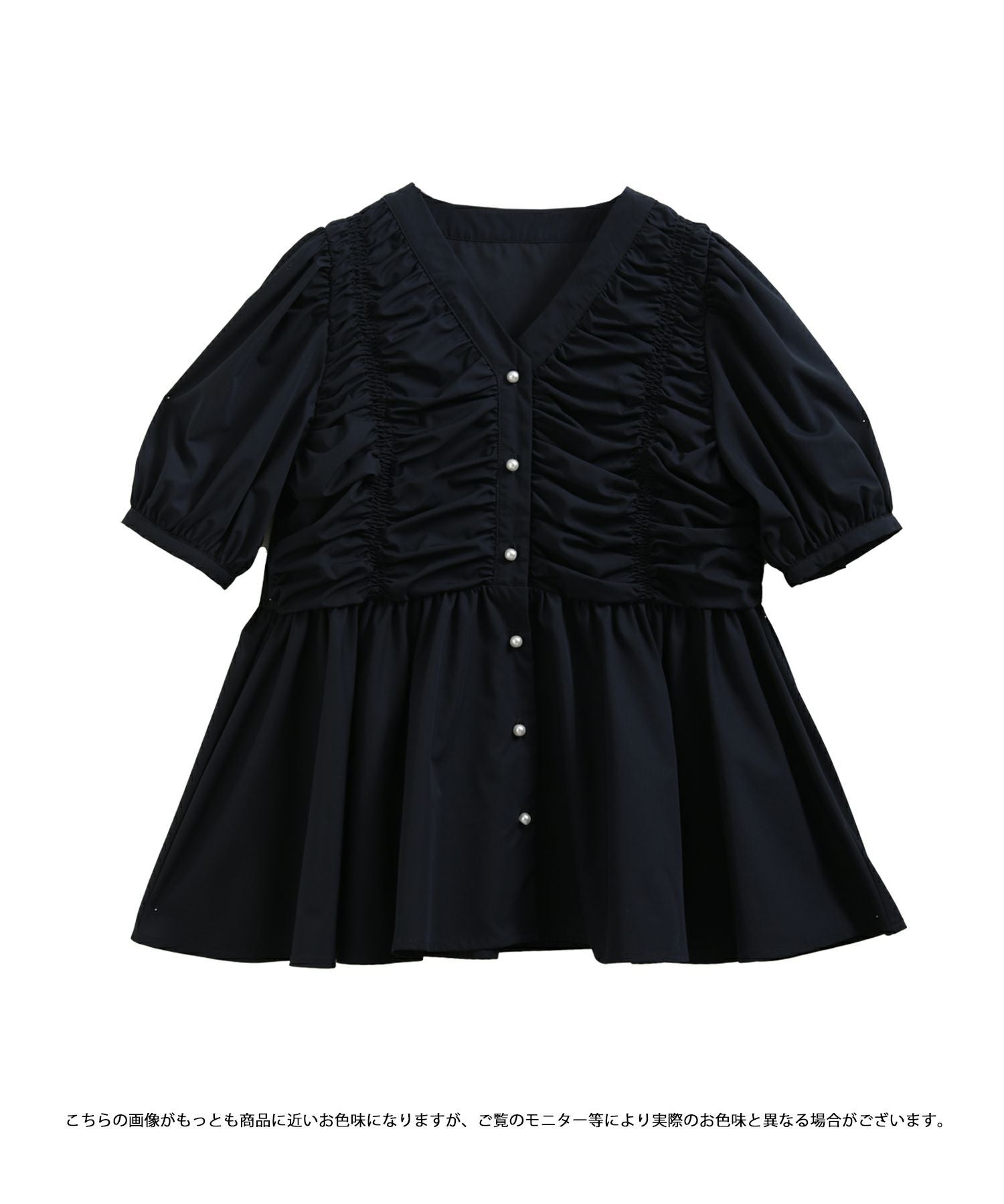 2025ss ブラウス ギャザー パール ペプラム パフスリーブ ギャザーパフスリーブペプラムブラウス【宅配便】