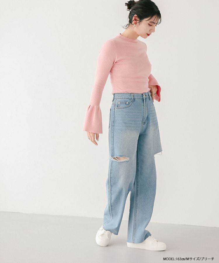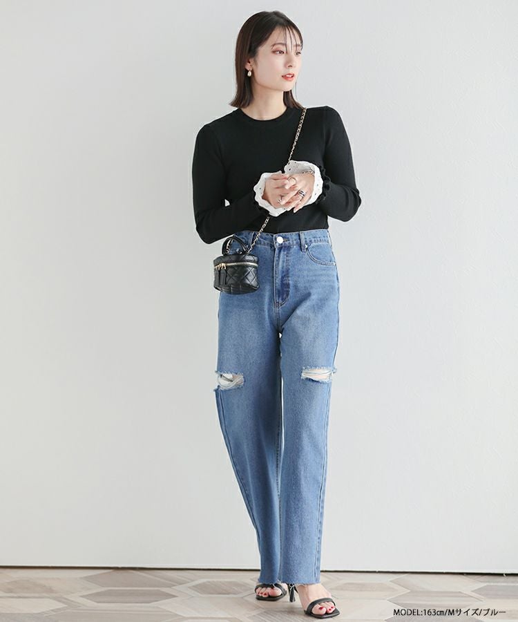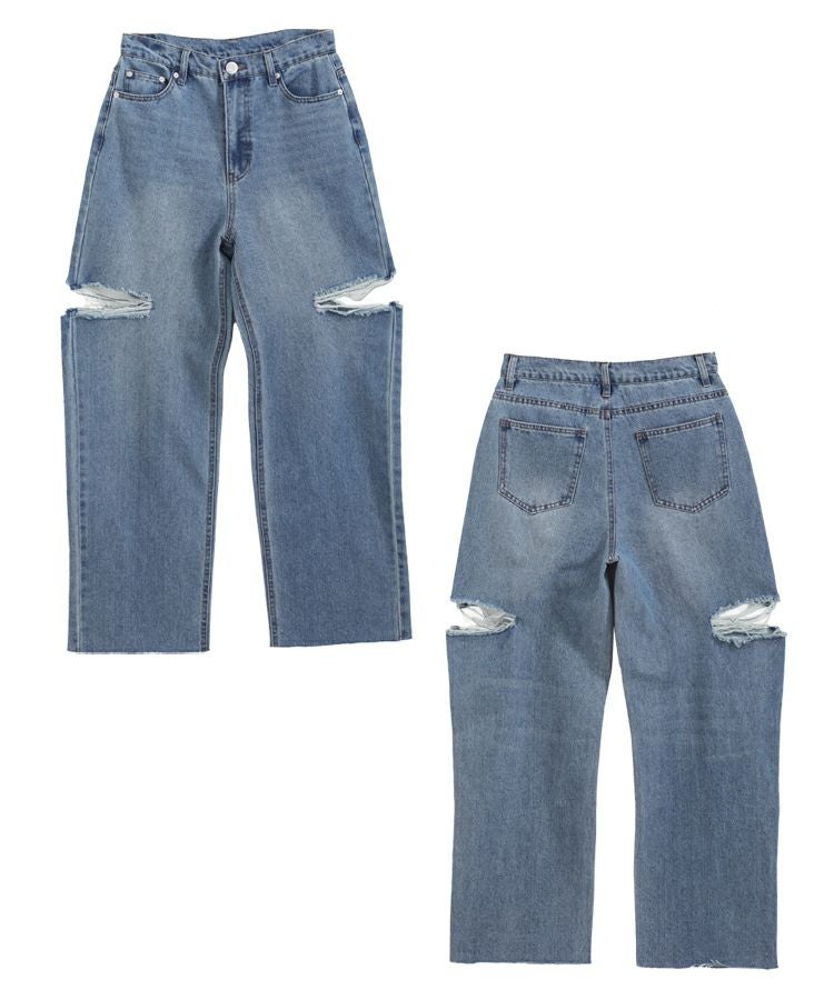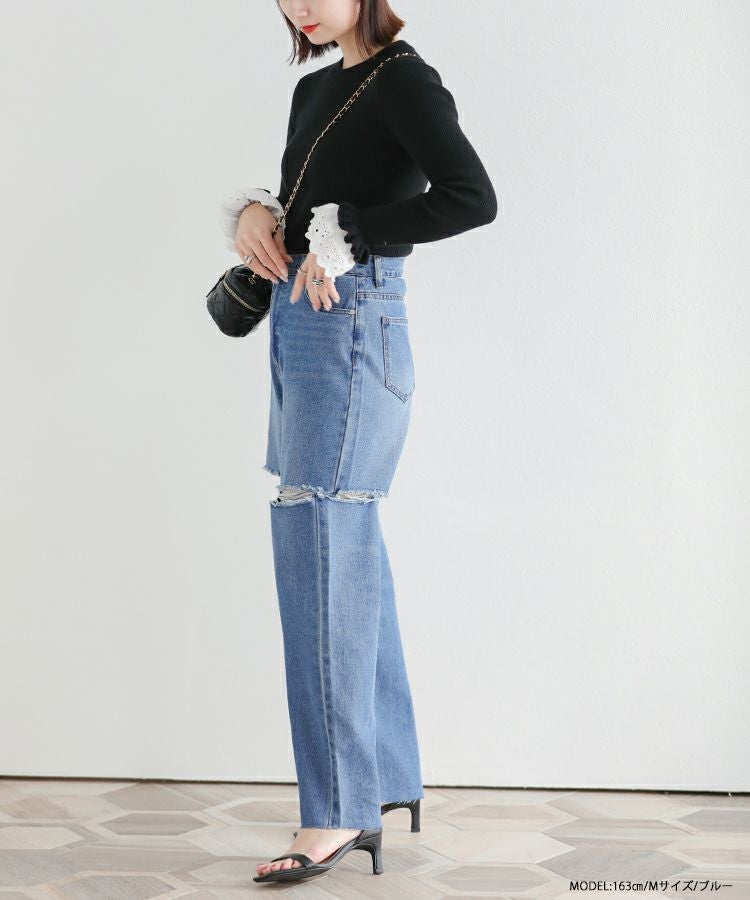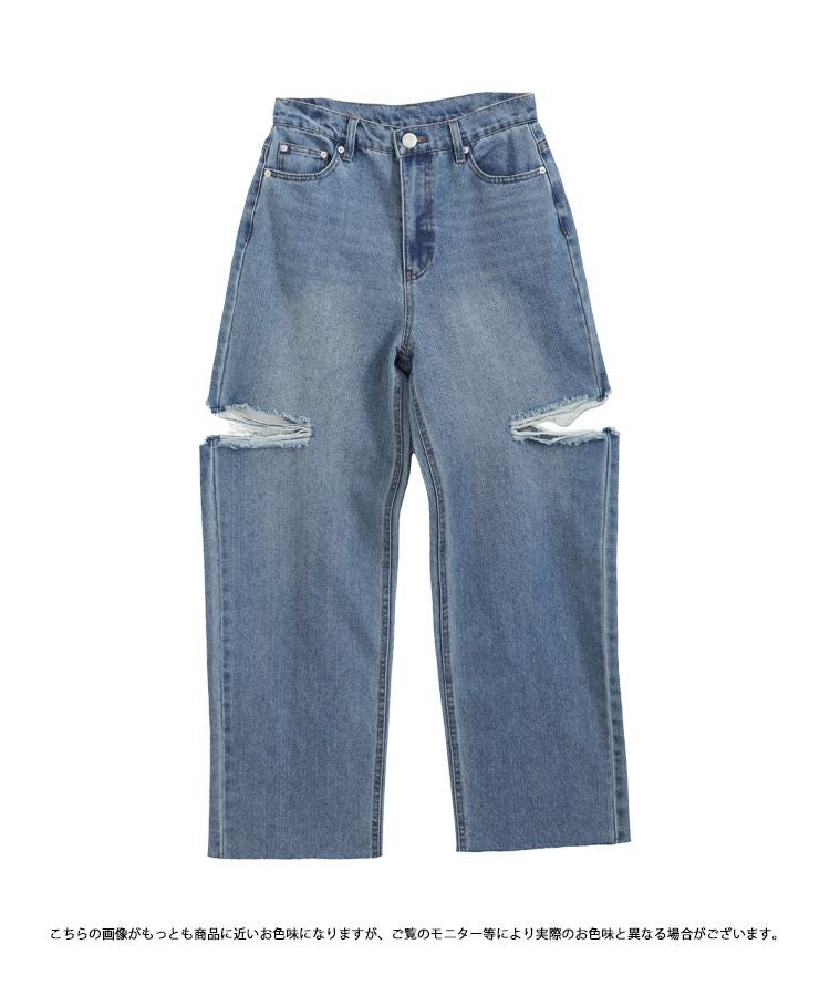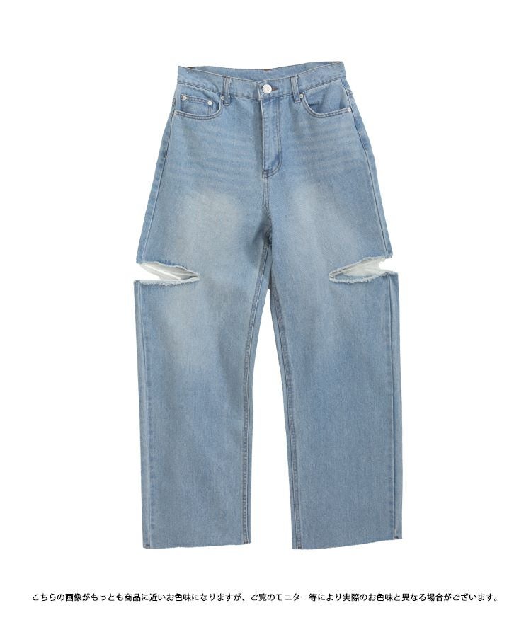 2023 新作 春新作 デニム ダメージジーンズ ジーンズ ワイド カットアウトワイドデニム【メール便】