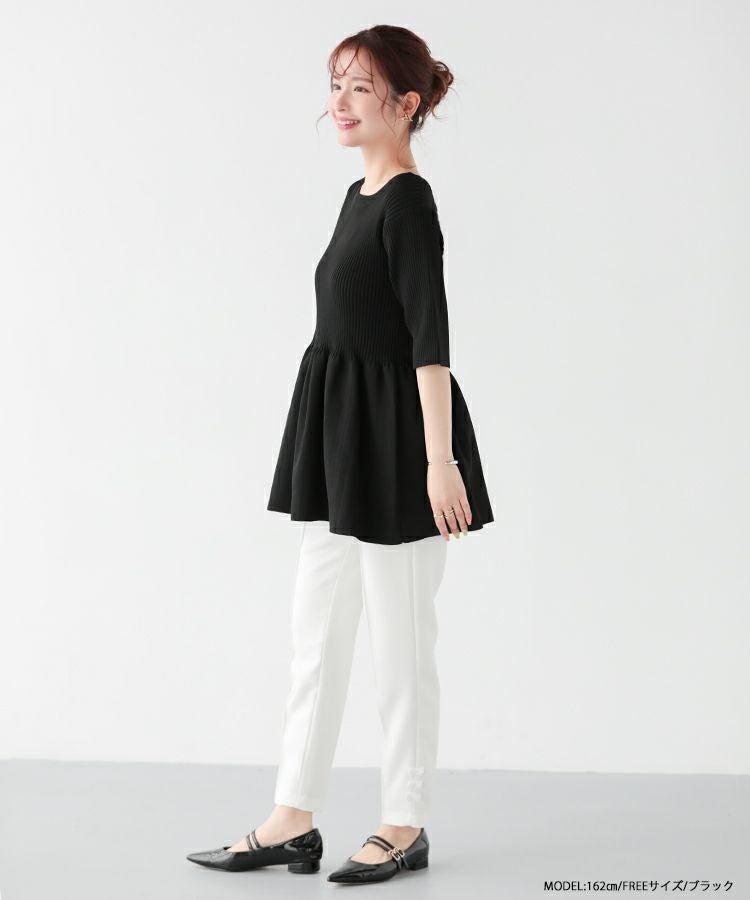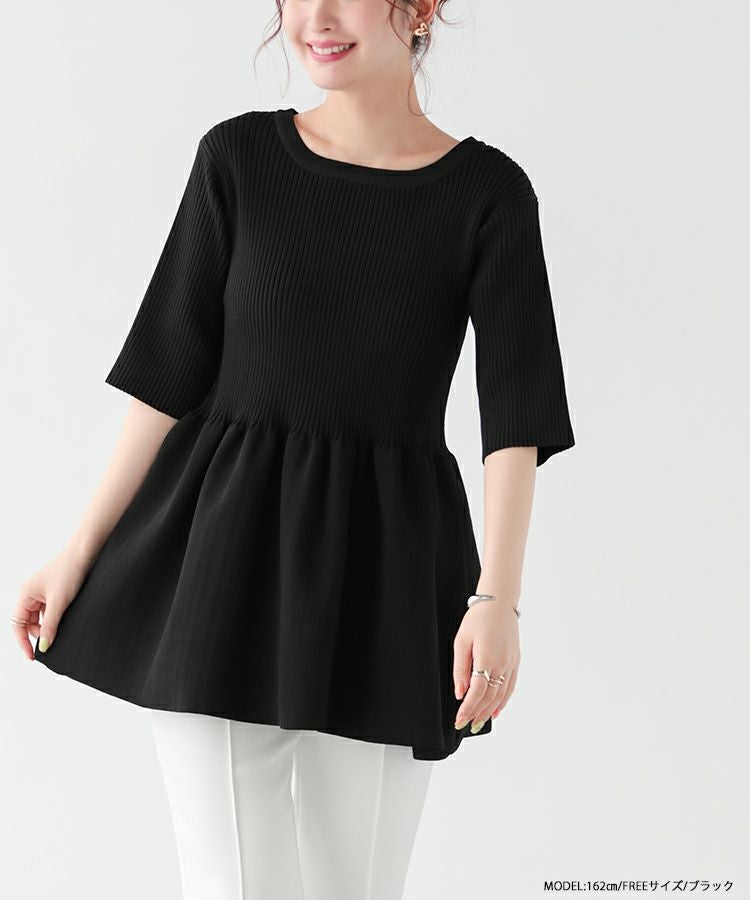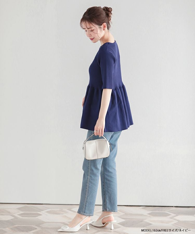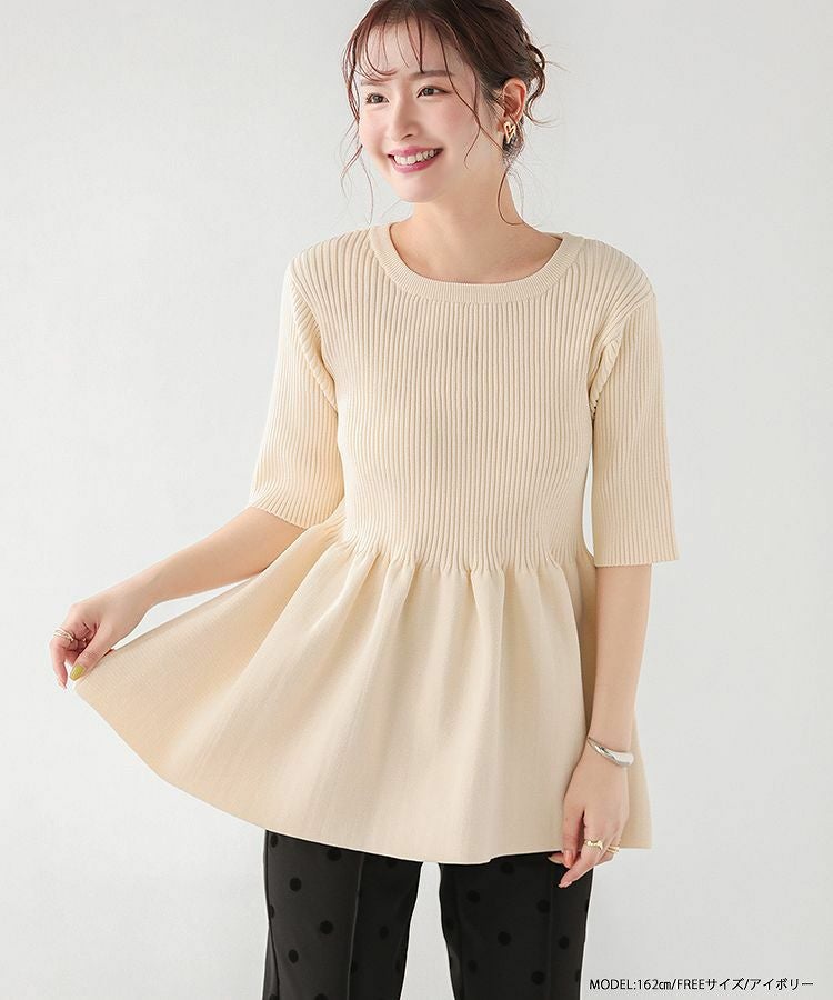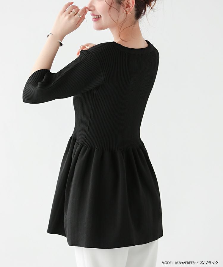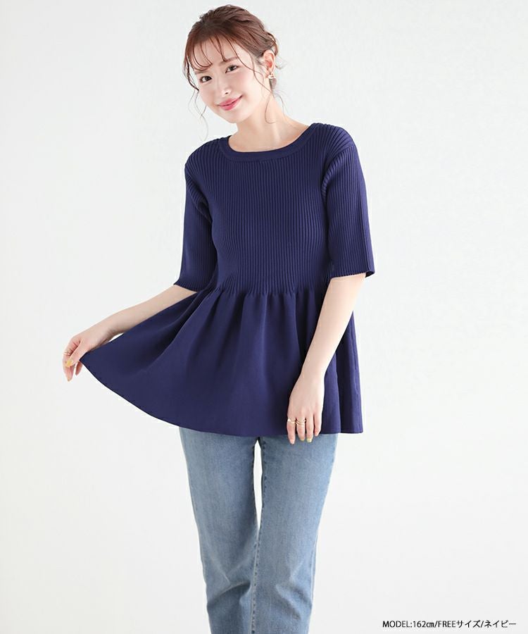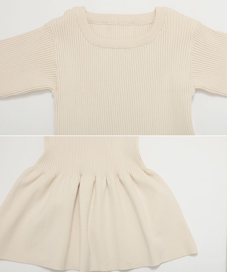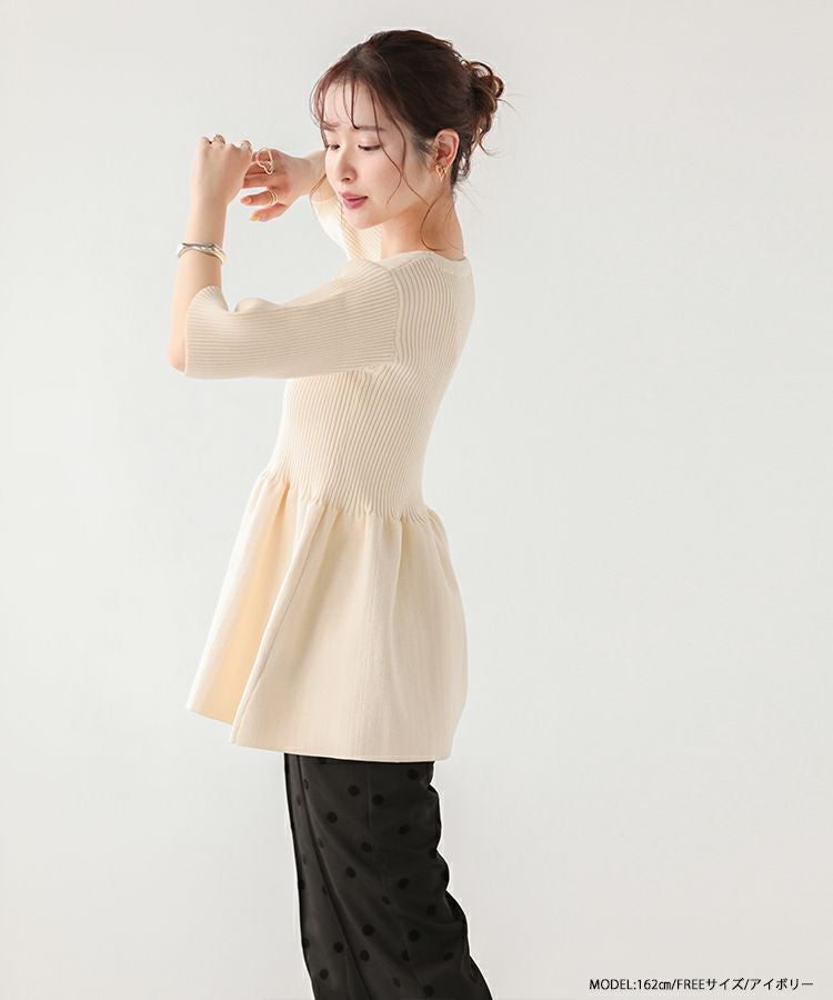 メリハリのあるペプラムシルエットが可愛いリブニットトップスが登場。