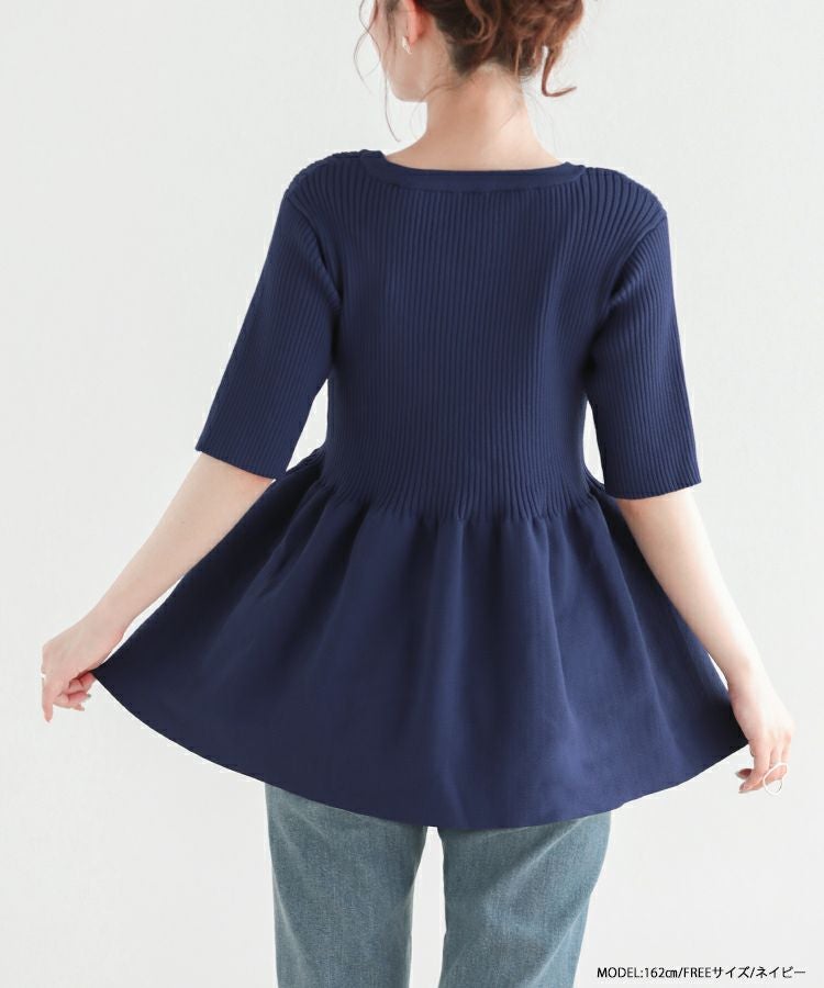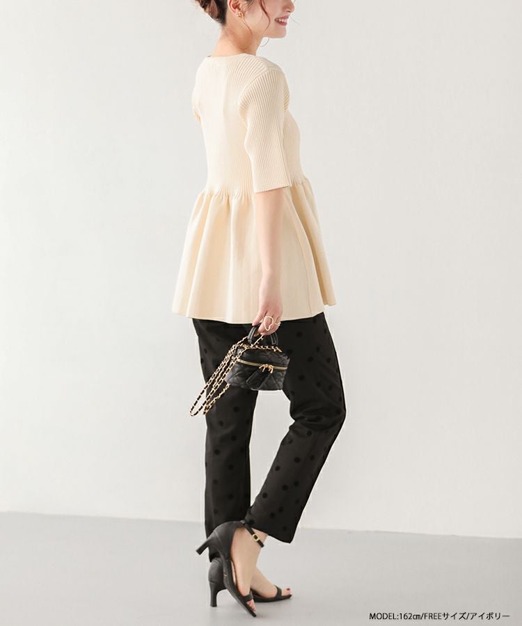 2023ss 春新作 ニット ペプラム リブニット フレア ペプラムリブニットトップス【即納】【宅配便】
