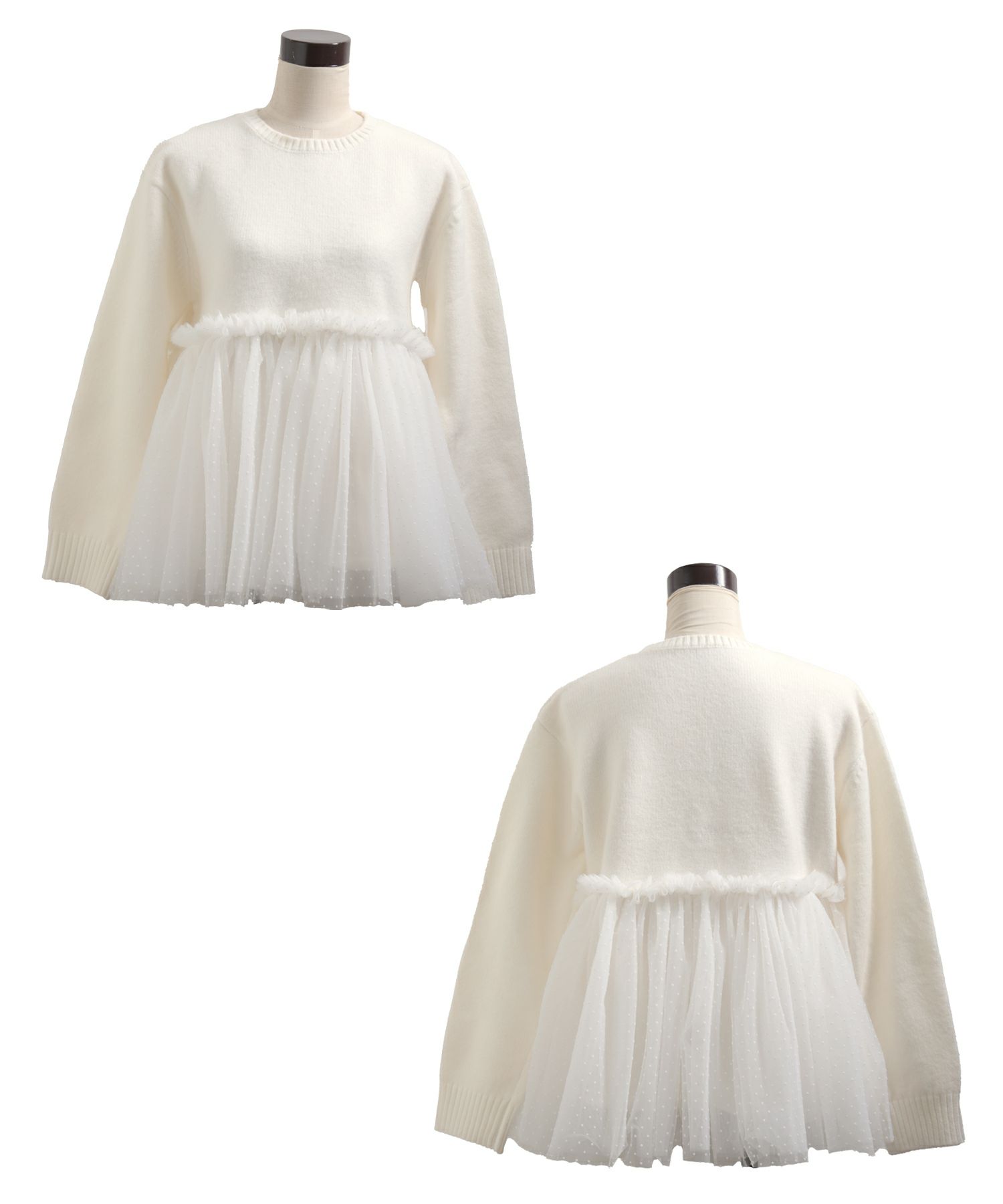 2025aw ニット ペプラム チュール ドットチュールドッキングペプラムニット【宅配便】