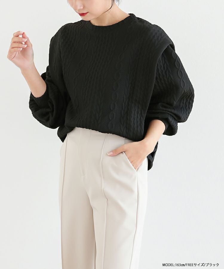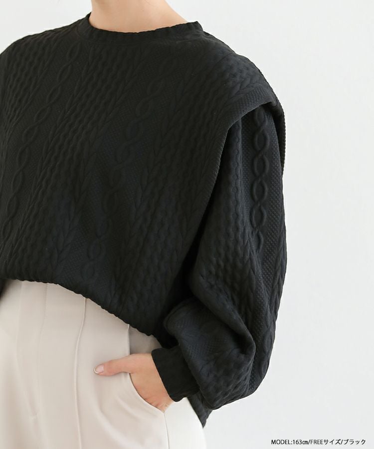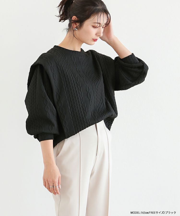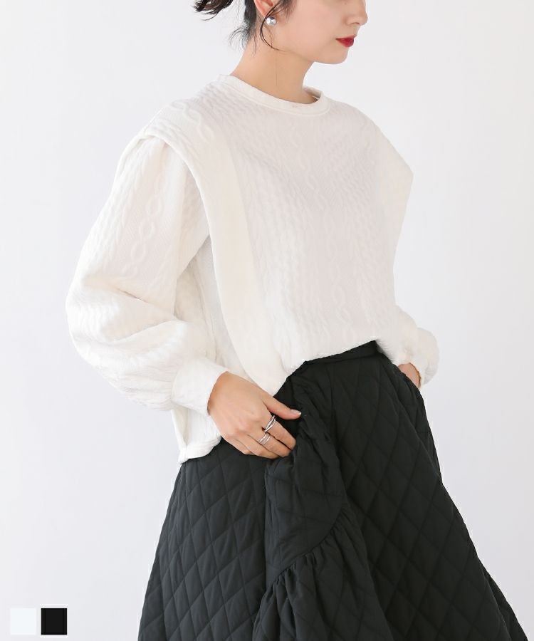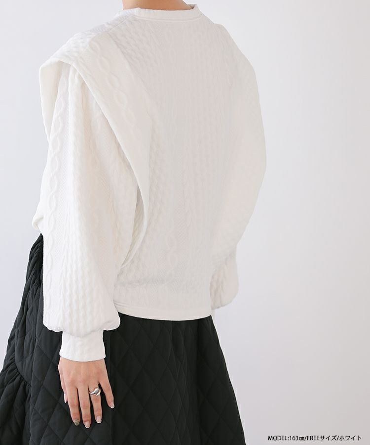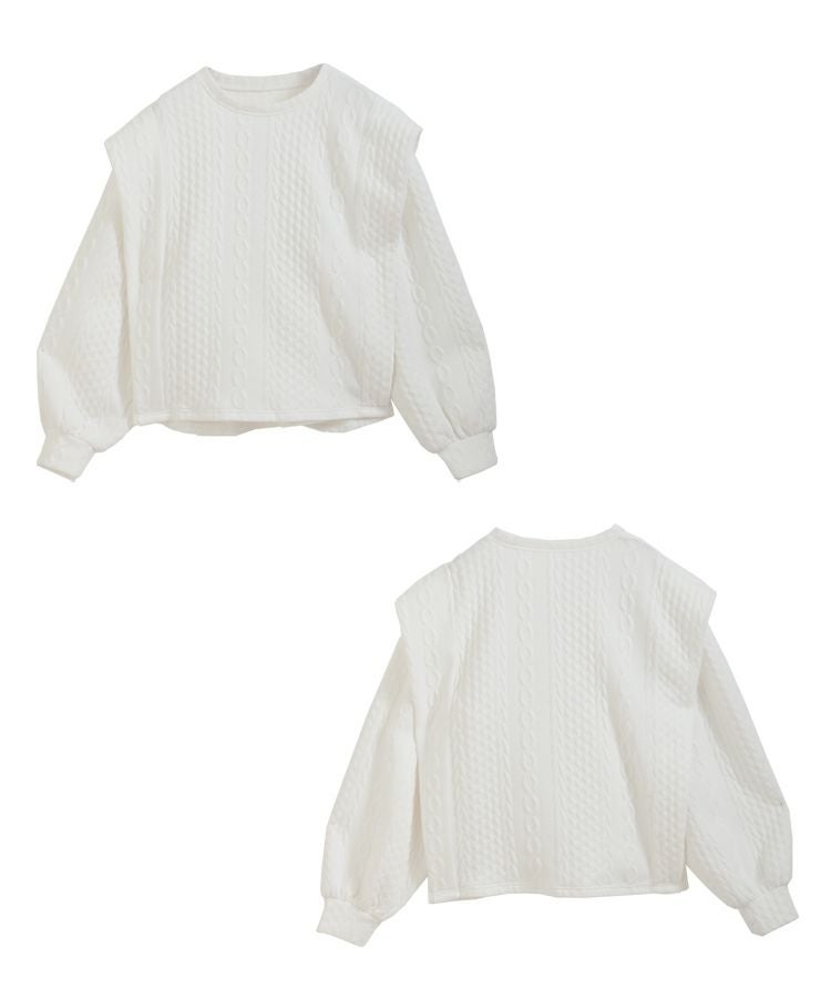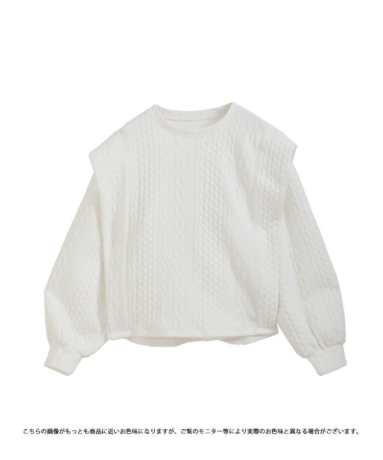 他の画像を見る お気に入りに登録する 2023ss 春新作 ケーブル スウェット ボリュームスリーブ ショルダーカバー ショルダータック ボリュームスリーブケーブルフリルスウェット【宅配便】 価格 ¥ 3,990 税込 在庫切れ