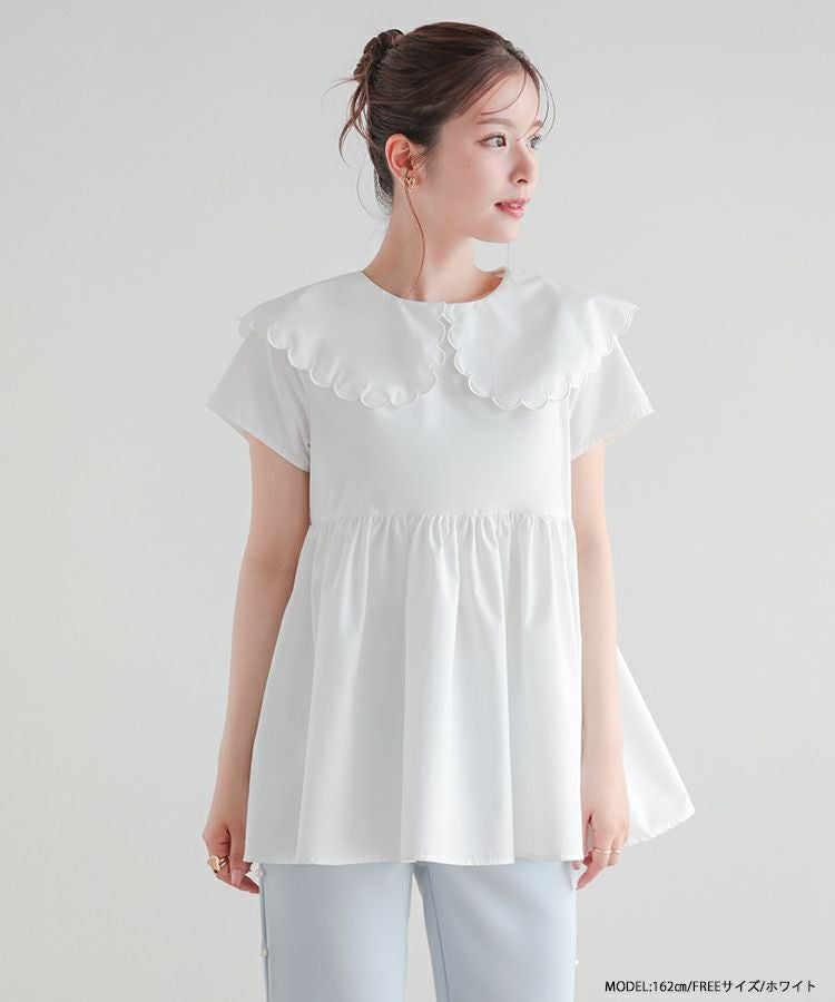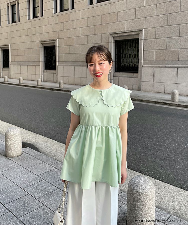 他の画像を見る お気に入りに登録する 2023ss 夏新作 シャツ ブラウス スカラップカラー スカラップ フレア ペプラム 【ZOZO限定商品】スカラップカラーペプラムブラウス【メール便】 価格 ¥ 6,690 税込 在庫切れ