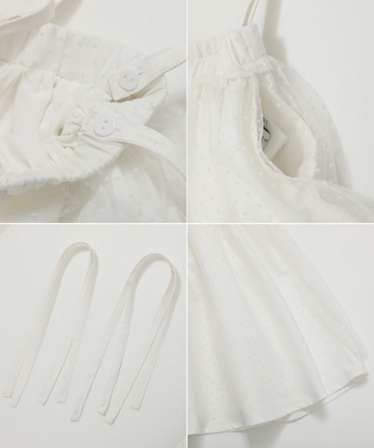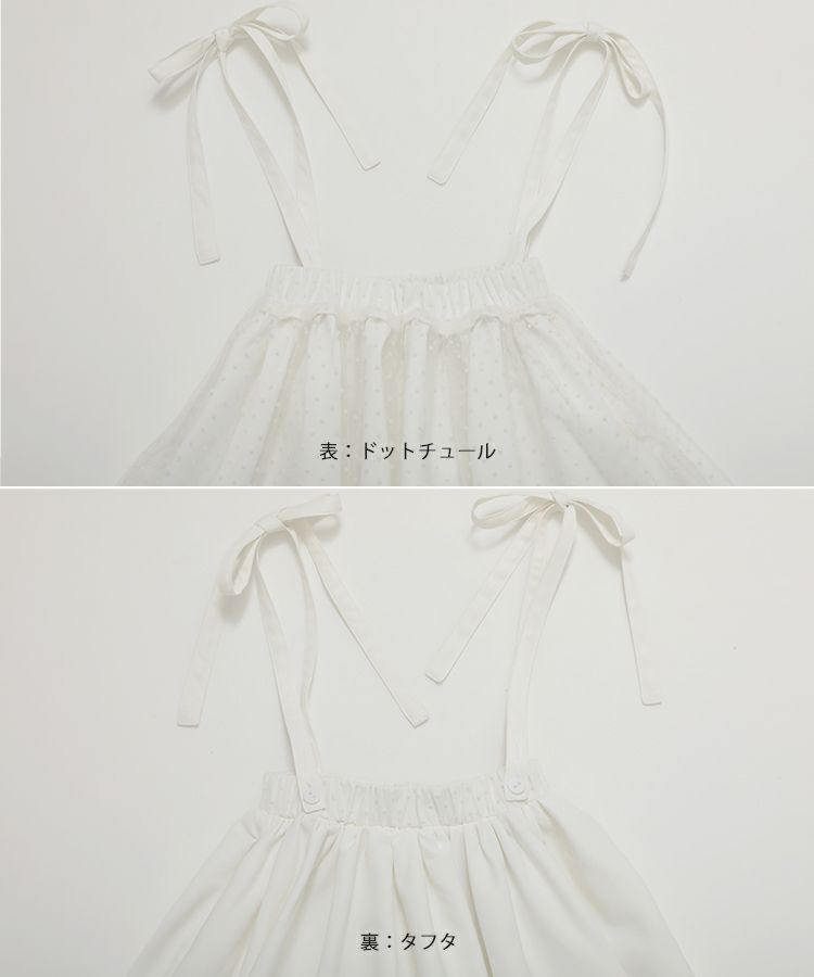 2023ss 春新作 キッズ ストラップ チュールスカート スカート ロングスカート リバーシブル 大人気インスタグラマーmikuコラボ!ストラップ付キッズドットチュール2WAYスカート【宅配便】