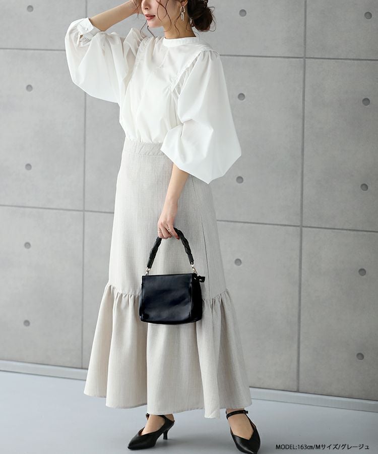 他の画像を見る お気に入りに登録する 春コレクション 2022春 2022ss 春新作 春秋 春物 ロングスカート マキシ ティアード スカート フリル ランダムボリュームティアードスカート【メール便】 価格 ¥ 5,990 税込 在庫切れ