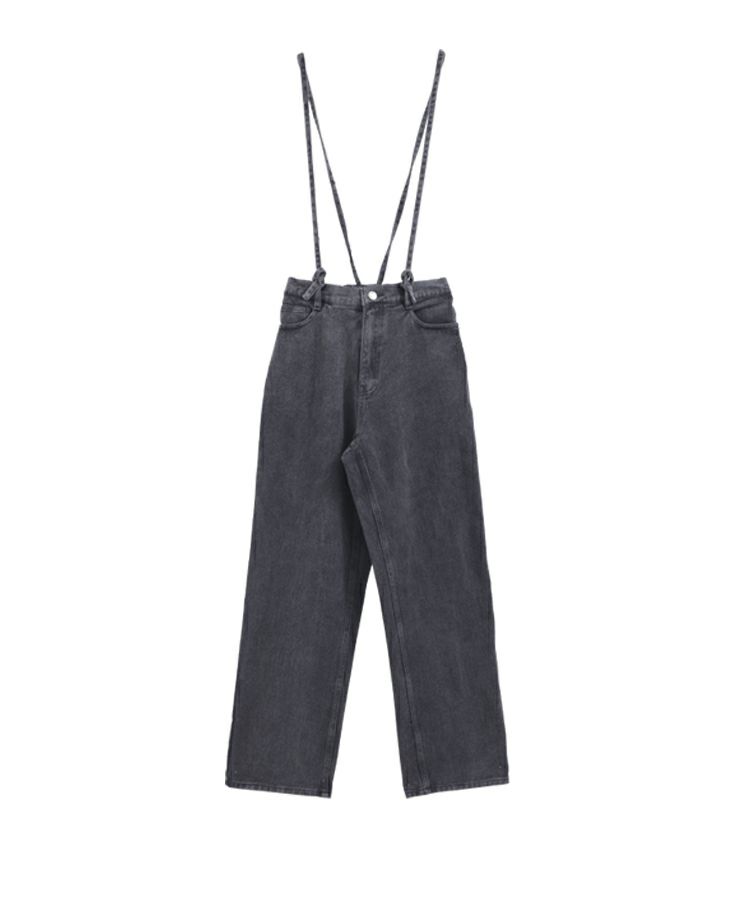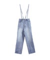 サスペンダーを前で結ぶことで、サロペットとしても楽しめる一着。