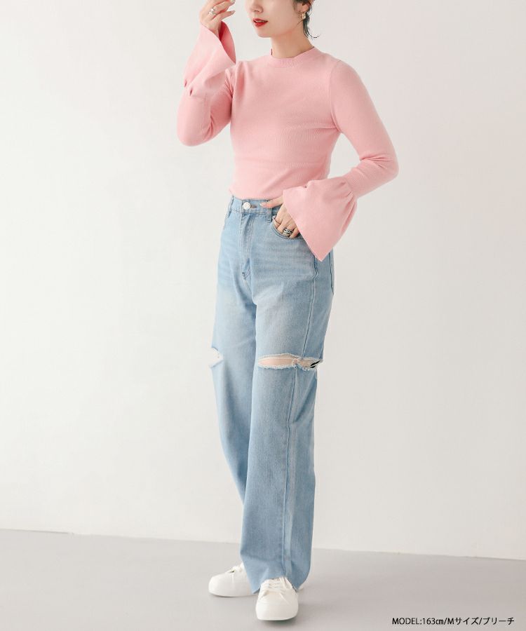 PRの方が甘めのトップスと合わせてるのが可愛くて、ずっと気になっていたので、ハッピーセットで選べて嬉しかったです。 162㎝で丈感などちょうど良かったです。 ダメージがある事で出るシルエットが可愛いです。春になったら着たいなーと楽しみです。