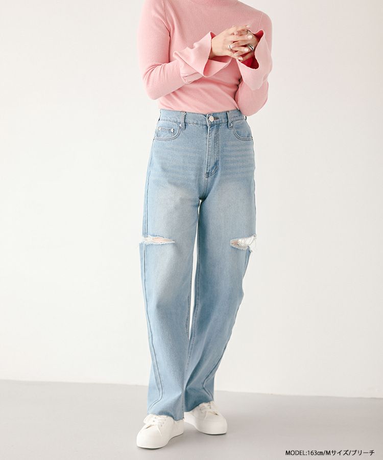 2023 新作 春新作 デニム ダメージジーンズ ジーンズ ワイド カットアウトワイドデニム【メール便】