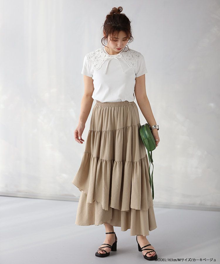他の画像を見る お気に入りに登録する 春コレクション 2022春 2022ss 春新作 春秋 春物 ロングスカート マキシ ティアード スカート フリル ランダムボリュームティアードスカート【メール便】 価格 ¥ 5,990 税込 在庫切れ