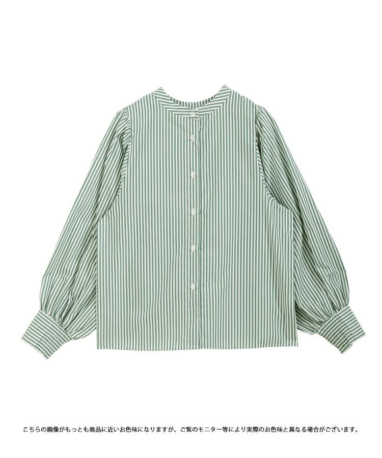 デザイン性のあるボリューム感たっぷりの袖が可愛いストライプ柄のブラウス。