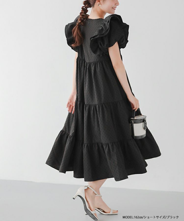 2024ss ss 春新作 ドット ティアード ワンピース フロッキードットティアードワンピース 【宅配便】