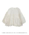 チュール生地のフラワーモチーフを重ねて縫い付けたトップスは
