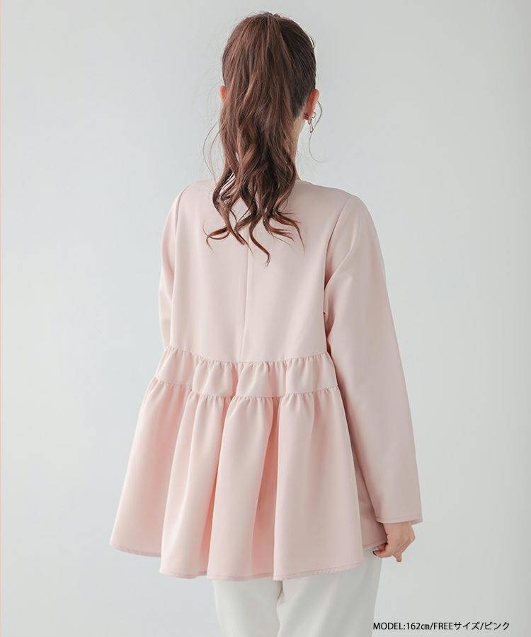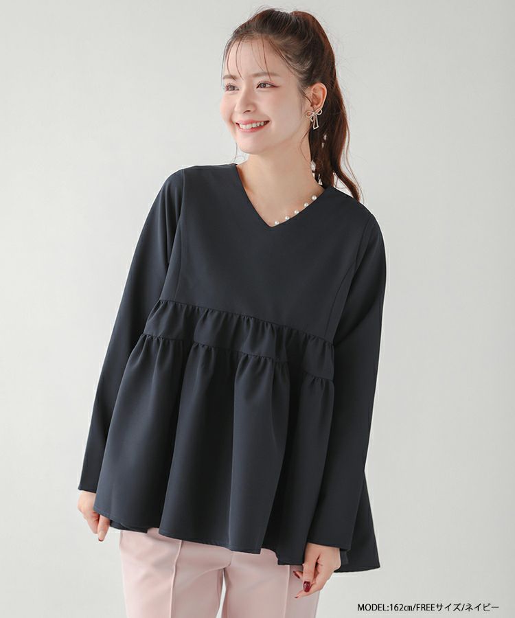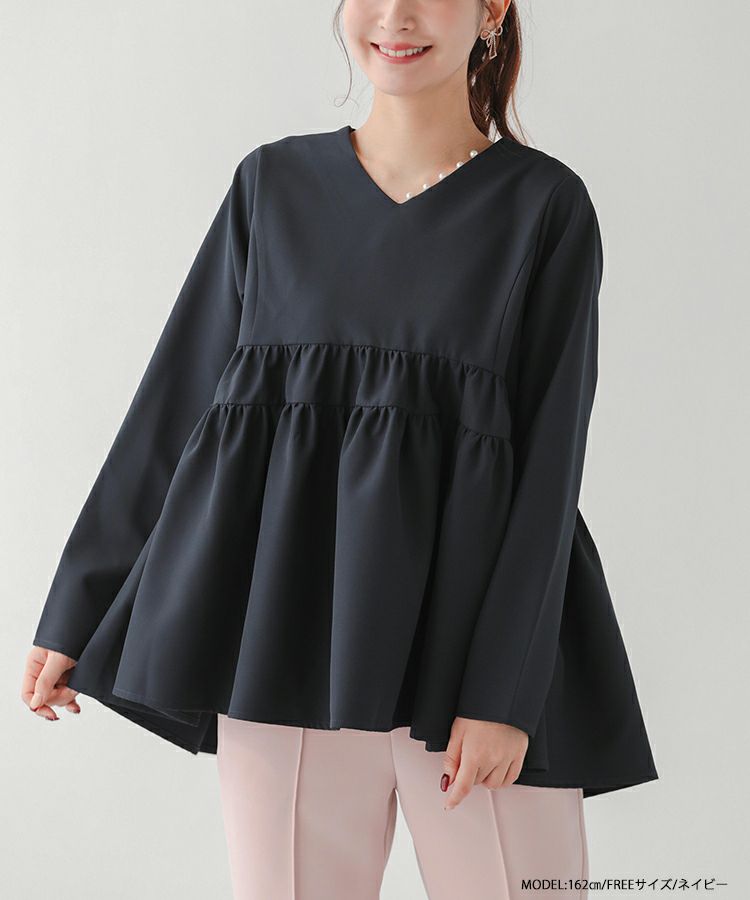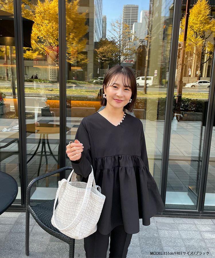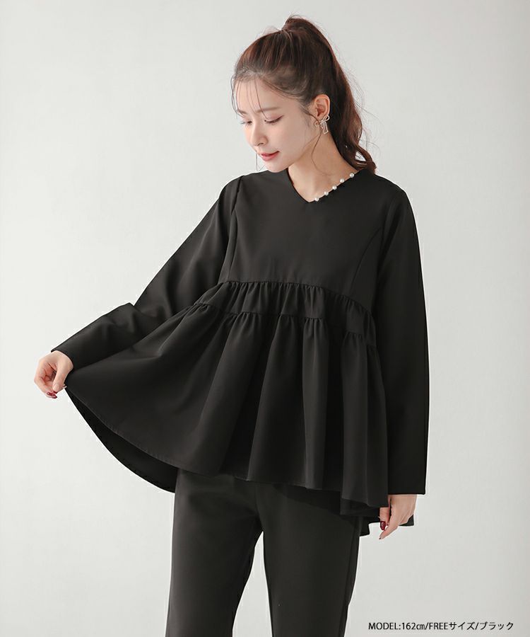 2024ss ss 春新作 Vネック パール ギャザー フレア トップス Vネックパールギャザーフレアトップス【宅配便】