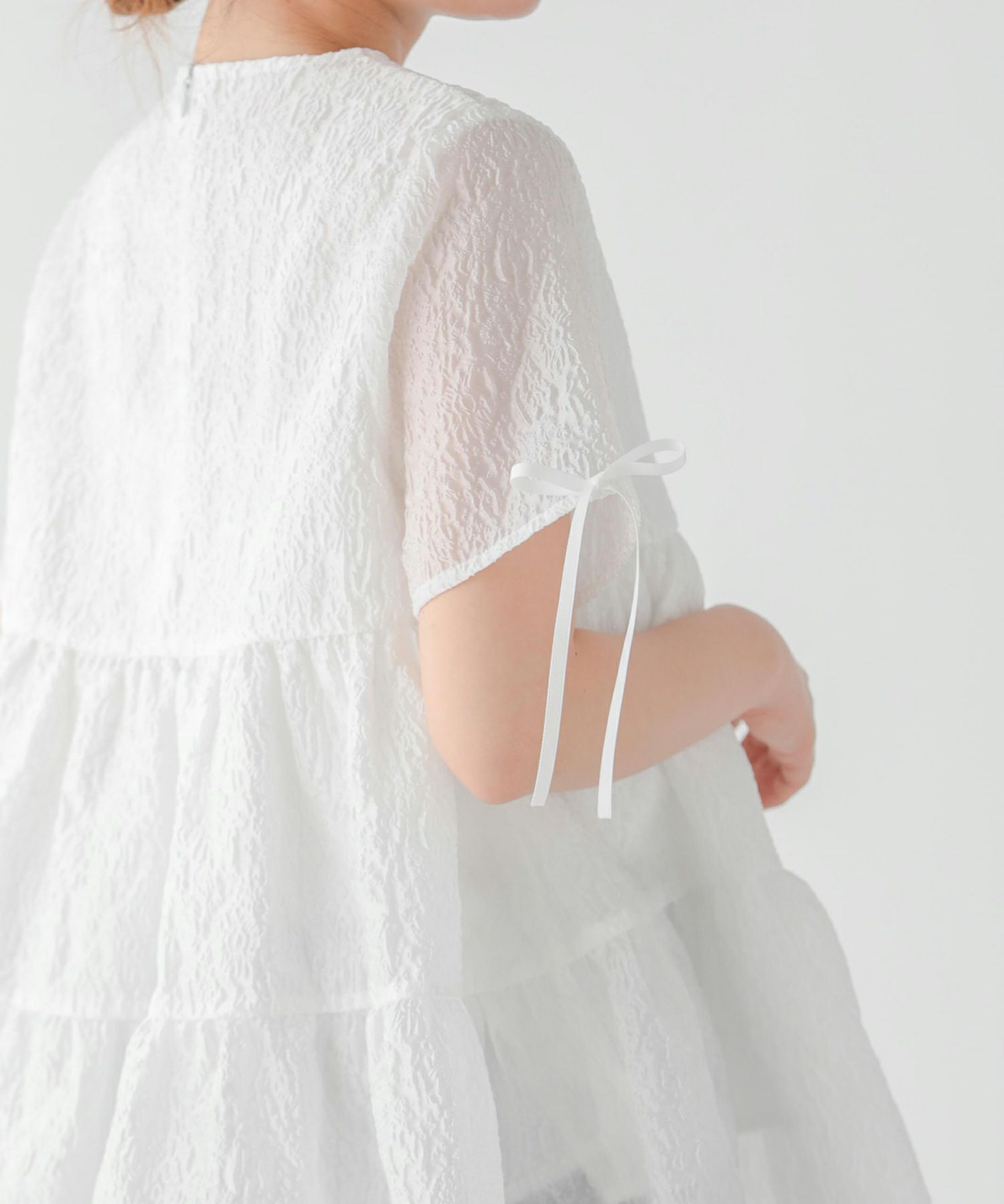 2024ss 夏新作 ジャガード トップス リボン シアージャガード袖リボンティアードトップス【宅配便】