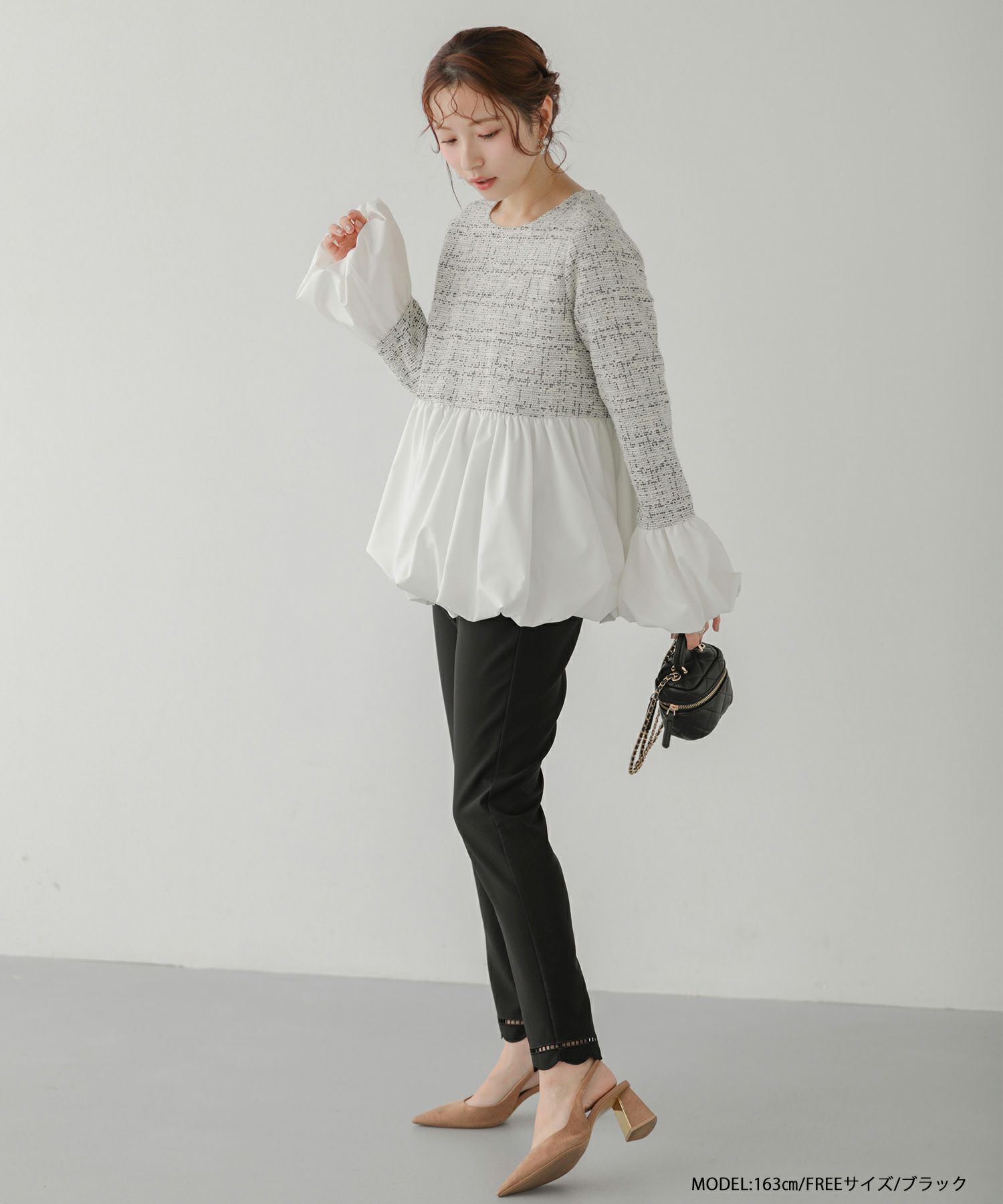 下身頃と袖口にはバルーンシルエットのブラウス生地をし