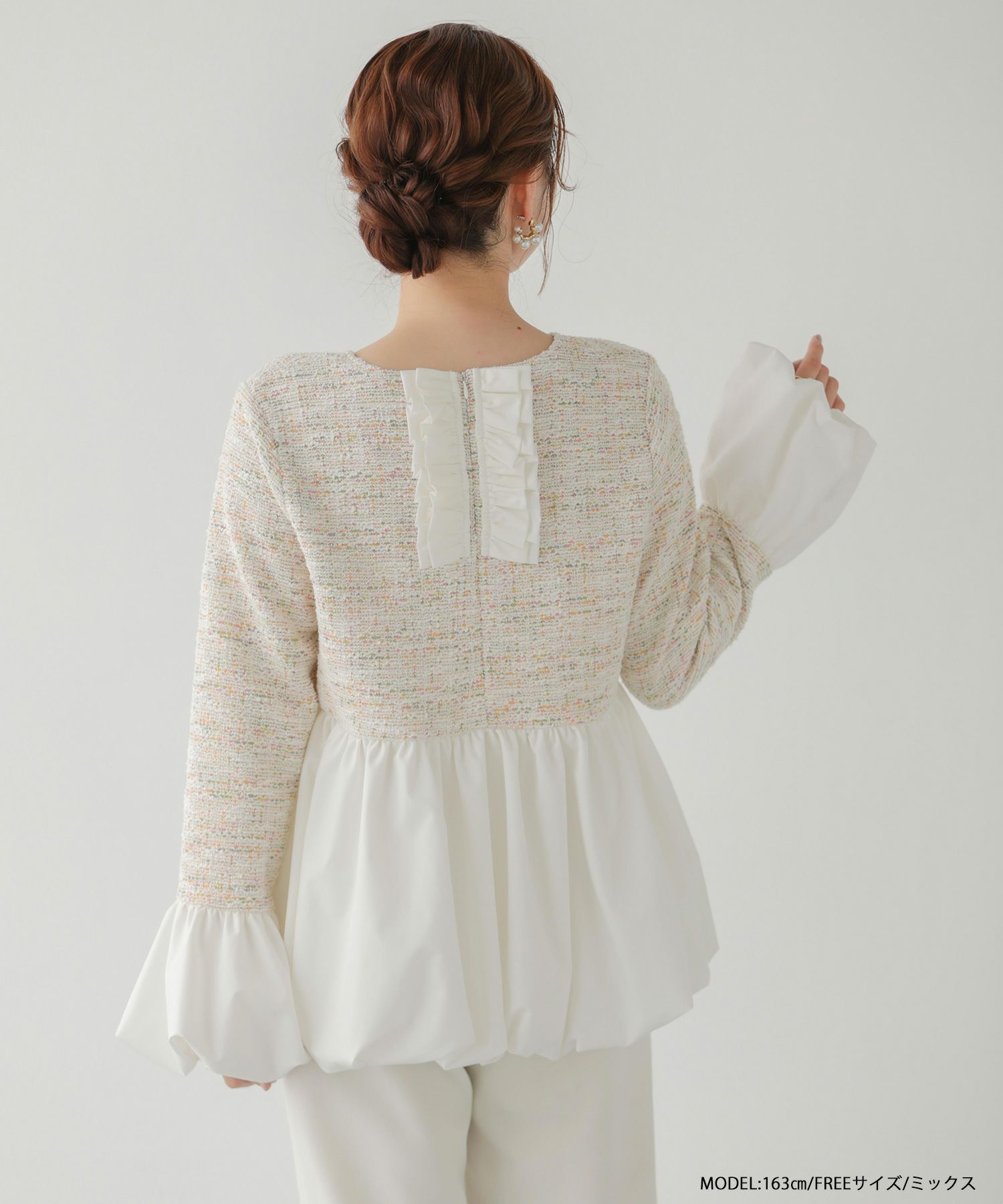 2025aw ツイード フリル バルーン トップス ツイードバックフリルバルーントップス【予約10/30~順次発送】【宅配便】