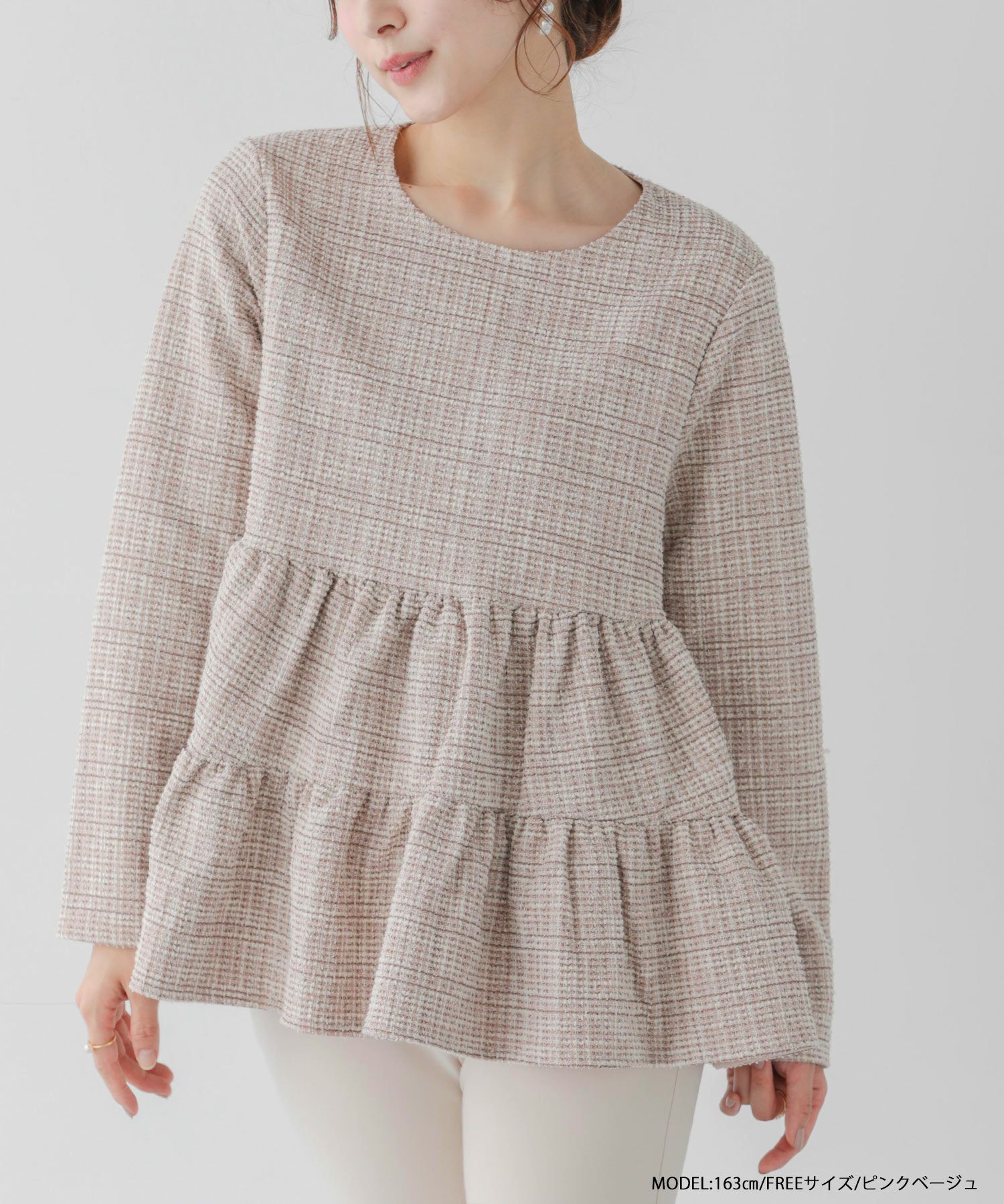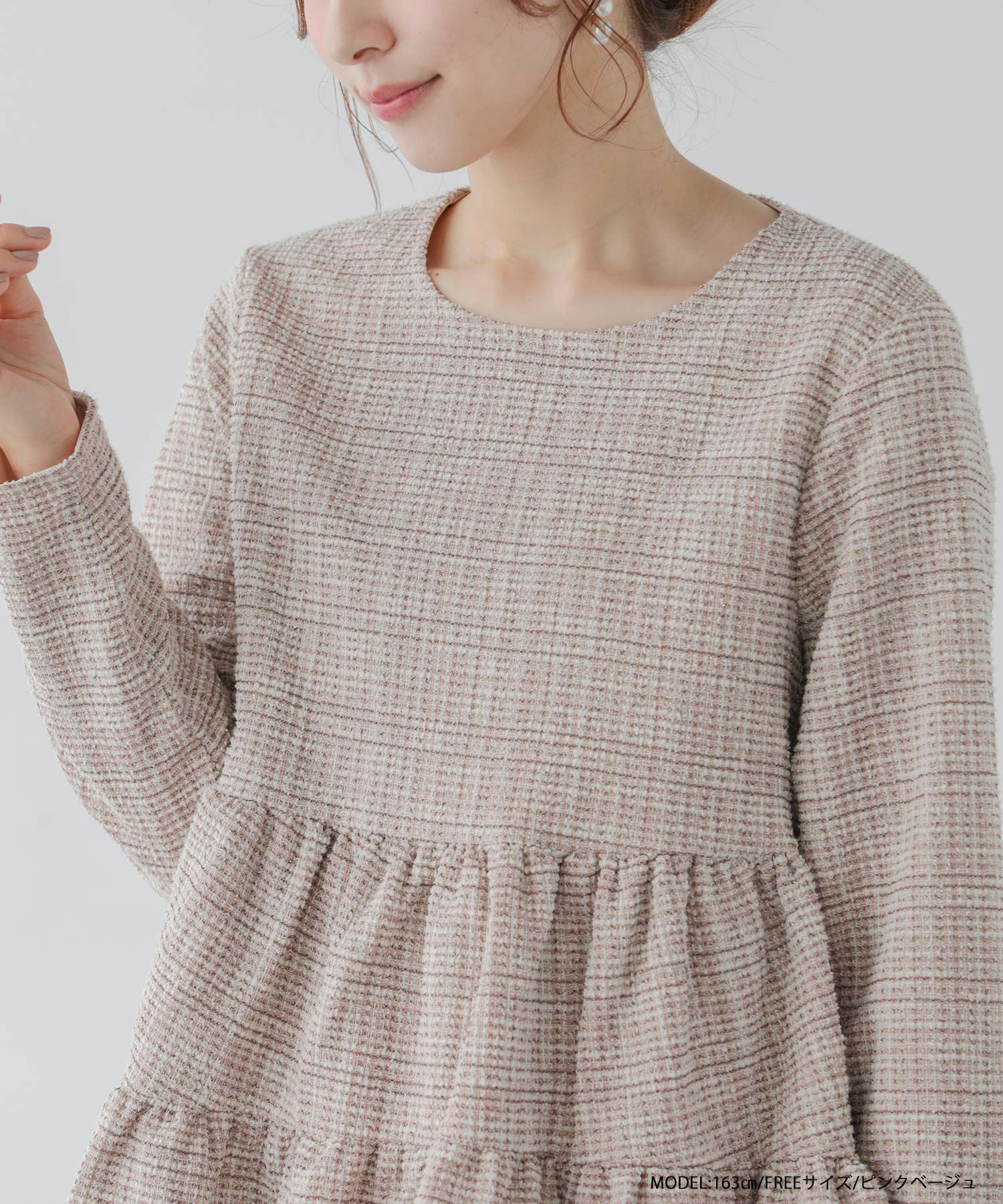 ラメ糸を使用したツイード生地のティアードトップスが登場。