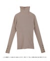 袖口にボタンをあしらったハイネックリブニット。