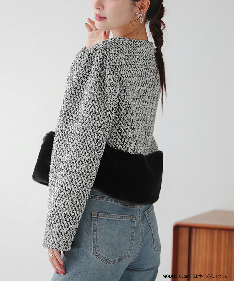 他の画像を見る お気に入りに登録する 2023aw ツイード ジャケット アウター コート エコファー ファー ツイード ドッキングファーツイードジャケット【宅配便】 価格 ¥ 10,990 税込 在庫切れ