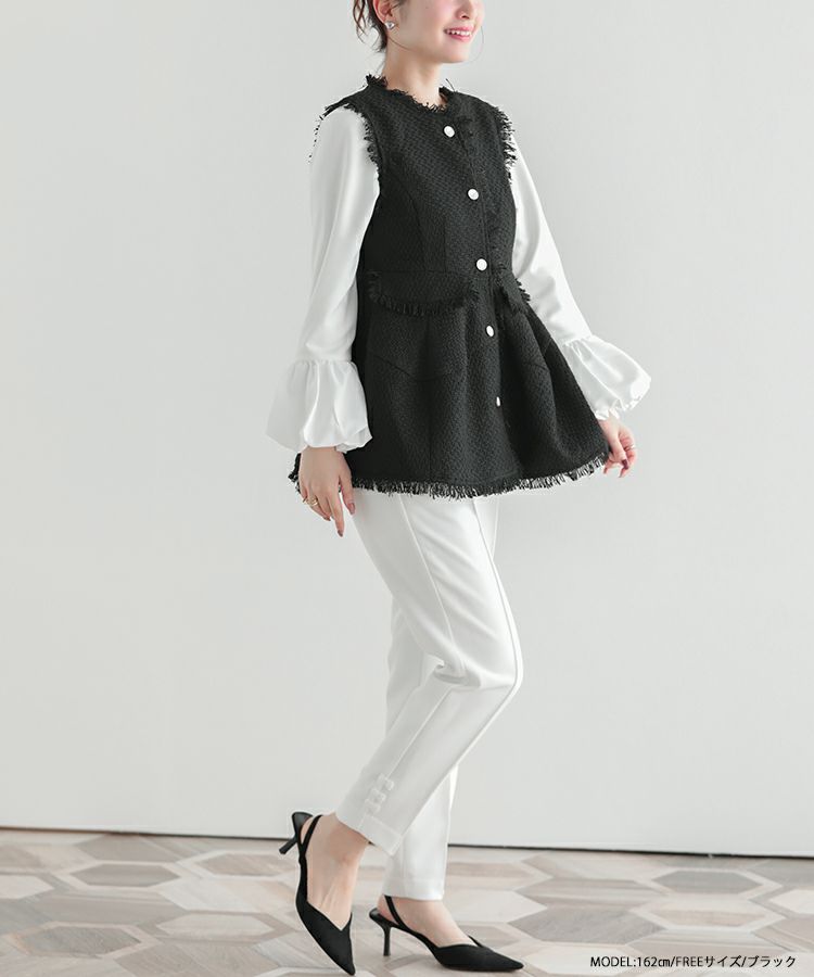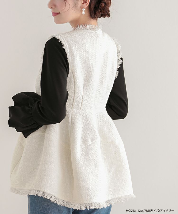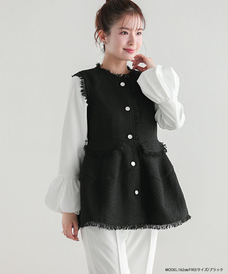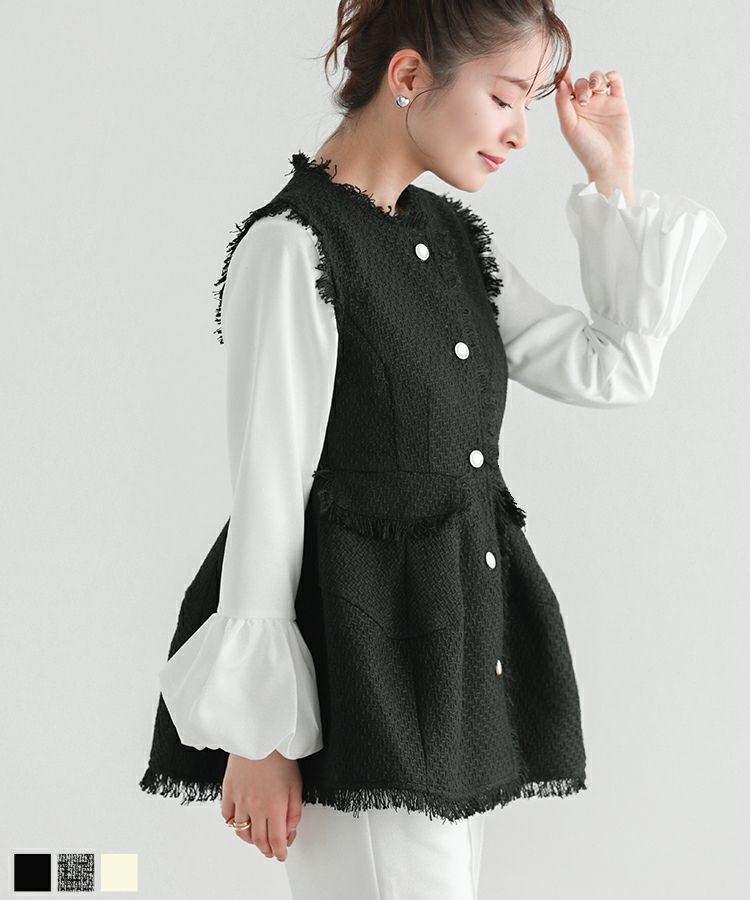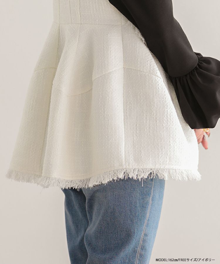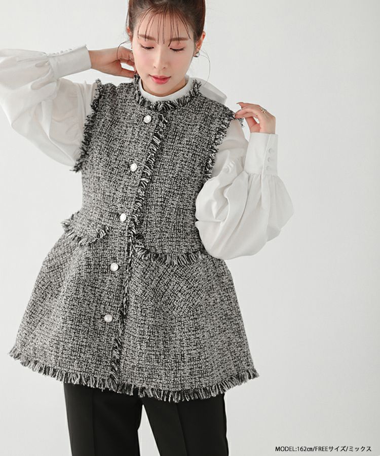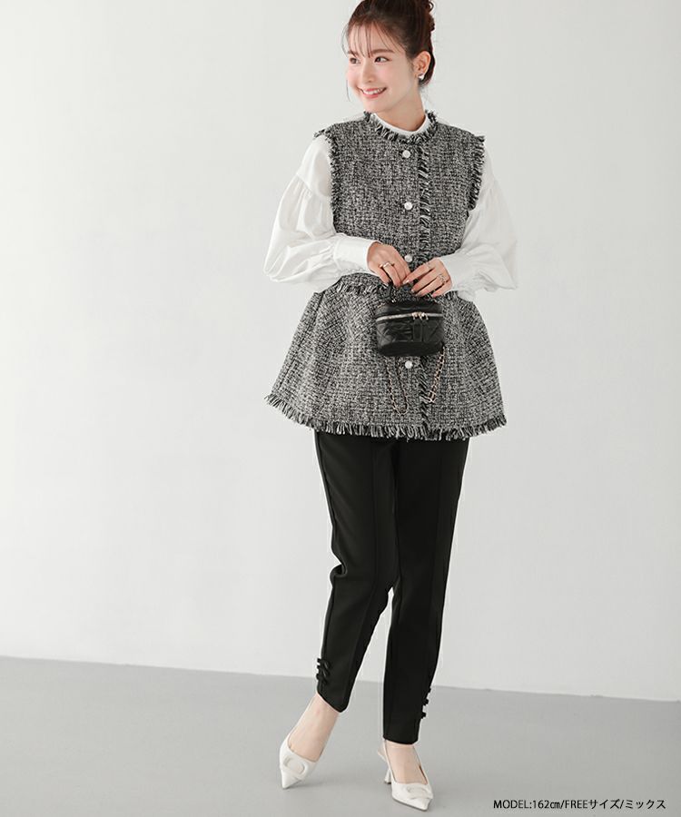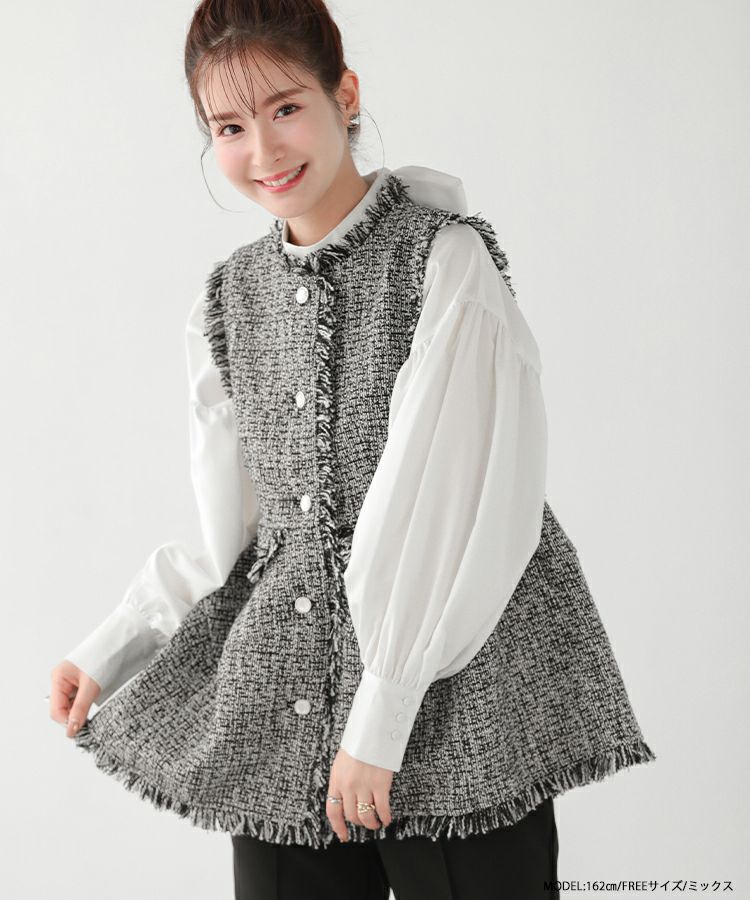 再販 他の画像を見る お気に入りに登録する 2023ss ベスト レイヤード ジレ ペプラム ノーカラー フリンジ ツイード 【ZOZO限定商品】ペプラムツイードジレ【宅配便】 価格 ¥ 8,990 税込 在庫切れ
