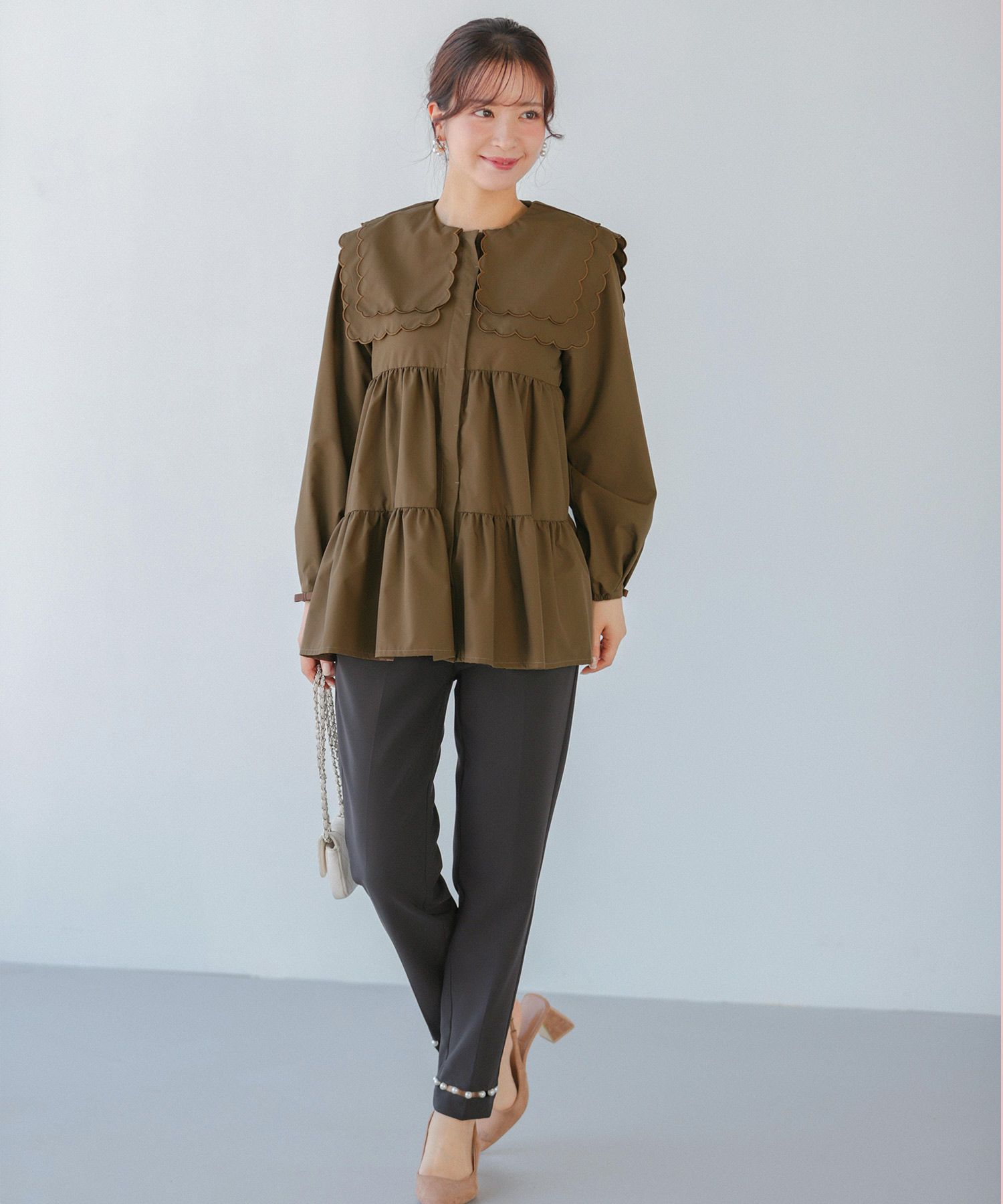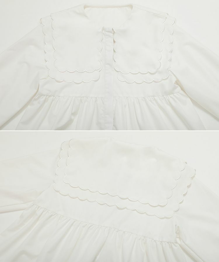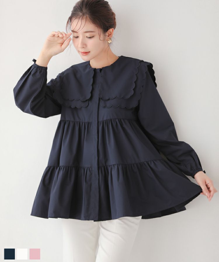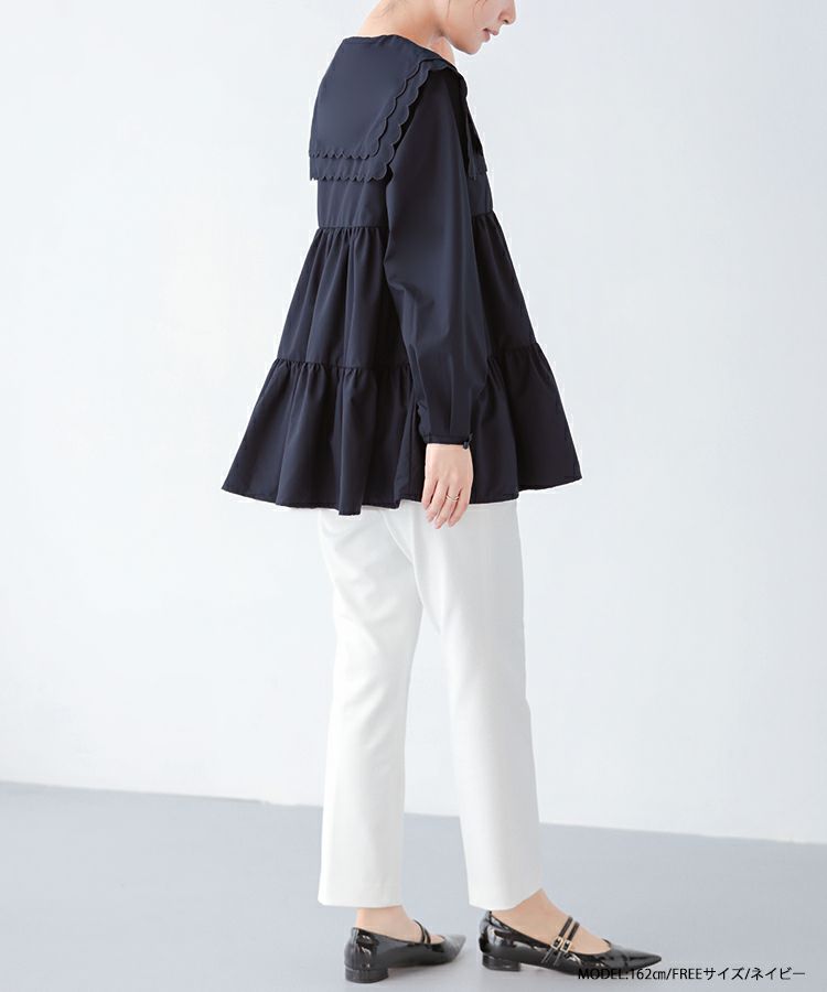 他の画像を見る お気に入りに登録する 2023aw 秋新作 シャツ ブラウス スカラップカラー セーラーカラー ビッグカラー スカラップ フレア ティアード ダブルスカラップカラーティアードブラウス【宅配便】 価格 ¥ 7,990 税込 在庫切れ