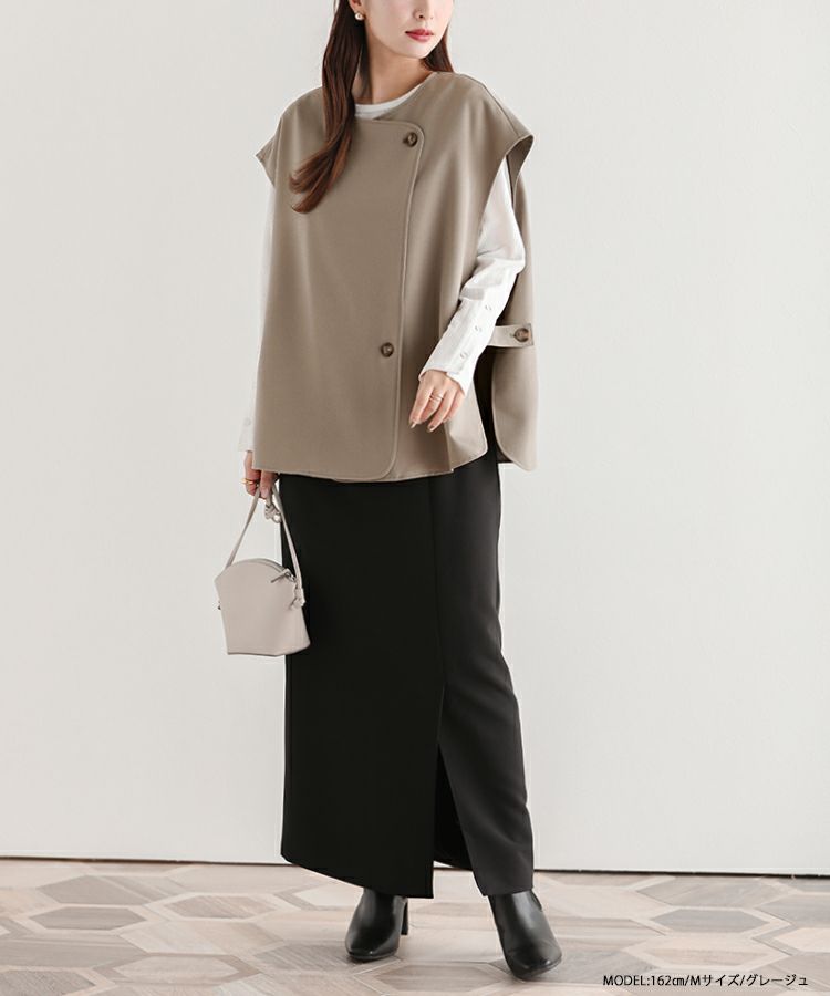 他の画像を見る お気に入りに登録する 2022秋 2022aw 秋新作 ベスト レイヤード ジレ ノーカラー サイドアジャスター サイドリボン サイドベルトウールライクベスト【宅配便】 価格 ¥ 5,590 税込 在庫切れ