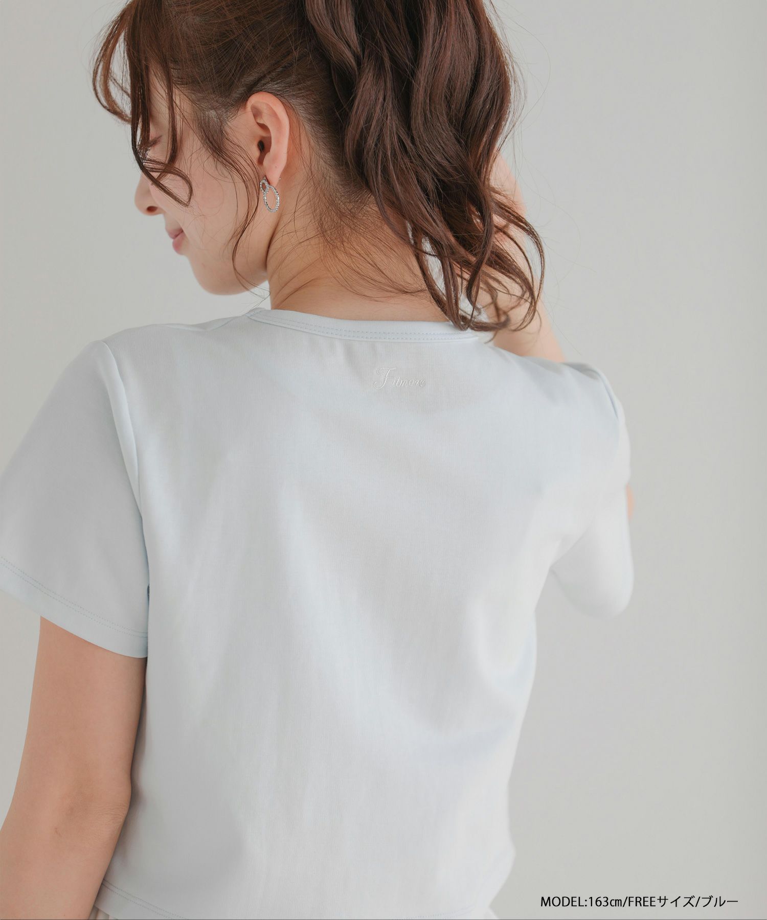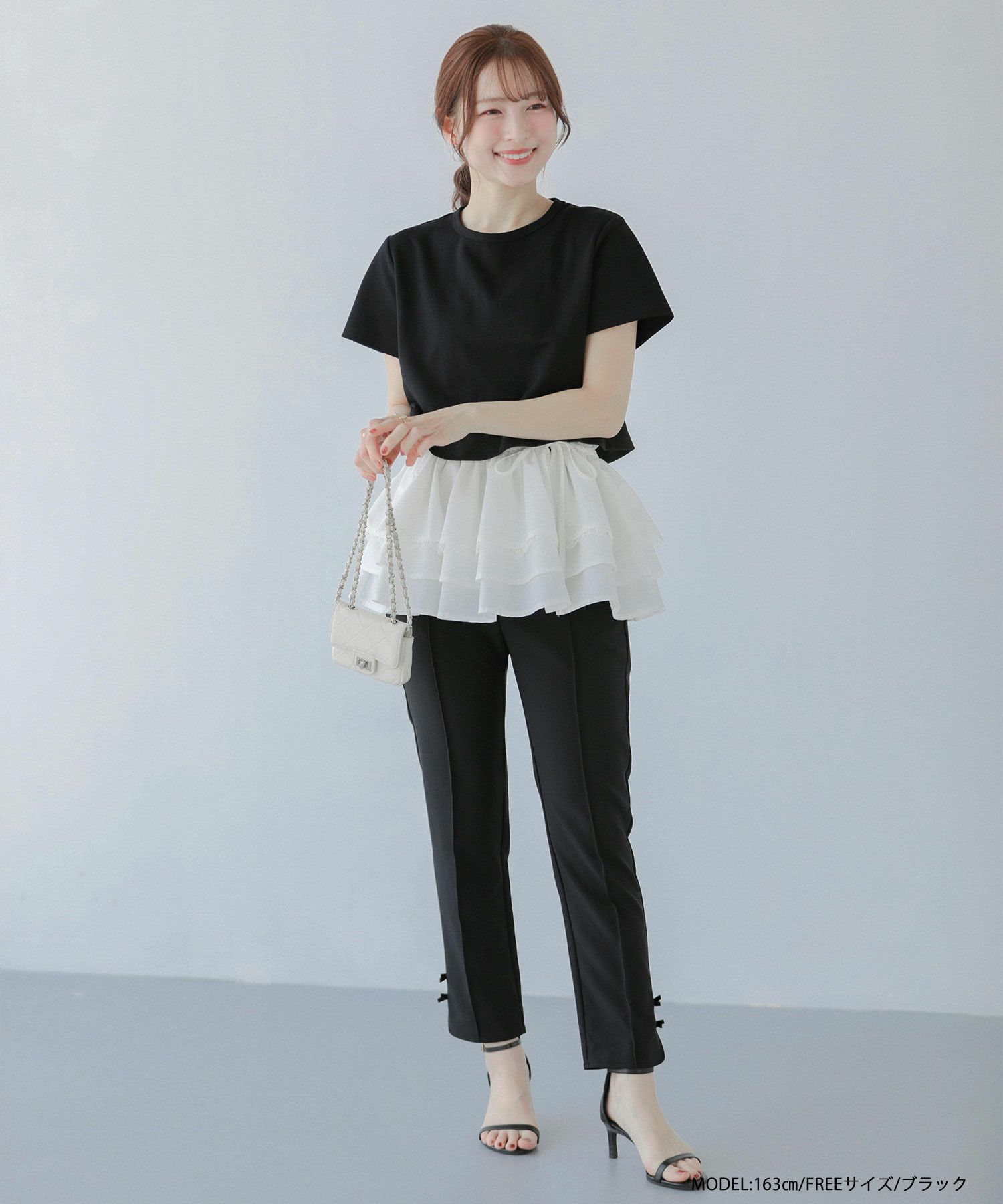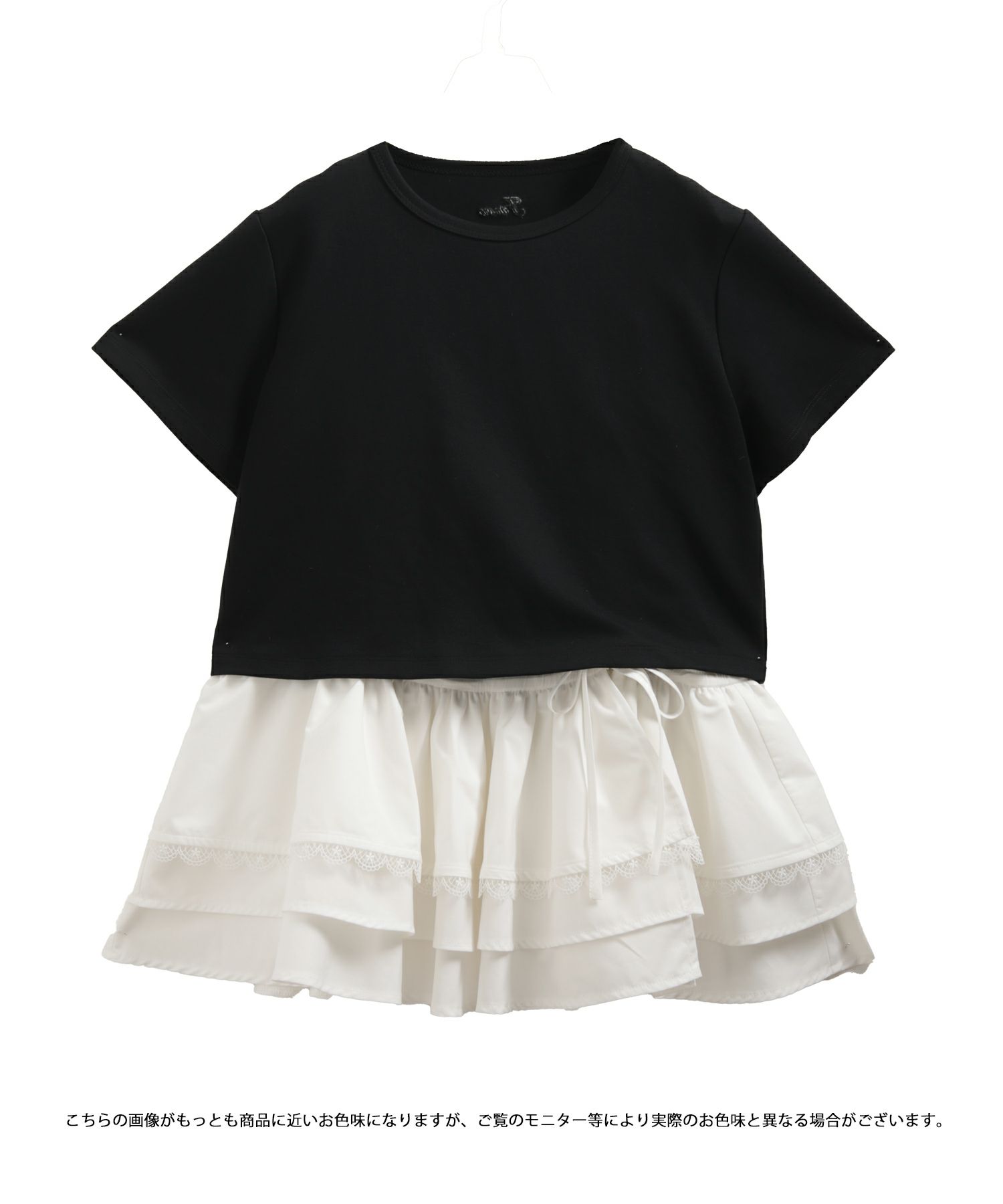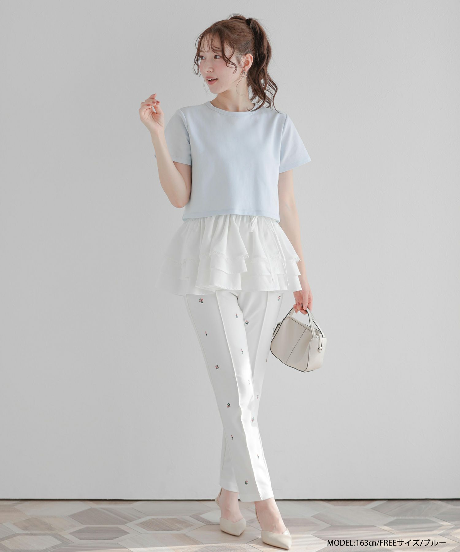 2025ss Tシャツ 刺繍 フリル レース ドッキング レイヤード 裾ドッキング刺繍Tシャツ【宅配便】