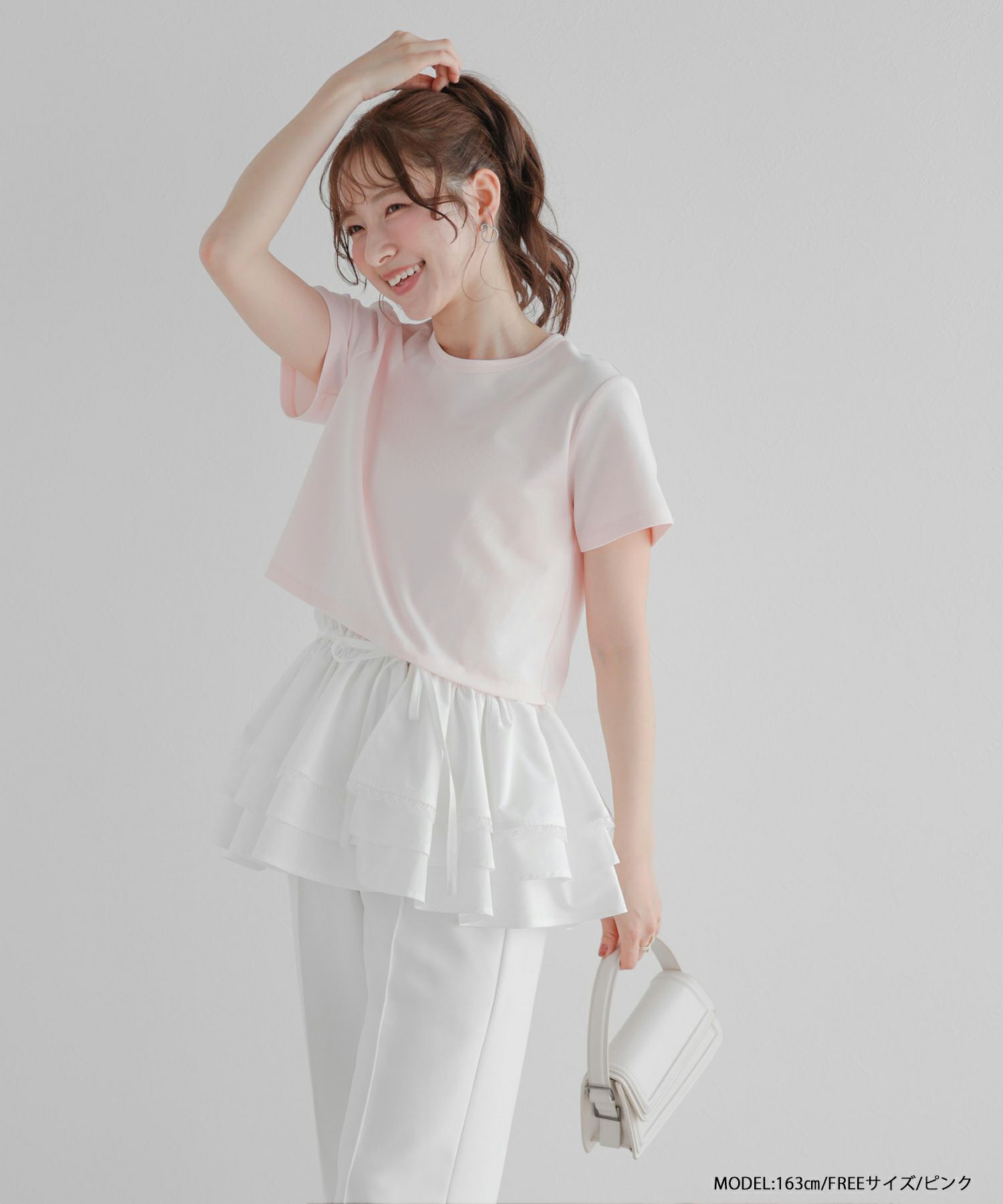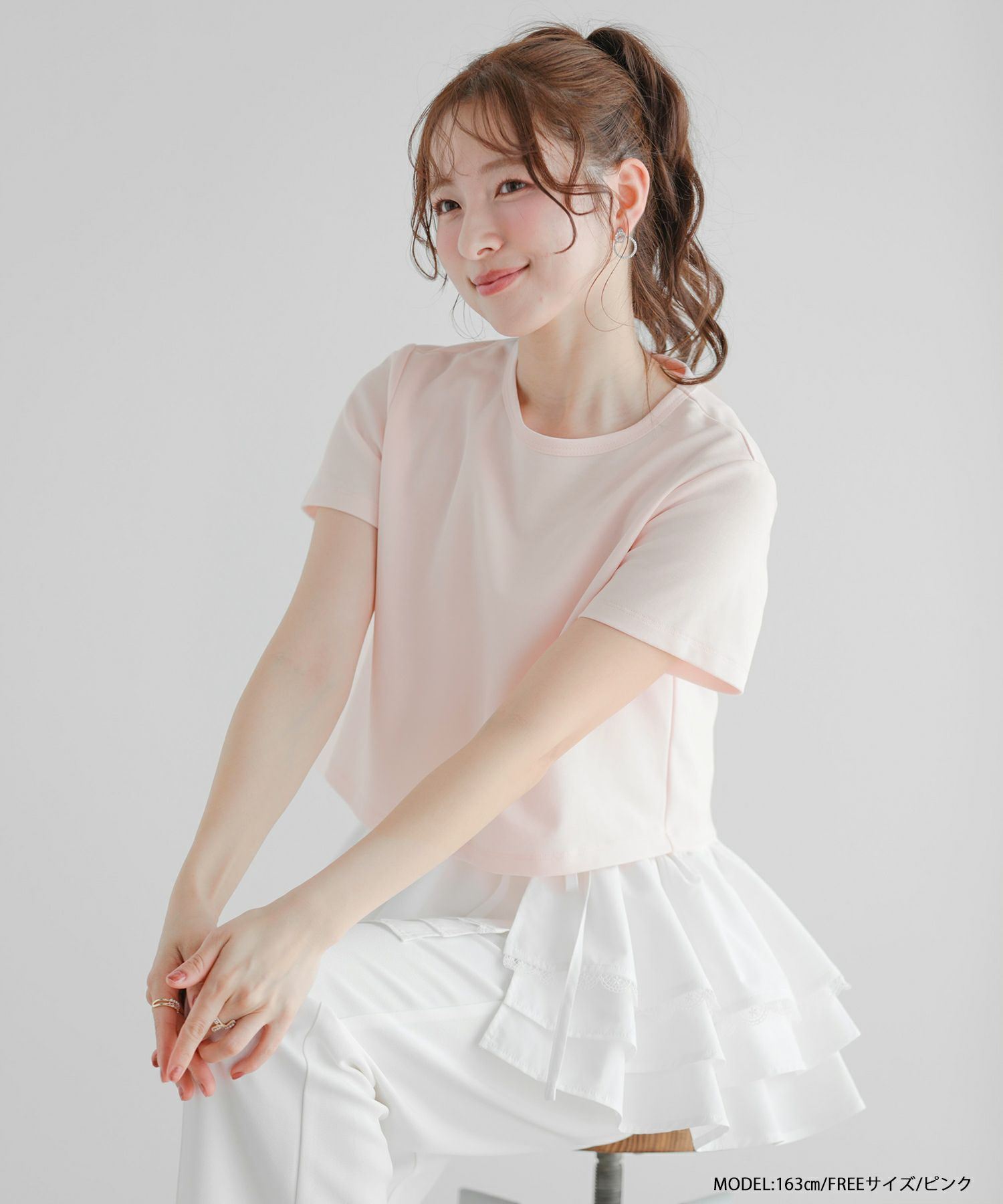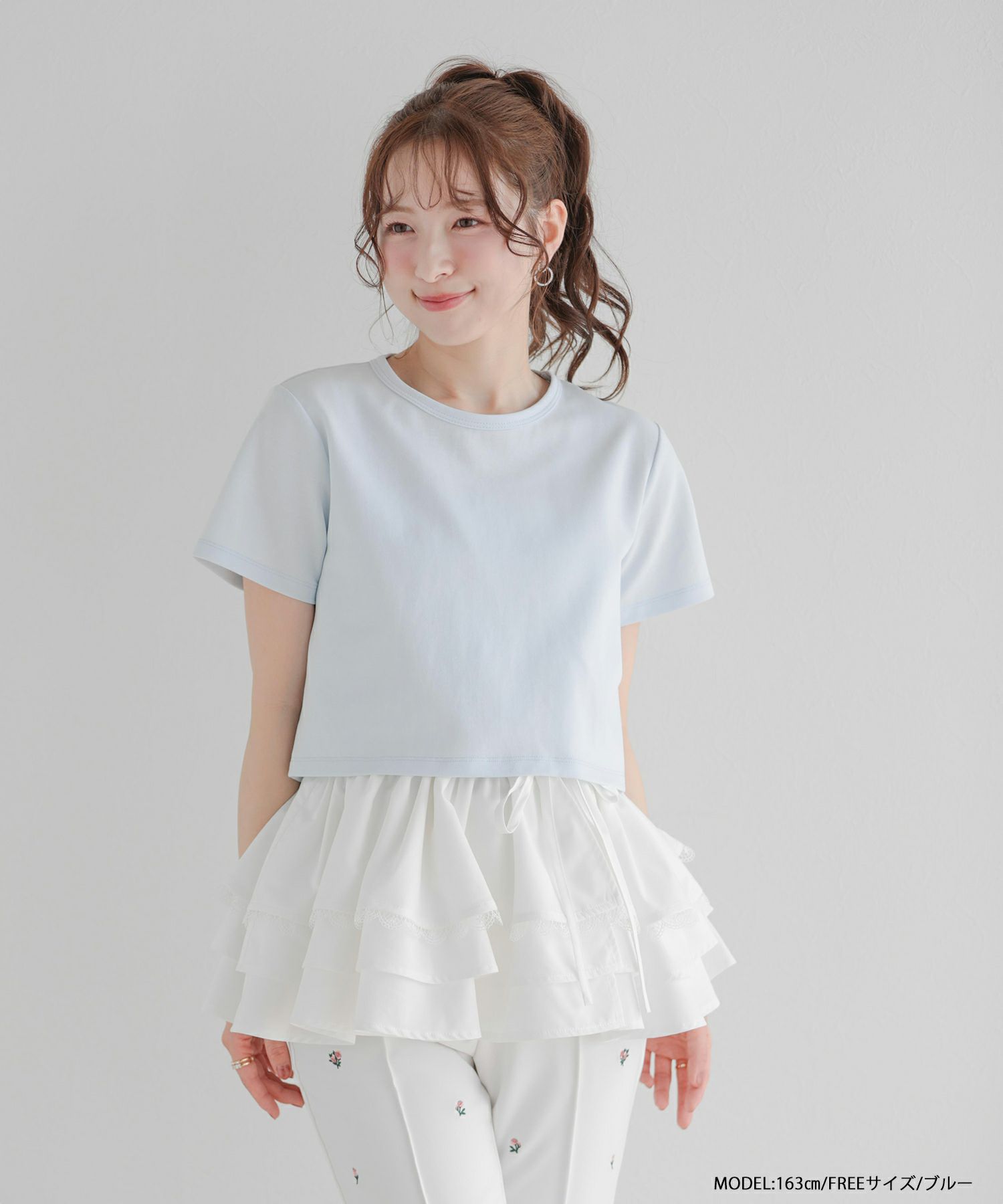 裾フリルのついたインナーがドッキングしたTシャツが登場。