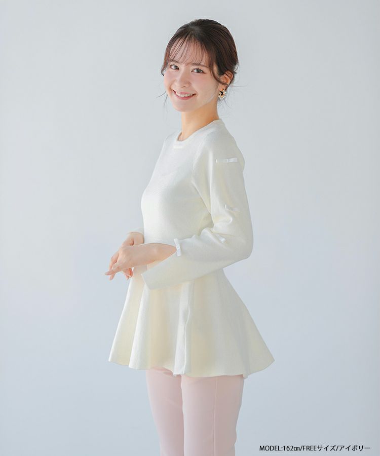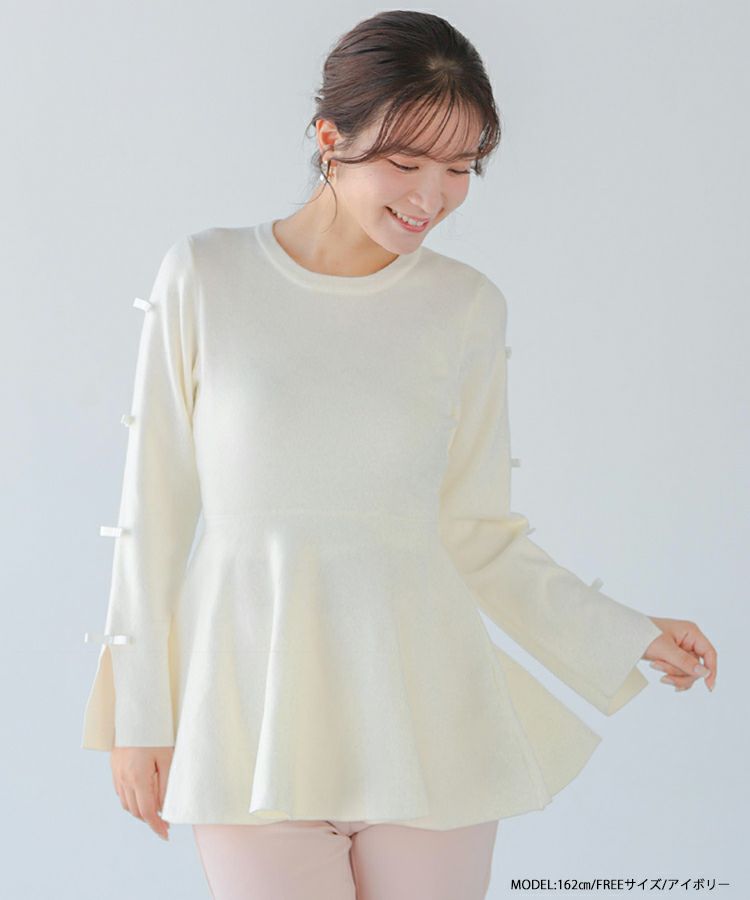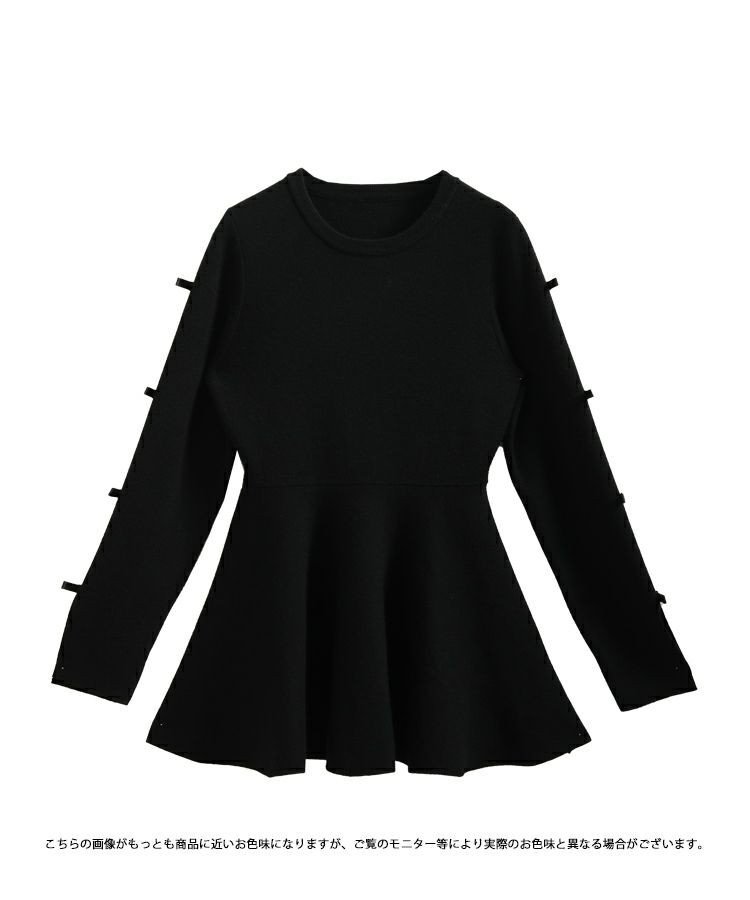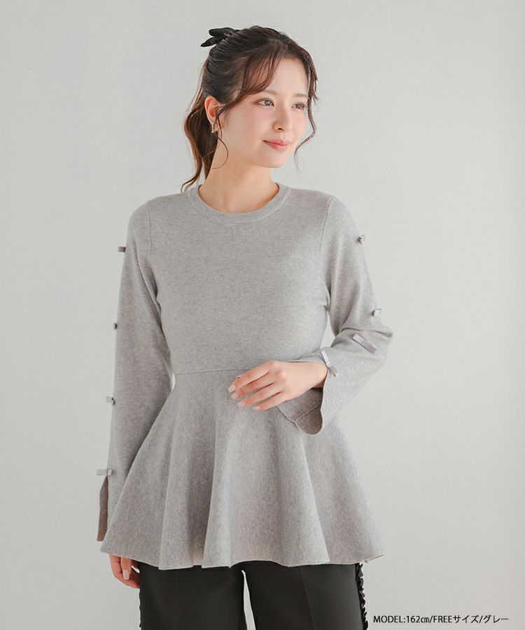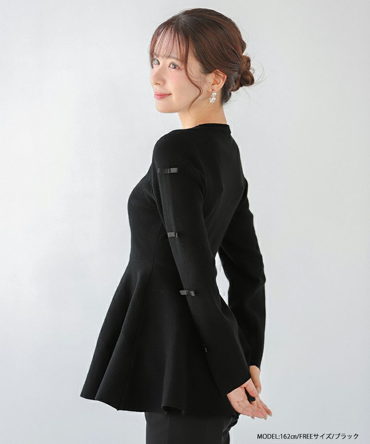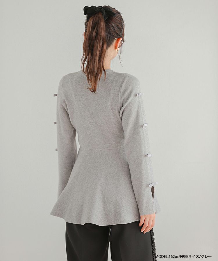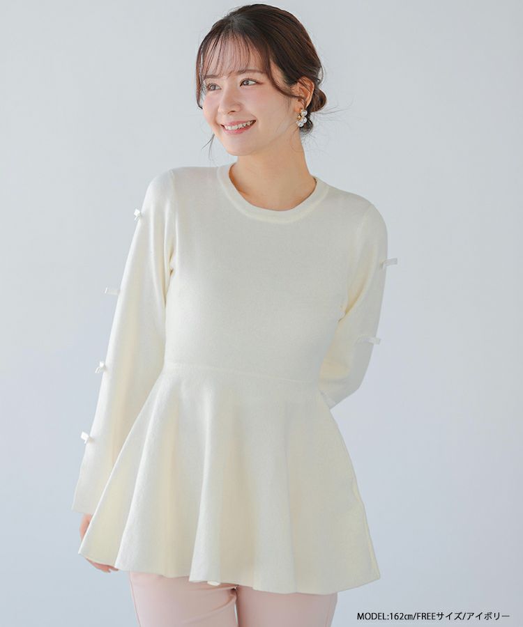2024aw ニット ペプラム リボン 袖リボンペプラムニット【宅配便】