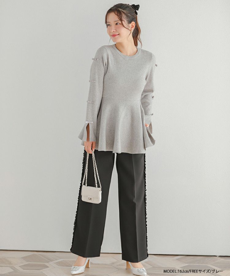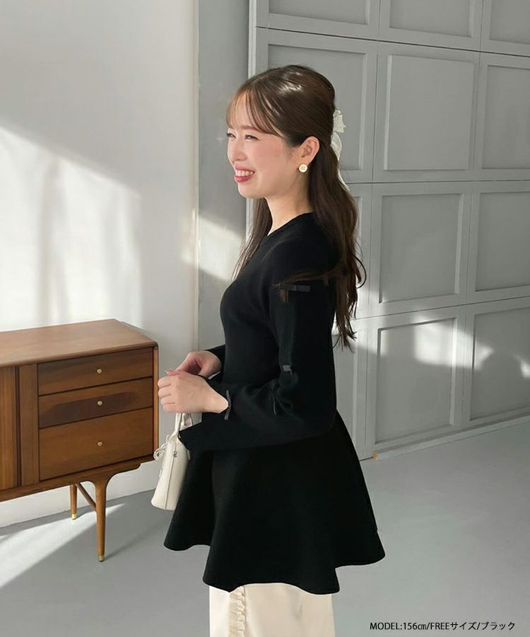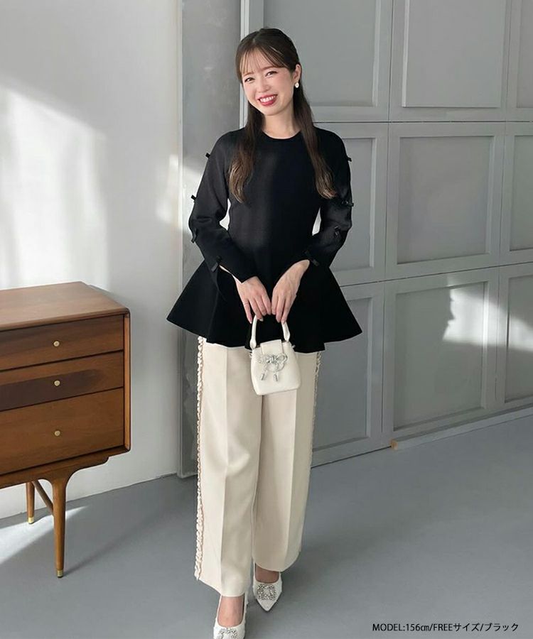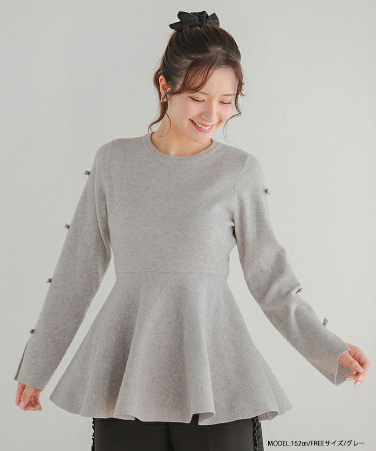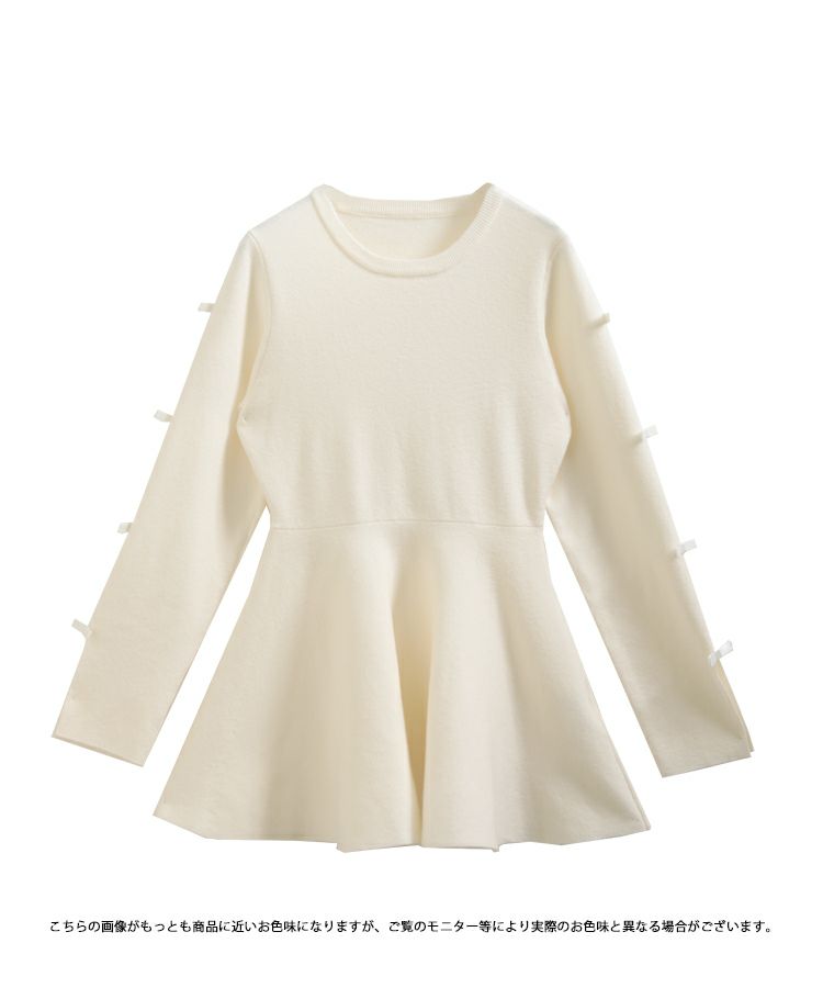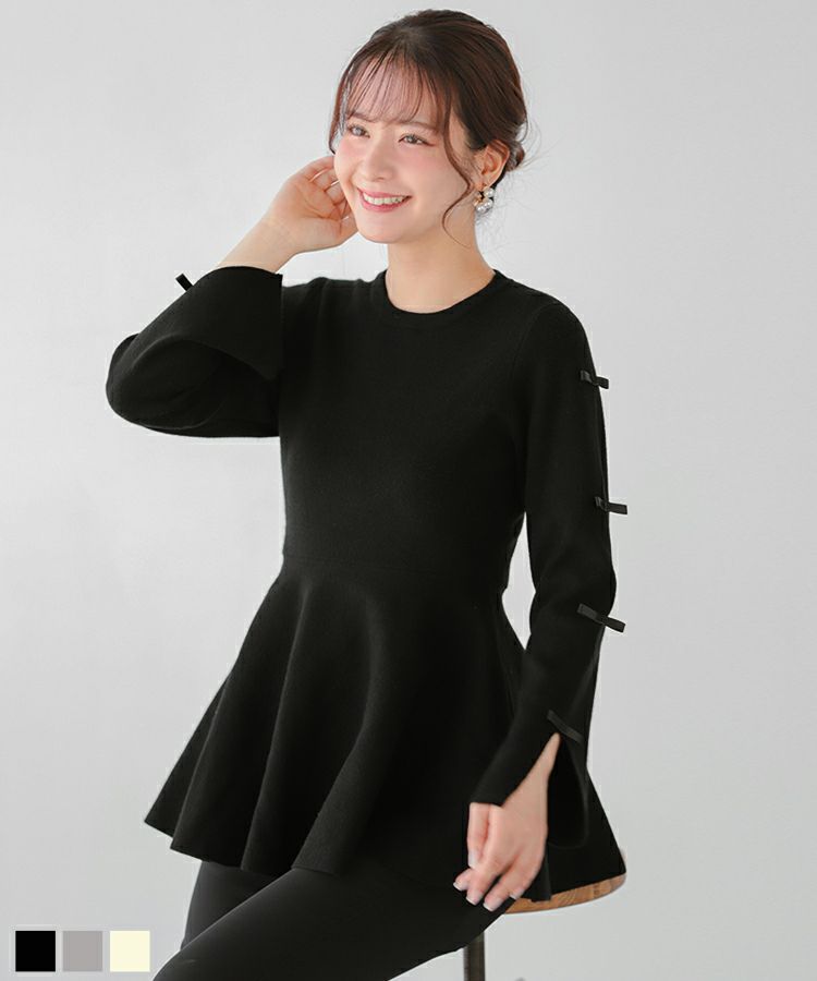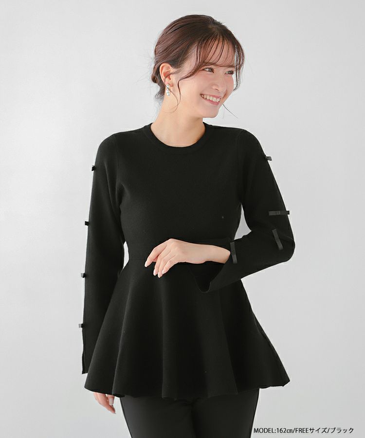 2024aw ニット ペプラム リボン 袖リボンペプラムニット【宅配便】