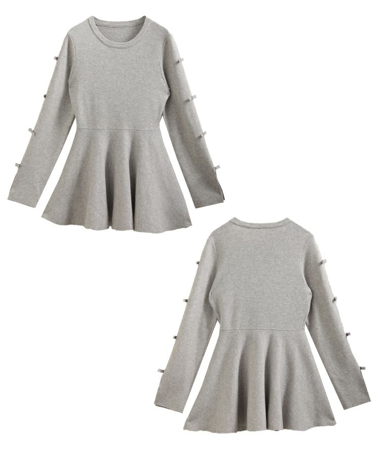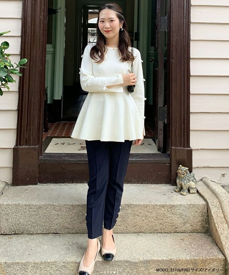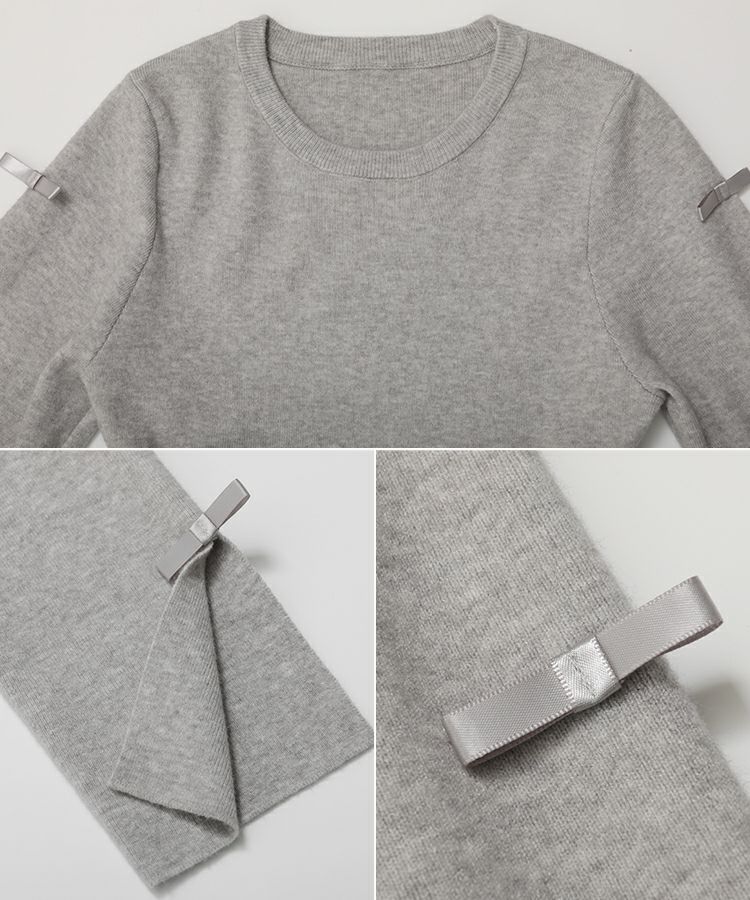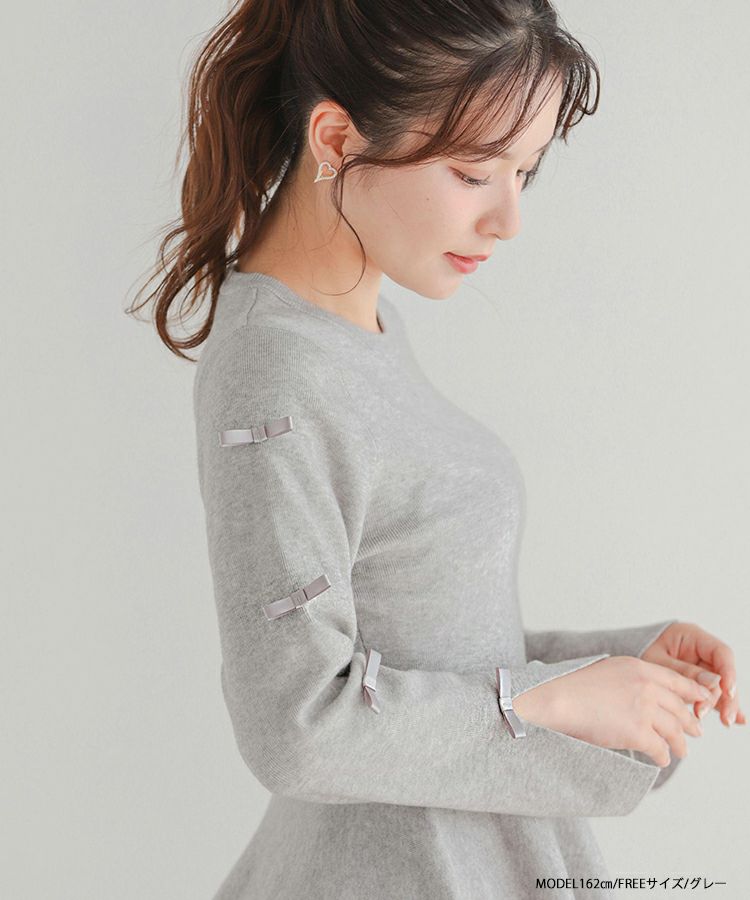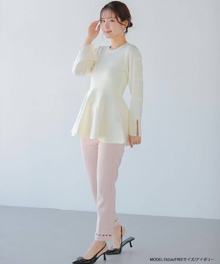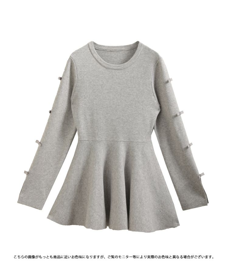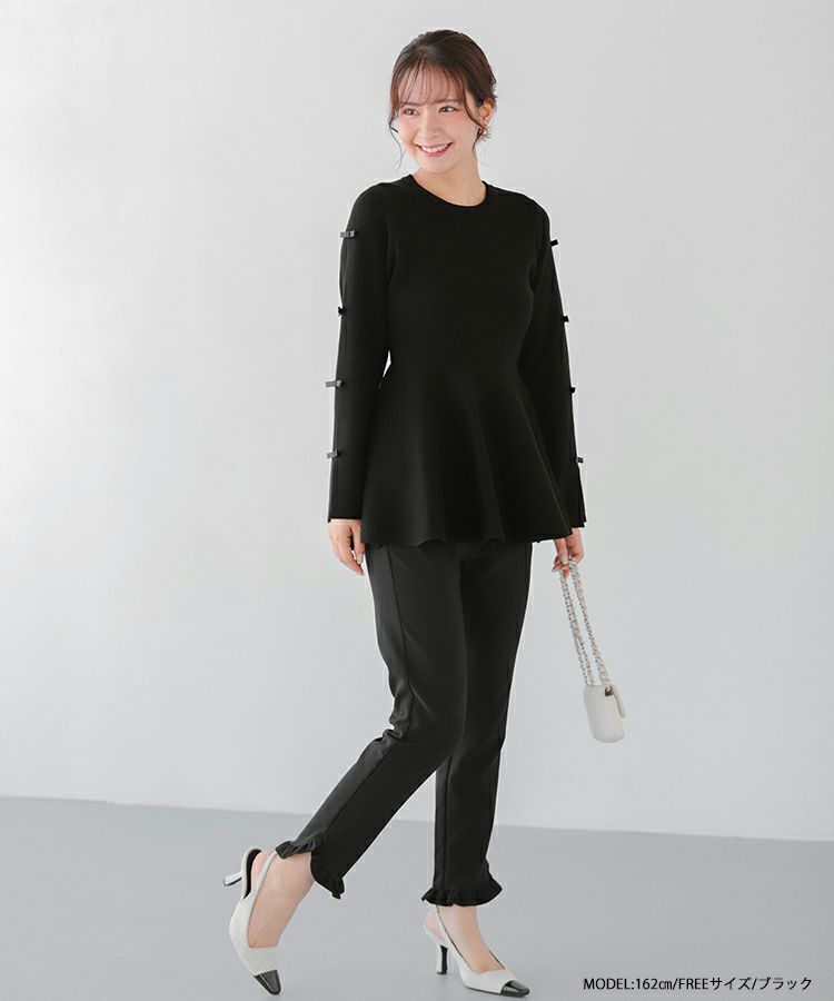 2024aw ニット ペプラム リボン 袖リボンペプラムニット【宅配便】