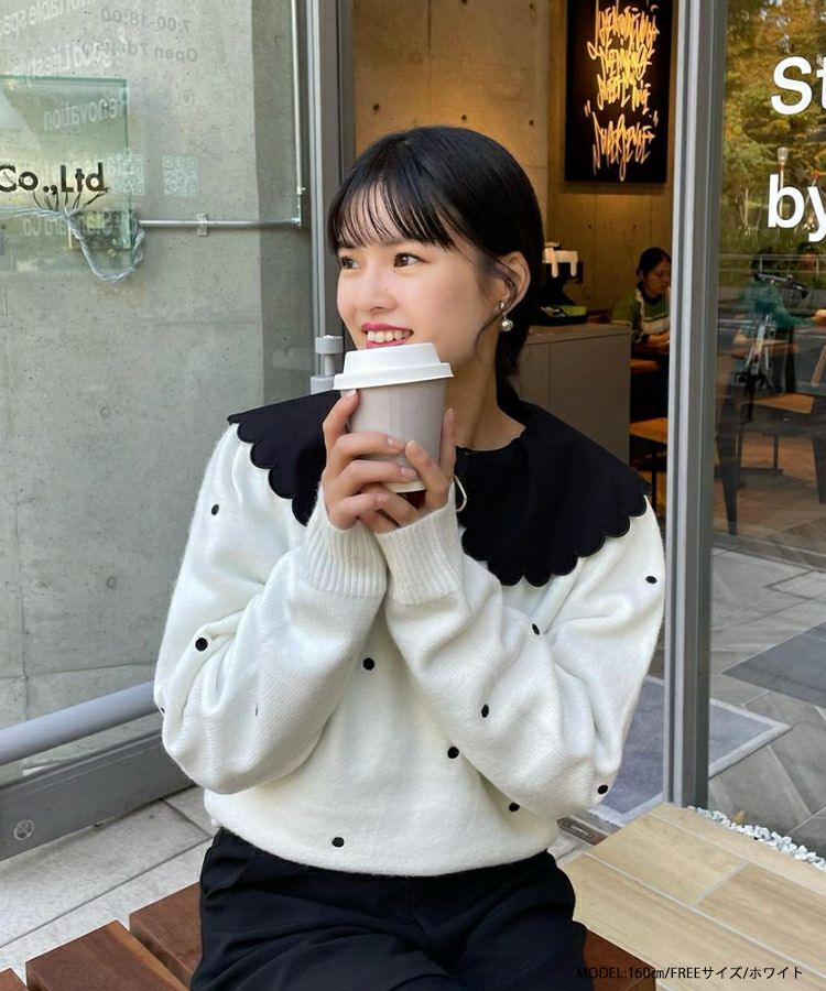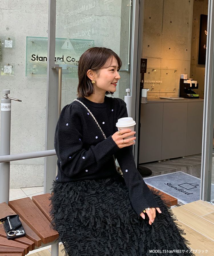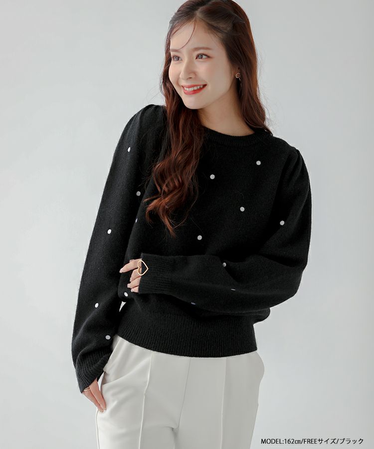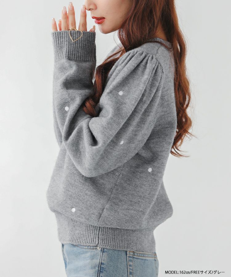 ふわふわの肌ざわりのドット刺しゅうが華やかなニット。