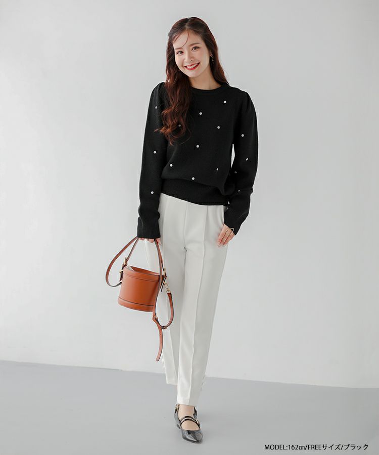 小ぶりなドット刺繍なので、どんなボトムスとも相性抜群です。