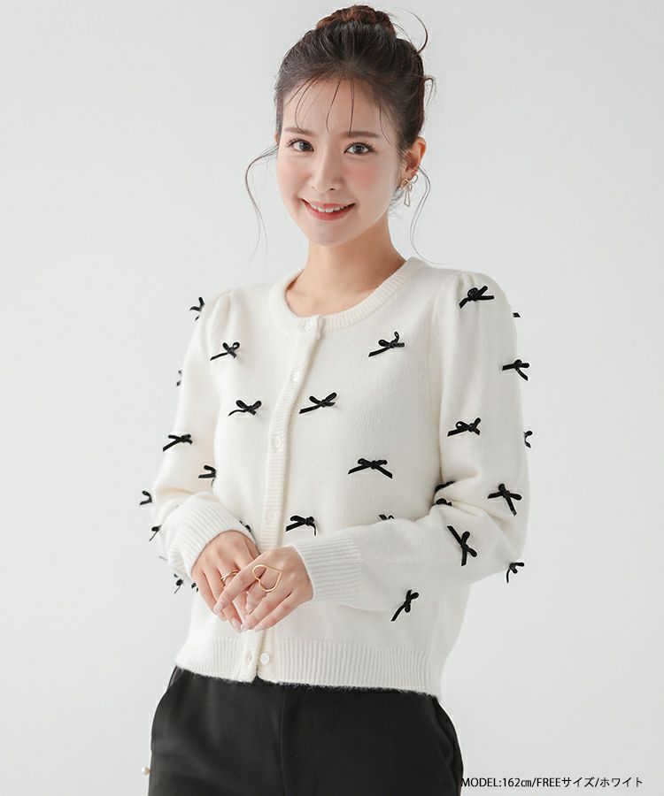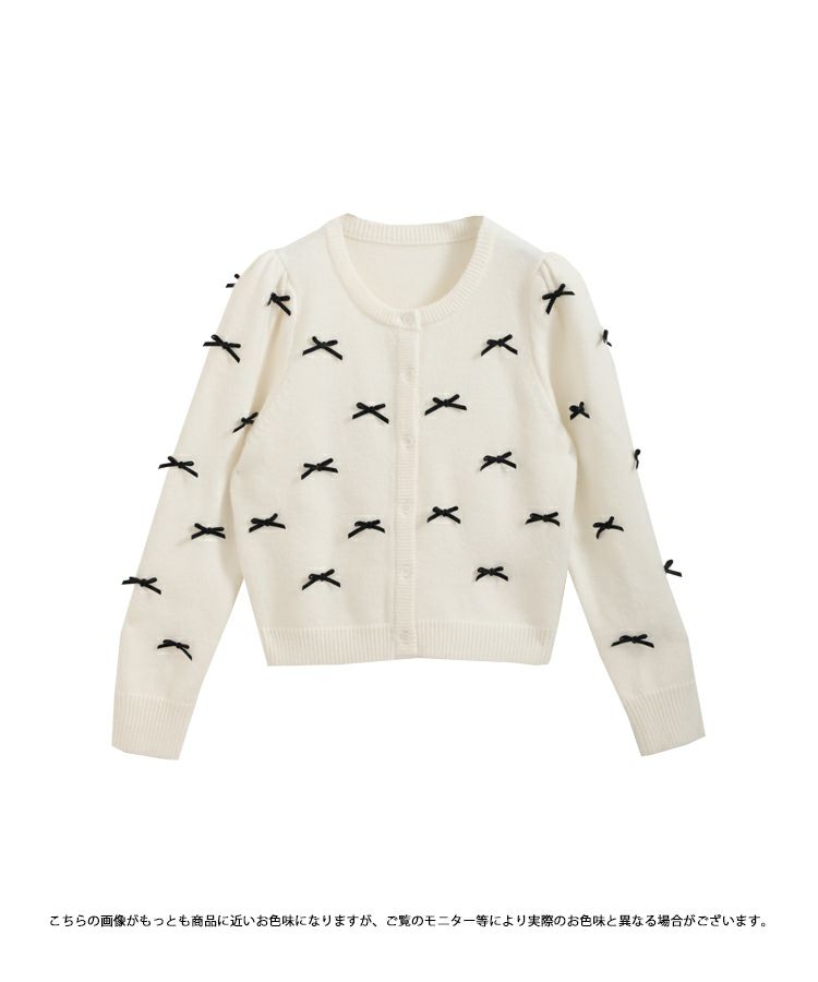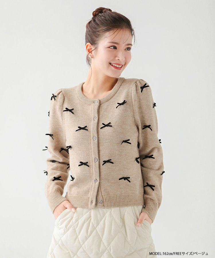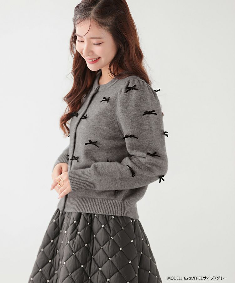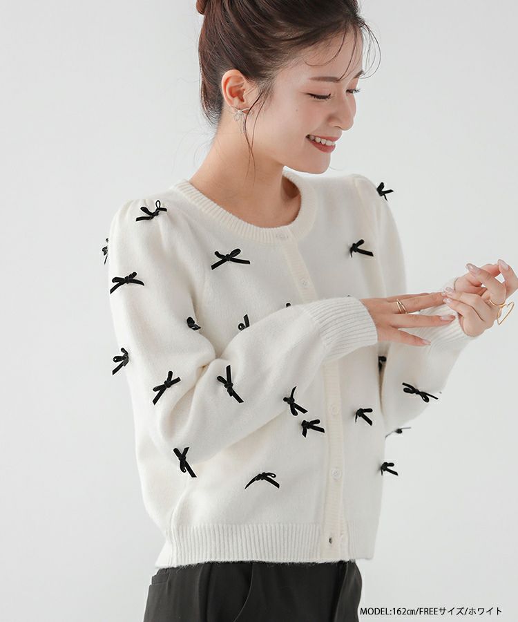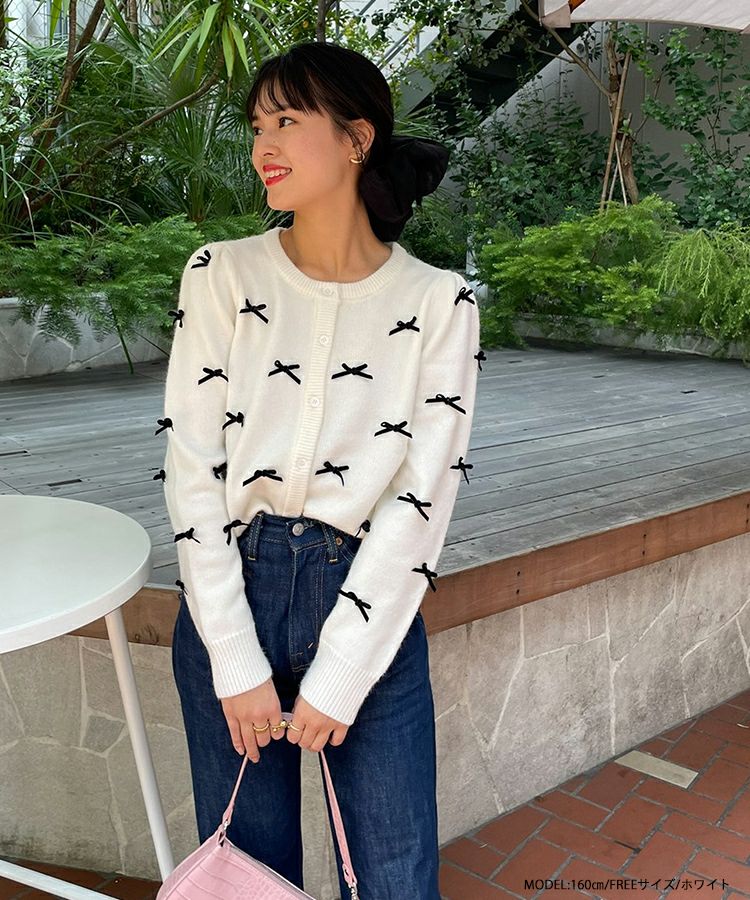ベロアリボンをあしらった大人可愛いカーディガンが登場。