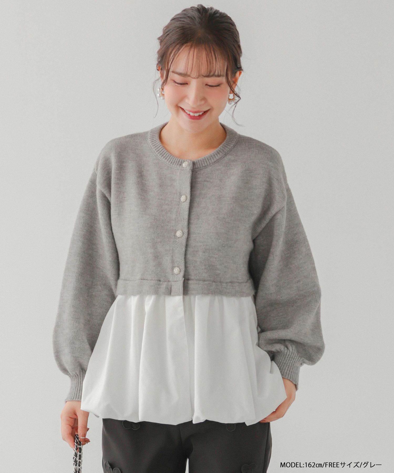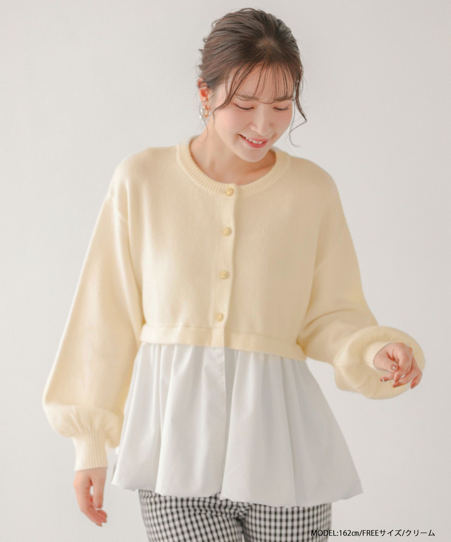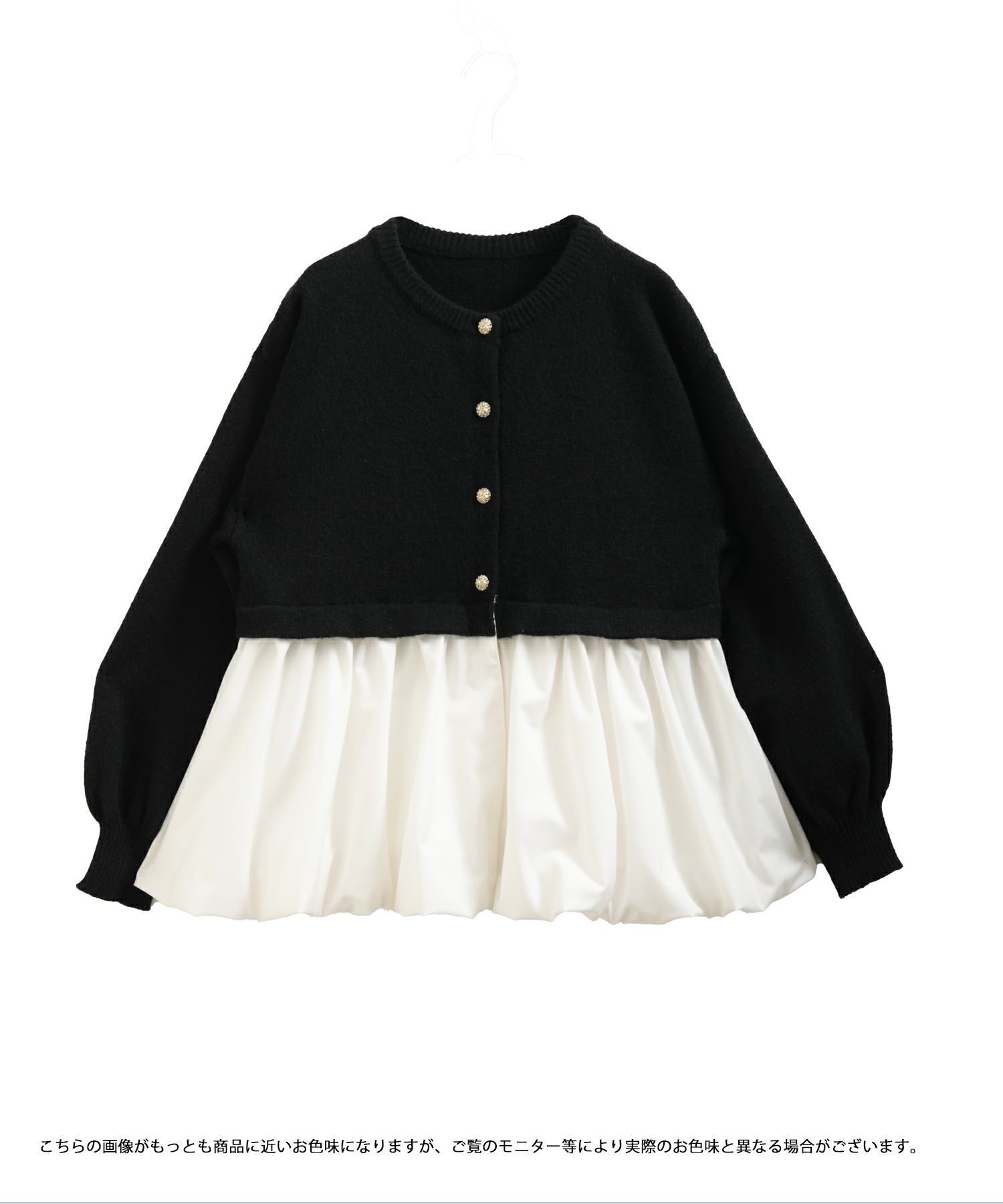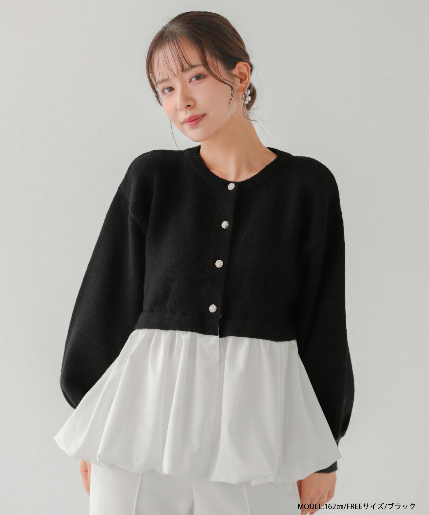 2024aw ニット カーディガン 異素材 ペプラム 異素材ドッキングペプラムカーディガン【宅配便】