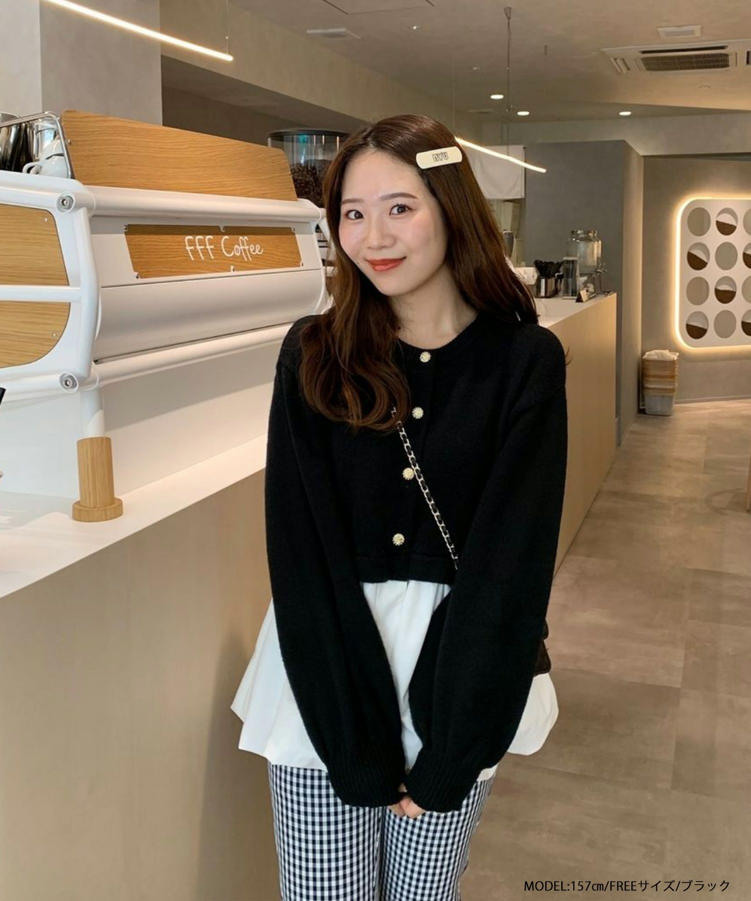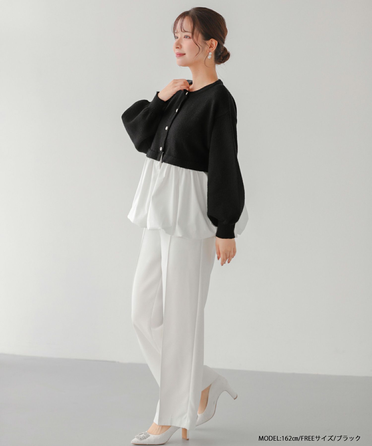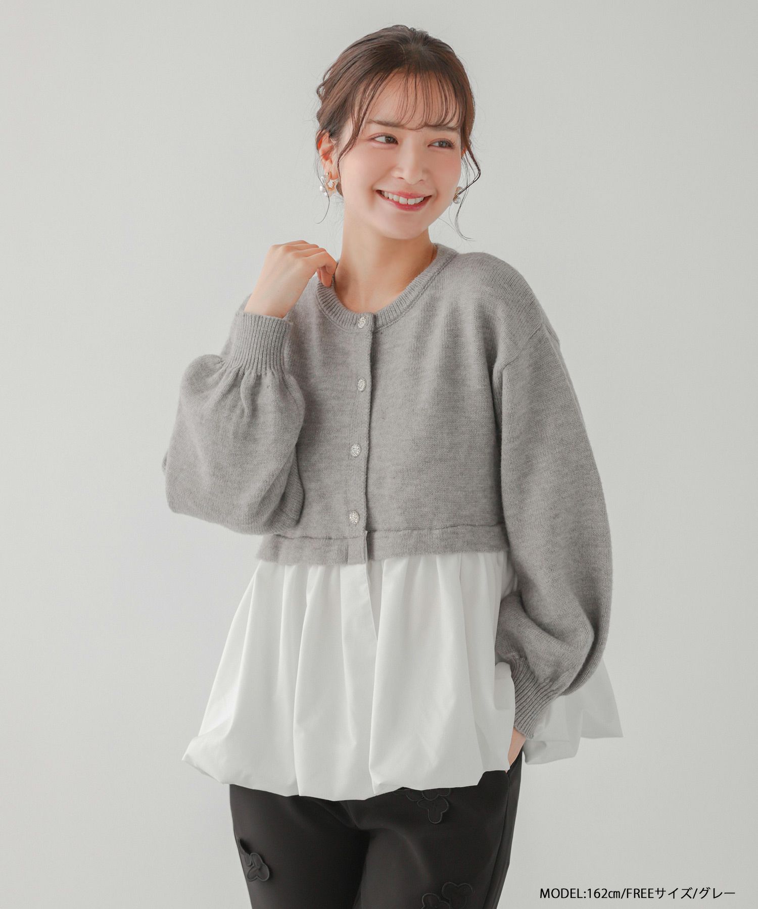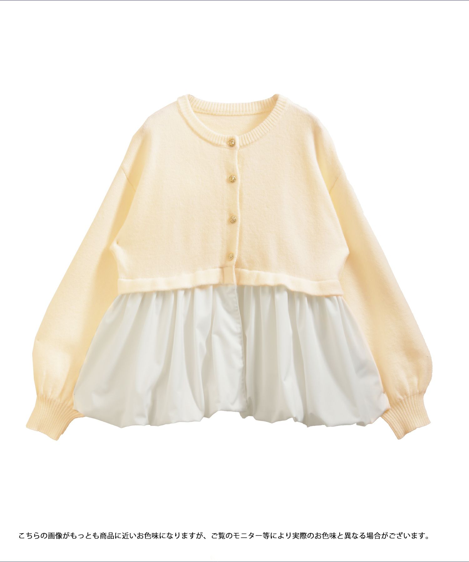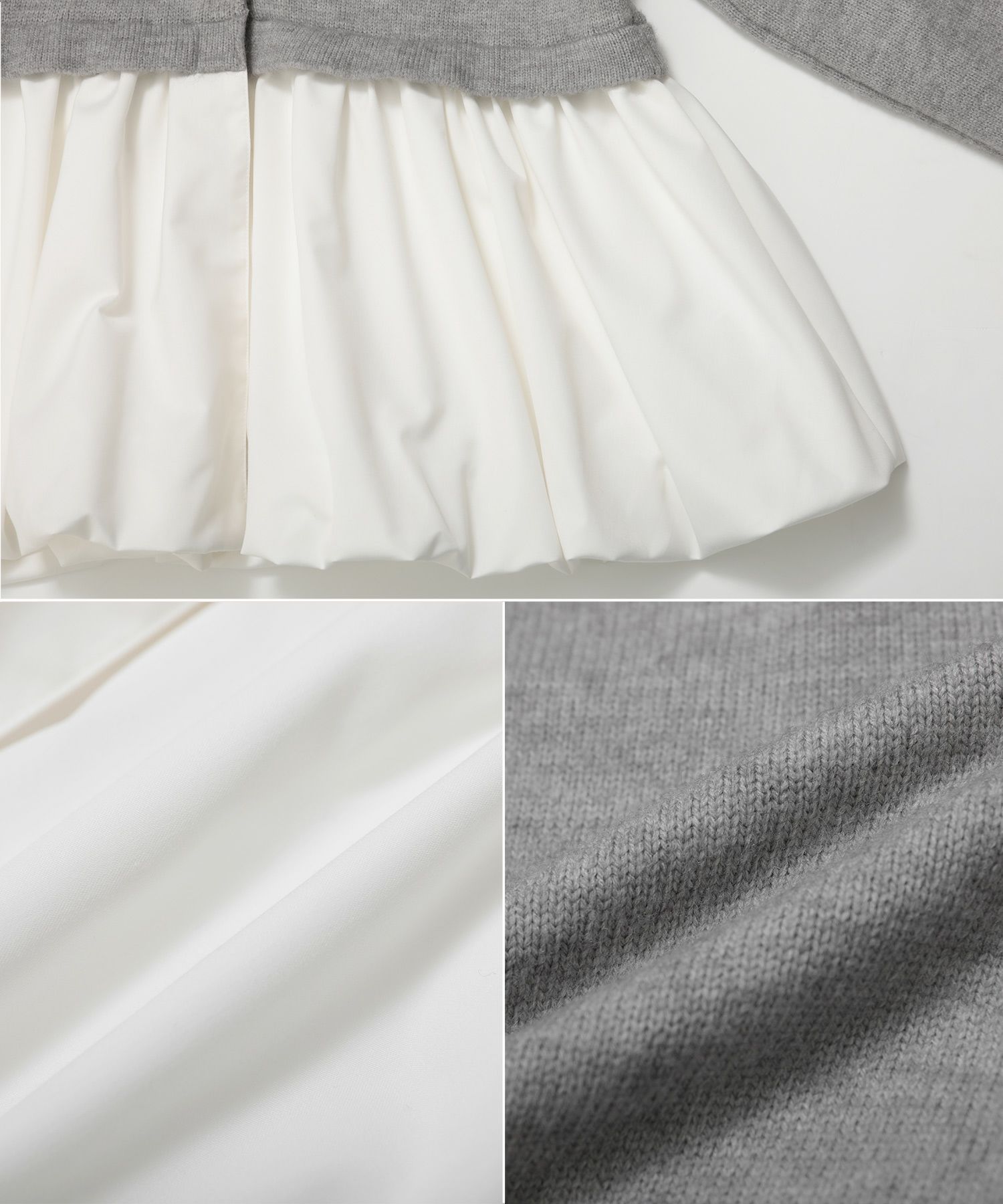 2024aw ニット カーディガン 異素材 ペプラム 異素材ドッキングペプラムカーディガン【宅配便】