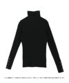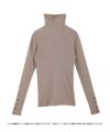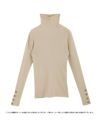 袖口にボタンをあしらったハイネックリブニット。