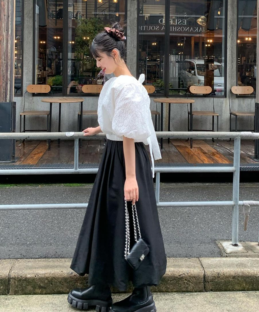 トップス/Yurinaコラボ バックリボンショート丈ジャガードトップス