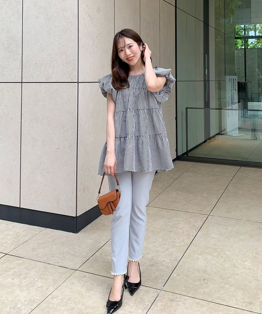 トップス/ギンガムティアードブラウス