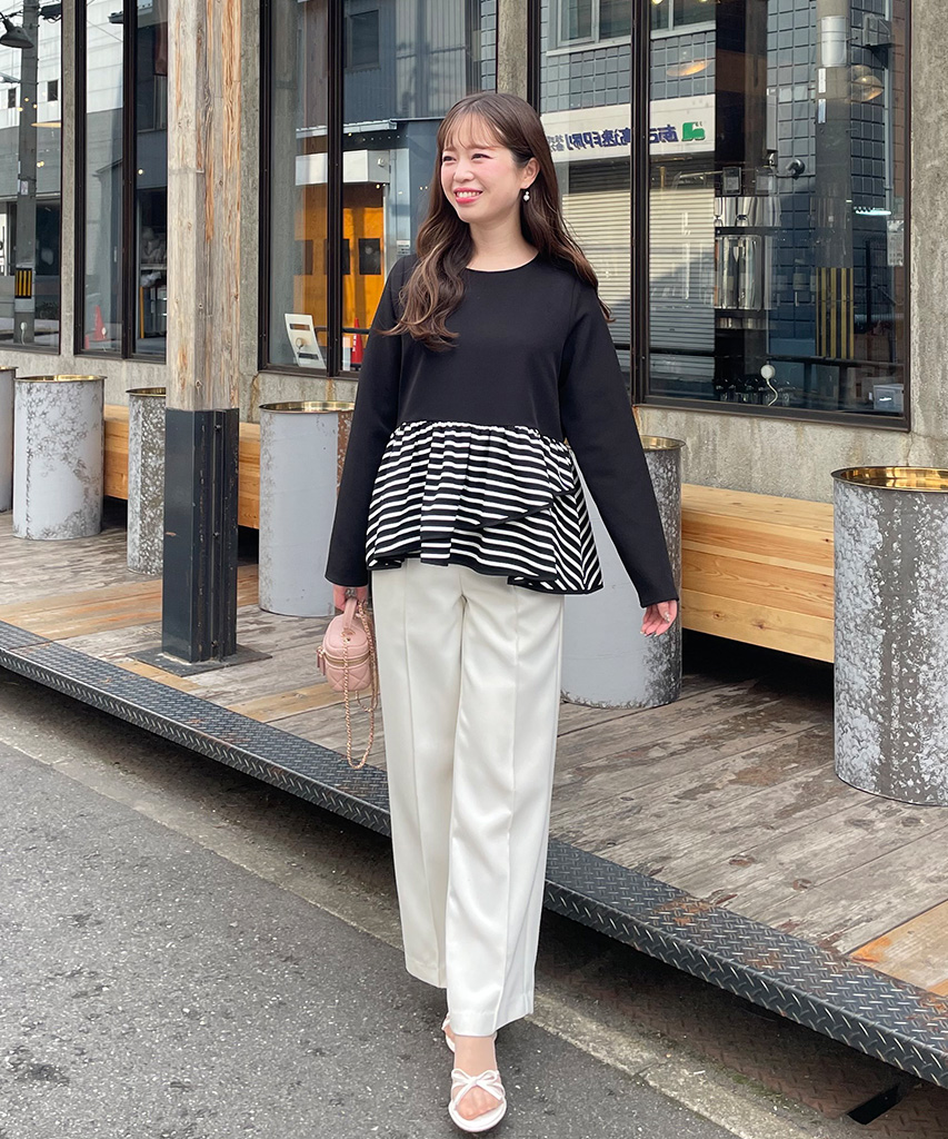 トップス/アシンメトリーフリルペプラムボーダーカットソー