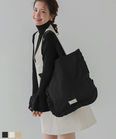 フリルが可愛いですが、もう少しだけ厚手の生地だと荷物を入れた時に安心感があるかなと思いました。