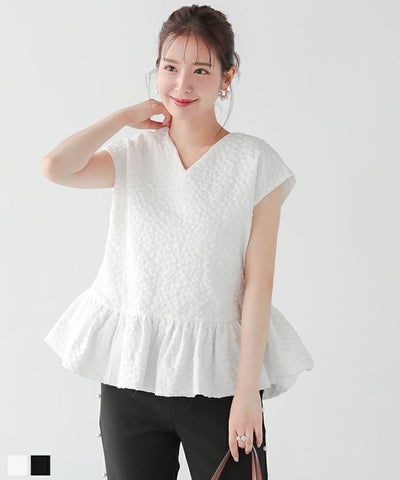 ジャガードVネックペプラムトップス【メール便】のレビュー