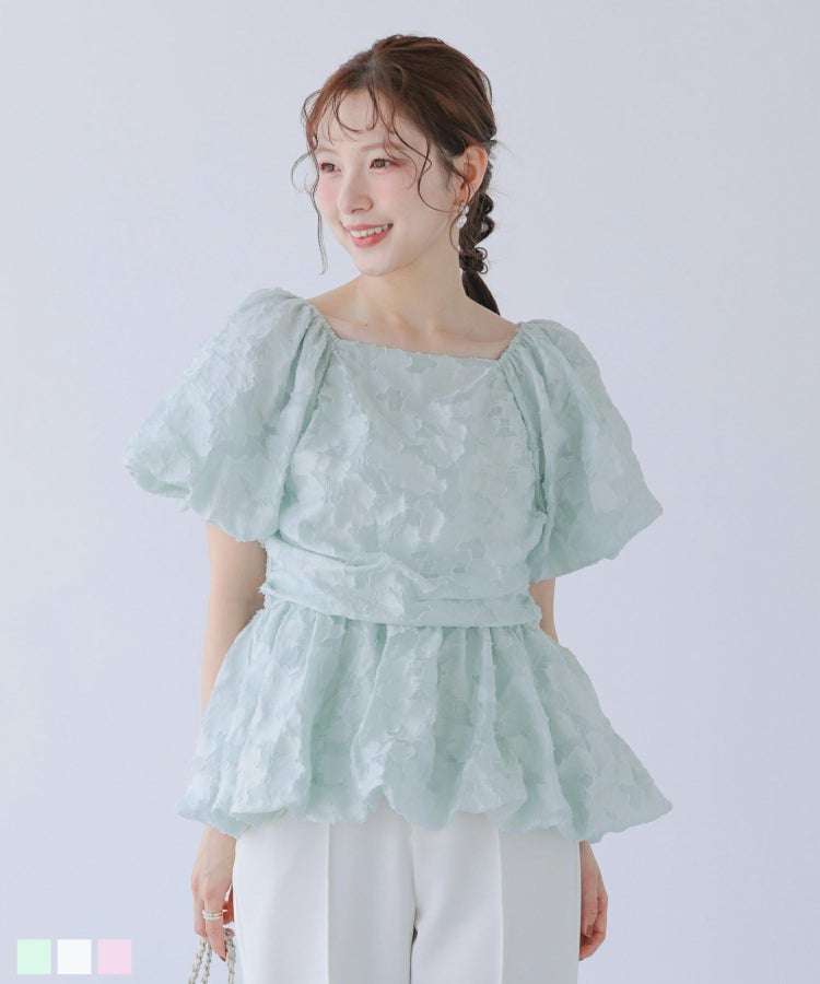 シャーリングバルーンペプラムトップス【宅配便】のレビュー
