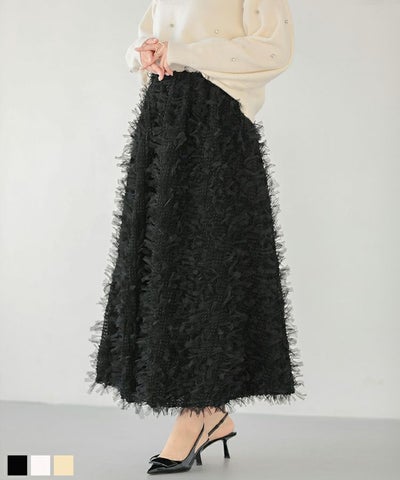 白を購入。 下着が透けない様にベージュ系を中に履いています。ふわふわでシルエットがかわいいです。