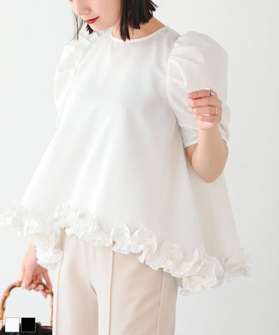 袖のぽわん感と裾のフリルでとっても可愛いです!白を購入したのでどんなボトムスでも合わせられそうです!