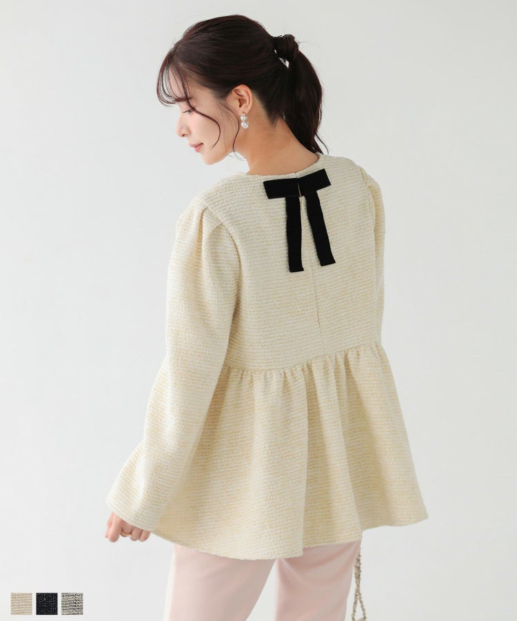 ツイードバックベロアリボンペプラムトップス【宅配便】のレビュー